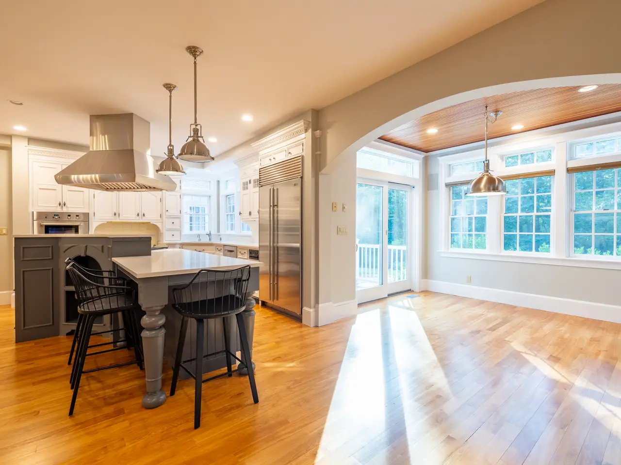 SPECTACULAR NEW KITCHEN...You could not build this home for this price! Perfectly located near both the Pike School and Phillip's Academy. This meticulously detailed home boasts 5 Beds, 6.5 Baths, private deck, 3 car garage & ample parking all on a 3+ acre lot. Step into the lovely open foyer with curved staircase, marble & hardwood flooring & the sun-drenched 1st floor, which has a formal living rm, dining rm, office/den, mudroom, newer 1st Fl. En-Suite Bedroom & the sunken Family Rm w/soaring ceilings, built-ins & a river stone fireplace. The heart of the home is the spectacular, newly updated kitchen featuring custom cabinetry, quartz countertops, high-end stainless steel appliances, a spacious center island, and a walk-in pantry. Thoughtfully designed for both everyday living and elegant entertaining. The mid-level primary En-Suite stands out with its vaulted ceilings & stunning bath. 2 spacious bedrooms and 1 En-Suite on Fl. 2 with 2 bonus rooms on Fl. 3.