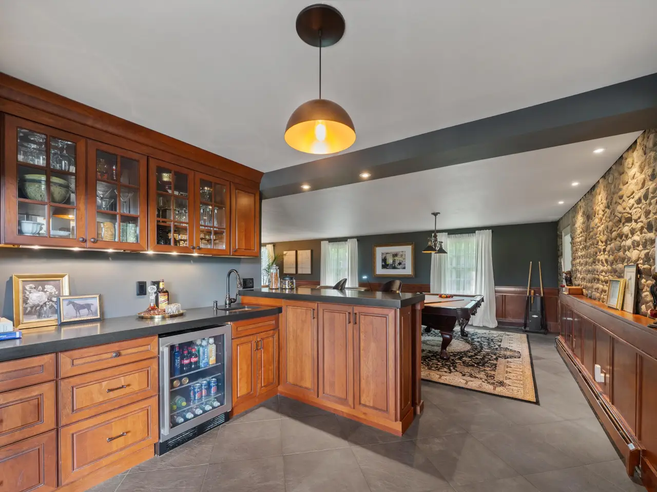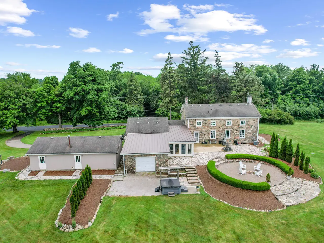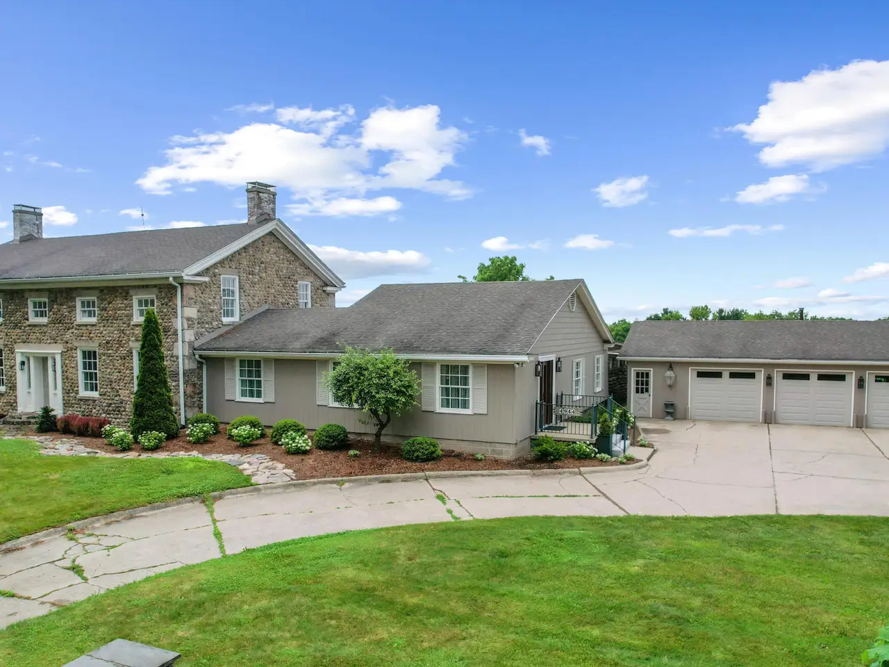 On 15.62 acres of prairie & farmland, this 1856 Cobblestone Farmhouse in Scio Twp has almost 4,000 sq. ft. of up-to-the-minute renovations. Its sophisticated design respects the classic nature of the Four-Square floor plan. It features formal living & dining rooms w/ fireplaces, a home office, updated bath & a chef's kitchen w/ custom cabinets, butcher block counters & stainless. A thoughtful addition that almost doubles the first-floor living space. It has a family room w/ impressive wet bar area, an additional bedroom or den, full bath & laundry. Upstairs is the large Primary bedroom, 3 additional bedrooms, & a renovated hallway bath. The oversized 3-season room w/ fireplace opens to an expansive outdoor living area with multiple patios & firepit area, all overlooking the expansive acreage, w/ regular visits from deer, turkeys & Sandhill cranes. Important updates include windows (2025), French doors to 3-season room (2023), garage doors (2023), well (2018) & 8-zone boiler (2018).