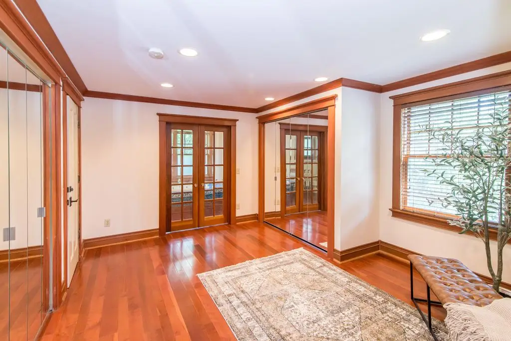 Step into this home, featuring unique architectural details. French doors and custom-built cabinets with beveled glass. Hardwood floors throughout. This three-story home has 3300 sq. ft. of living space. Four bedrooms and six bathrooms. The kitchen features tile counters and backsplash, warm oak cabinets, recessed lighting, and stainless-steel appliances, including two ovens. The cathedral ceiling eating area overlooks a covered porch and brick patio. Both the third floor and the basement have a full bath and a kitchenette. The primary bedroom suite features a cathedral ceiling and a spacious dressing room with ample closet space. Located on a lovely tree-lined street near the University. HERD Score: 3.OPEN HOUSE Sunday, September 28.