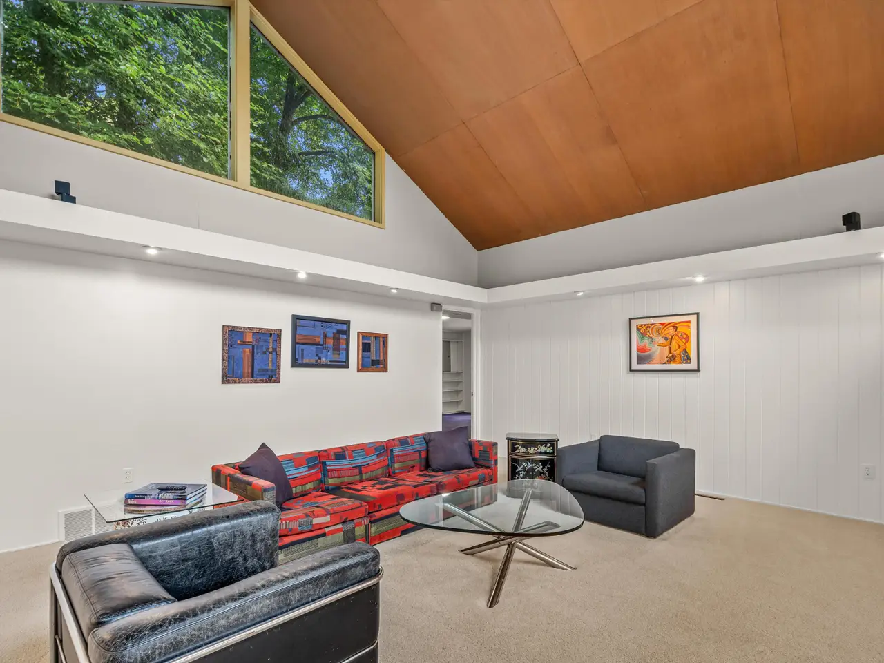 This Mid Century Modern, designed by Robert Metcalf, is a stylish retreat like no other! Nestled into a wooded hilltop setting adjacent to Braun Nature Area, this open and airy abode has been freshly painted and nicely updated while maintaining its original integrity. The expansive living room with fireplace and vaulted Walnut-paneled ceiling opens to the family/gathering and dining area and has sweeping views of the resort-inspired yard through the 24' glassed wall with sliding doors. The Galley is absolutely classic, Sub-Zero refrigerator and new counters. The adjacent laundry room has a second Sub-Zero. Five bedrooms offer terrific options for work-from-home spaces, too! Out back is the gunite pool and pool house that beckon family and friends for backyard bar-b-ques and entertaining! Home Energy Score of 3. Download report at stream.a2gov.org.