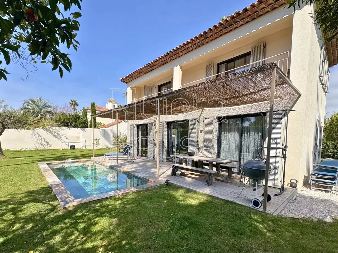 Ideally located on the western slope, in a peaceful setting with no overlooking neighbours, this fully renovated villa offers an exceptional living environment close to the beach. The ground floor features an entrance hall, guest toilets, a bright living room with an open-plan equipped kitchen extending to the outdoors, and a bedroom with a private bathroom. Upstairs, two additional en-suite bedrooms open onto a terrace. A spacious basement includes a large relaxation room, a laundry room, a circulation area, and a storage room. The landscaped 914 m² grounds, complete with a swimming pool and four parking spaces, enhance the comfort of this exceptional property.