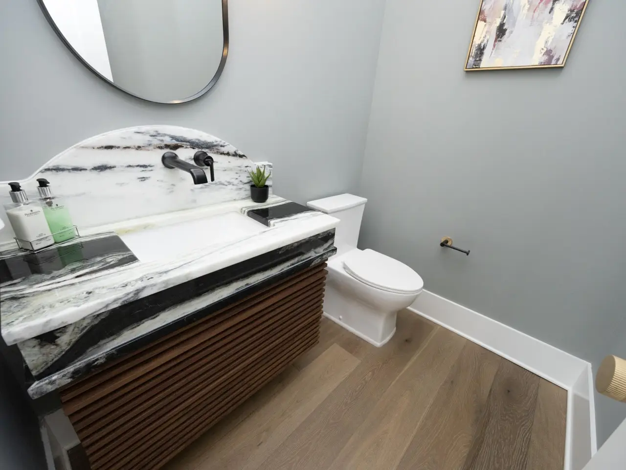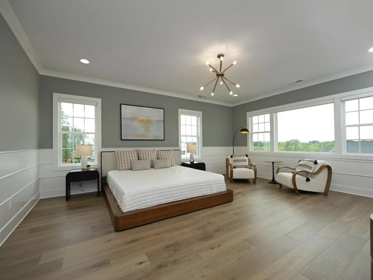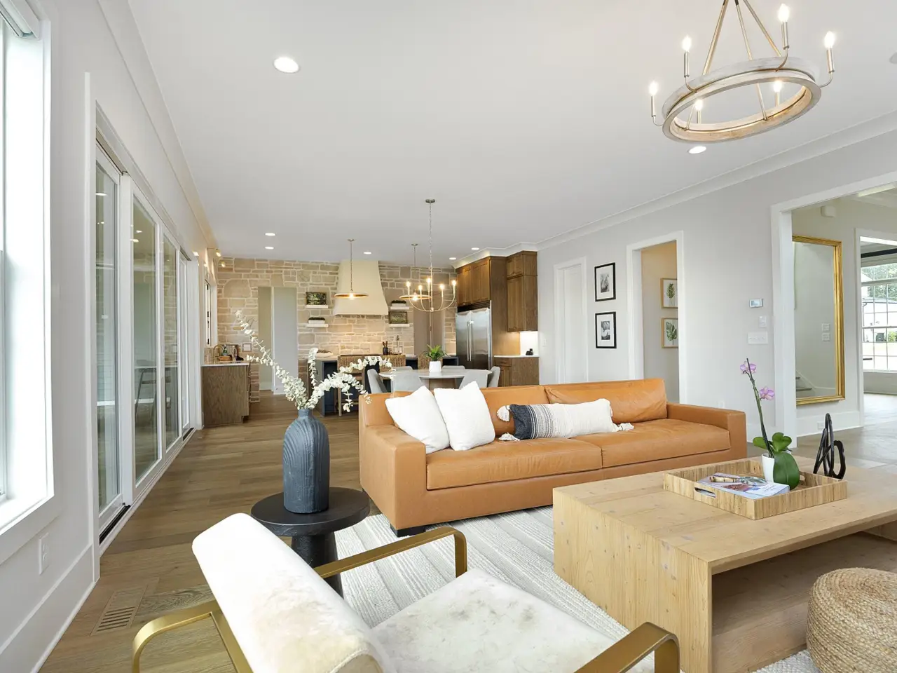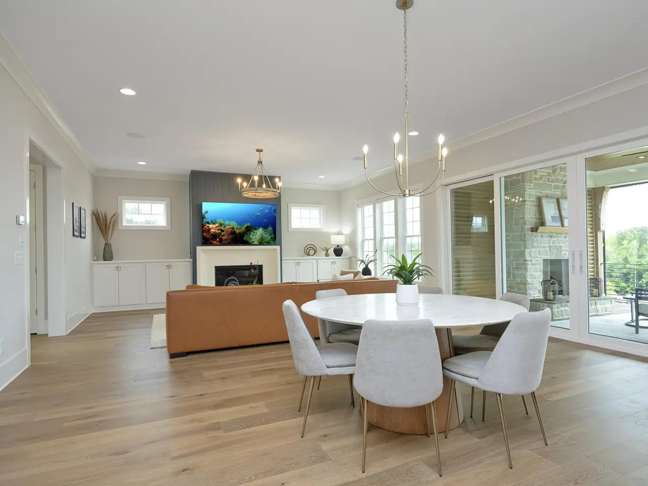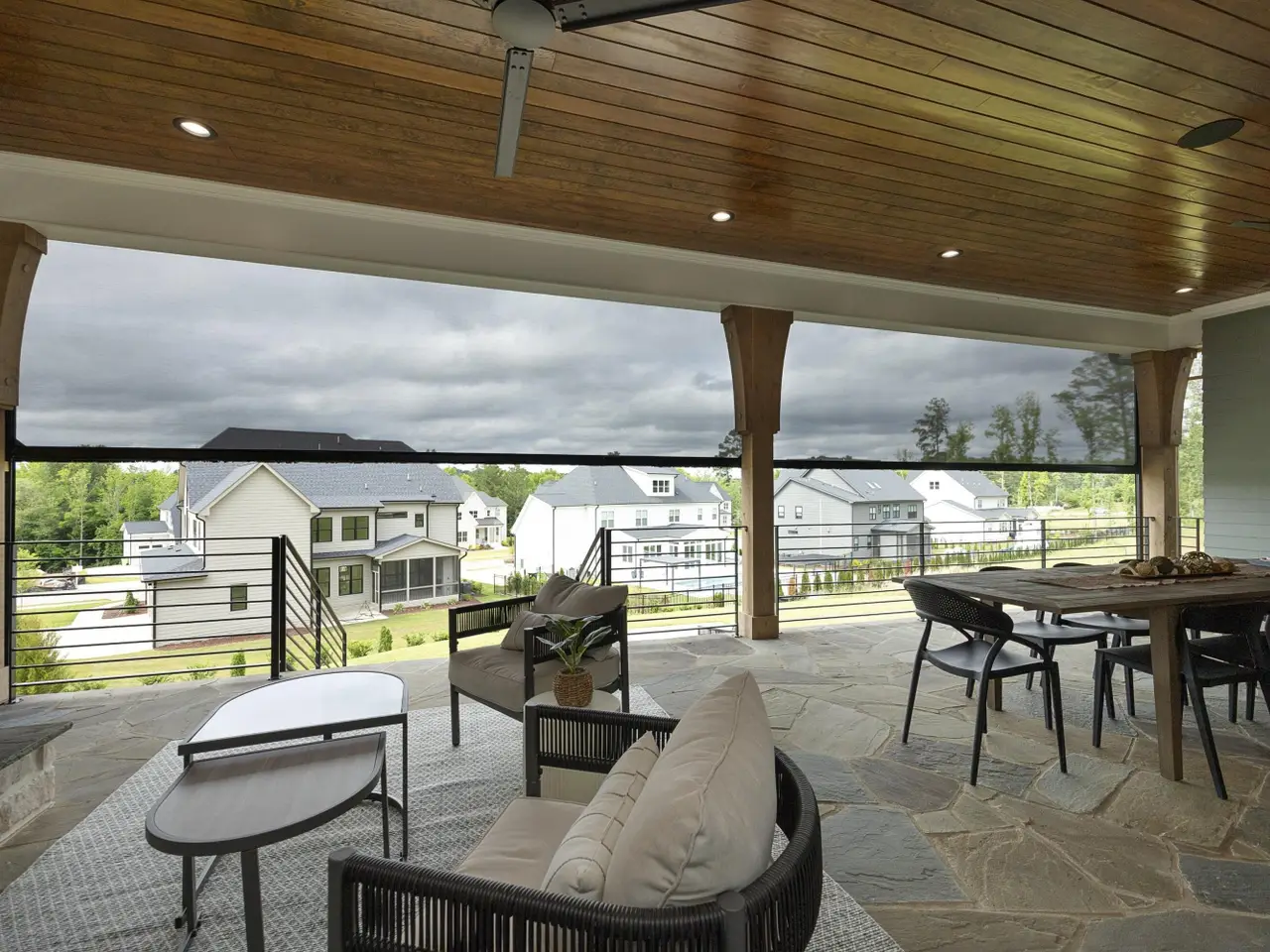 This beautifully crafted custom home is located in one of the most desirable neighborhoods in the Triangle and was proudly featured in the 2023 Triangle Parade of Homes. Enjoy a short walk to Green Level High School-one of the top-rated schools in North Carolina-and quick access to I-540, just two miles away. The home also connects directly to the Cary/Apex Greenway, offering convenience for outdoor activities. The main and second floors feature elegant 8-inch-wide plank hardwood flooring, including in the spacious primary suite. A herringbone-patterned entryway and detailed trim work throughout the home highlight its thoughtful design and craftsmanship. The gourmet kitchen boasts an oversized marble waterfall island, a 79-inch built-in column refrigerator and freezer, a secondary prep sink, and extensive cabinetry with quartz countertops-perfect for both entertaining and everyday living. The layout includes a practical mudroom connected to a three-car garage and a private first-floor in-law suite. Thoughtful upgrades enhance comfort and functionality, including motorized Phantom screens on the back deck, automated window shades, a built-in sound system, and electric privacy glass in the shower. Designer lighting and ceiling fixtures add a polished, upscale touch throughout. There's additional potential with ~488 square feet of unfinished attic space ready to be customized. Relax in the screened porch with a built-in fireplace, and inquire about the available infinity pool design to complete your dream outdoor retreat. This home offers a rare blend of timeless design, modern features, and a prime location-better than new.
