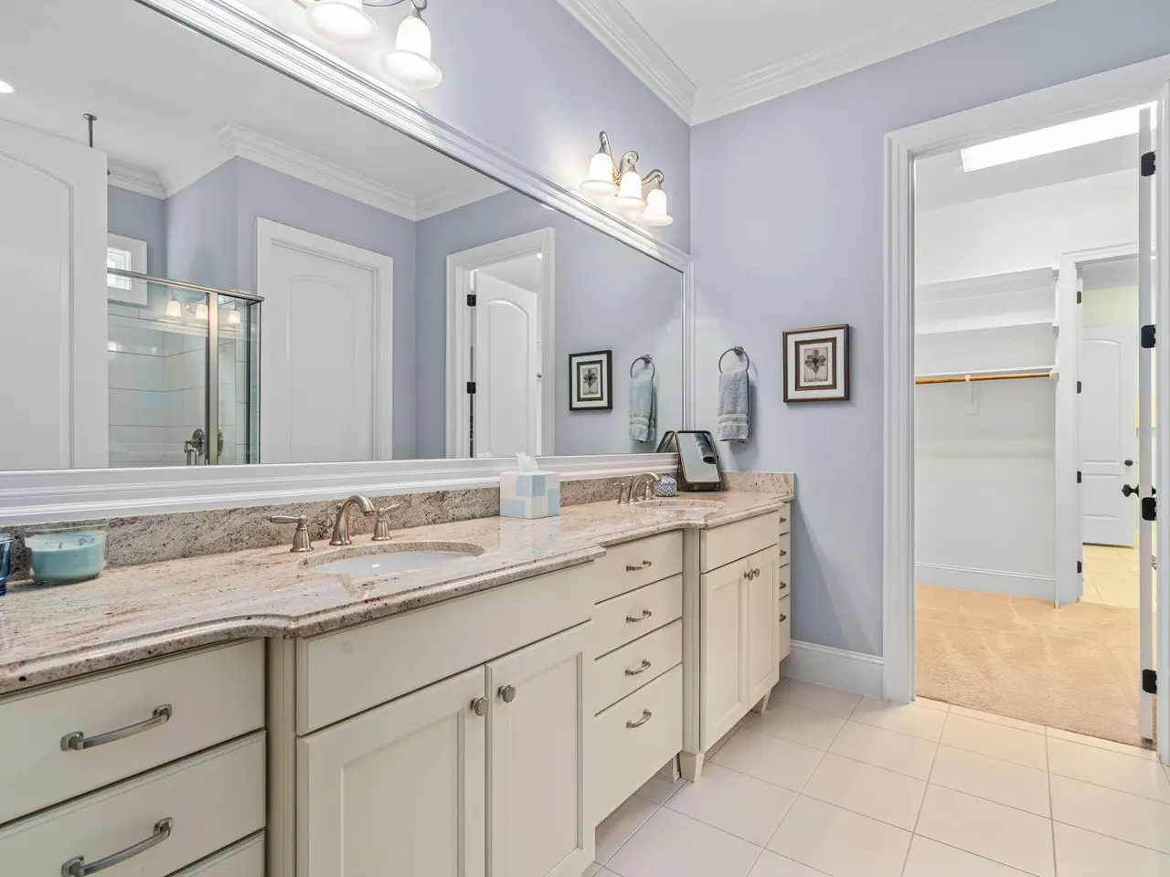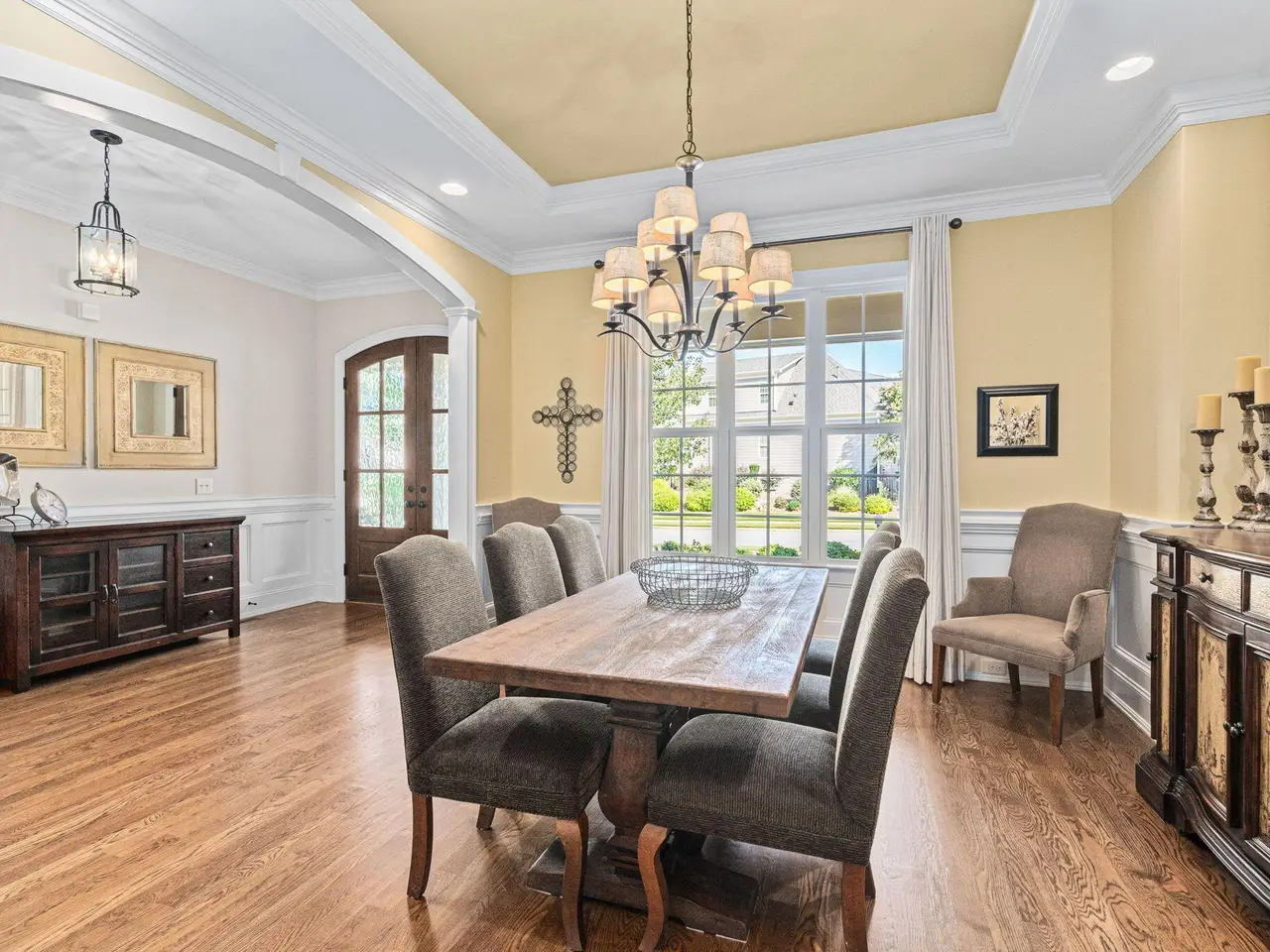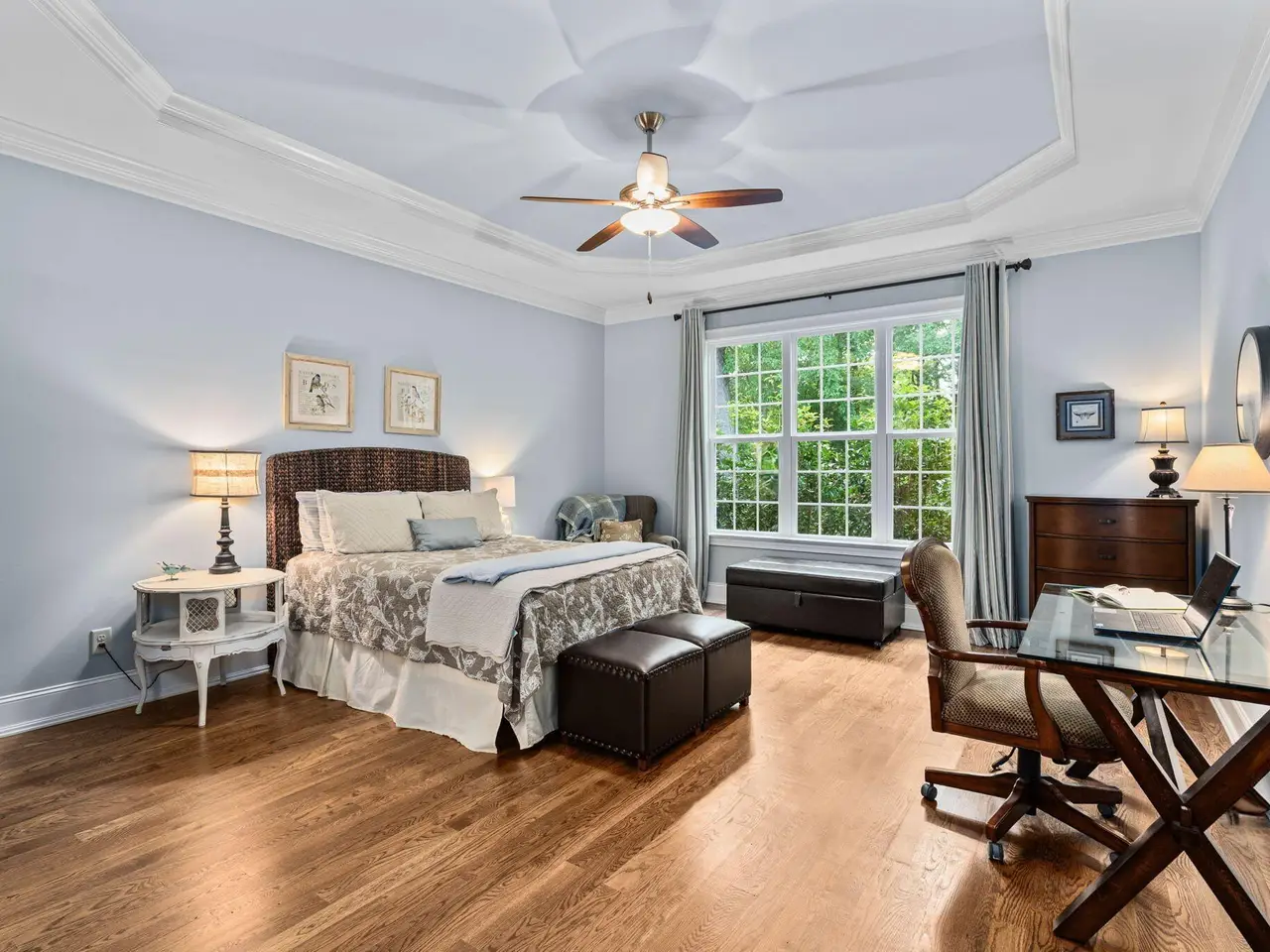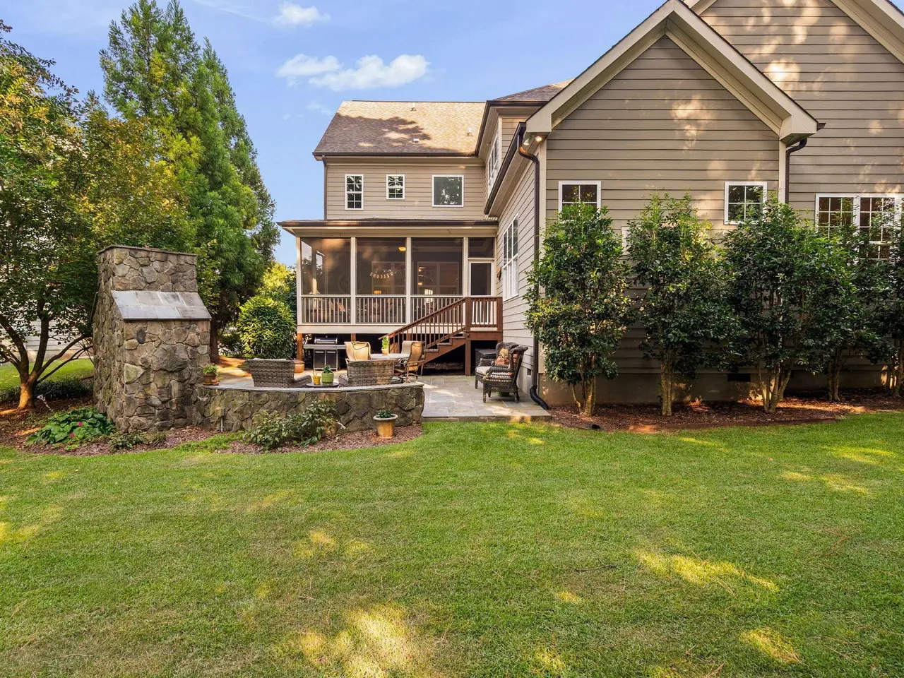 Knock out your wish list with this trophy property. Multi-generational living with TWO primary bedrooms & TWO laundry rooms. Great curb appeal - a gorgeous exterior that is truly swoon worthy. The interior is drenched in vogue finishes. This custom property lives large & encompasses 5 spacious bedrooms, 5 baths, 3 fireplaces, Chef's kitchen, family room, gorgeous hearth room, formal dining room, drop zone, & a bonus room - plenty of room for entertaining, sleep, study, storage and stellar versatility. You are greeted with a double door entry & a grand foyer, gleaming hardwoods, superior mill work & finishes, arched doorways & lofty ceilings that lend an open and airy feel throughout. Coveted primary on main level (one of two): Oversized with a tray ceiling, walk in closet, hardwoods & private views of the lush backyard. The heart of this home will be the Chef's kitchen that is well appointed with a gas cooktop, two sinks, beautiful pendants, an oversized island, under cabinet lighting, a Costco worthy walk-in pantry - this area becomes your gathering place. Hearth room is flanked with a stacked stone gas fireplace, built-ins, hardwoods and a soaring ceiling. 2nd primary BR has two walk-in closets, a luxe spa with a standalone soaking tub, walk-in shower w/custom tile and dual vanities. Add 3 more bedrooms. a bonus room & another wash/dry zone. This home is wrapped in windows that gives such a sense of tranquility. Coffee in the morning, tea in the afternoon or cocktails in the evening - you will never want to leave your screened in porch and/or stacked stone outdoor fireplace. Backyard entertaining area is super-sized with lush greenery, diverse plantings, stone patio & charming accents that elevate the space into a captivating and relaxing retreat. Massive walk-in floored storage areas. Double bay extended garage with room for a workshop or gym. Third floor can be finished. Enviable lifestyle with a community pool / play area and a location that is close to everything you may need or want. Welcome Home!