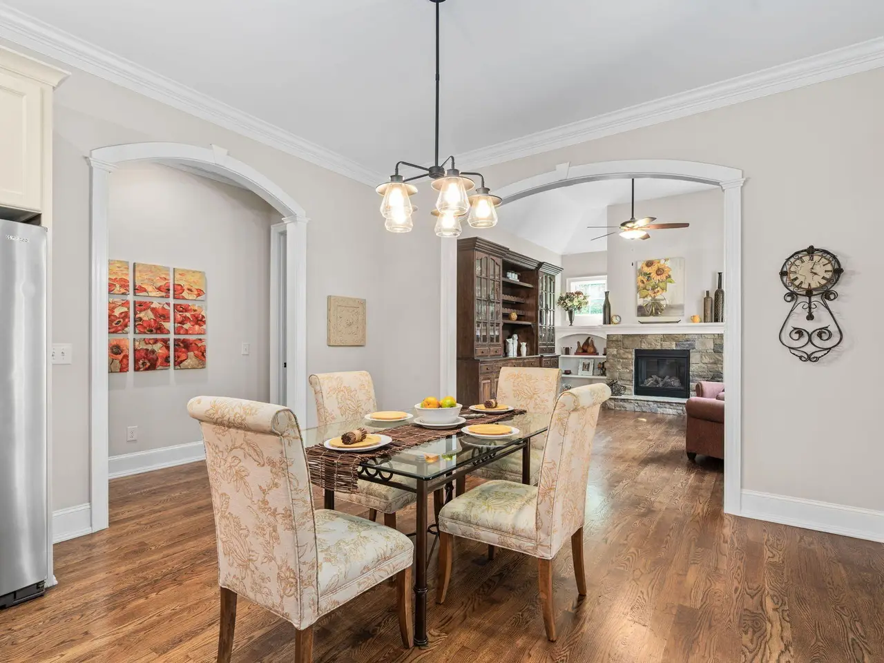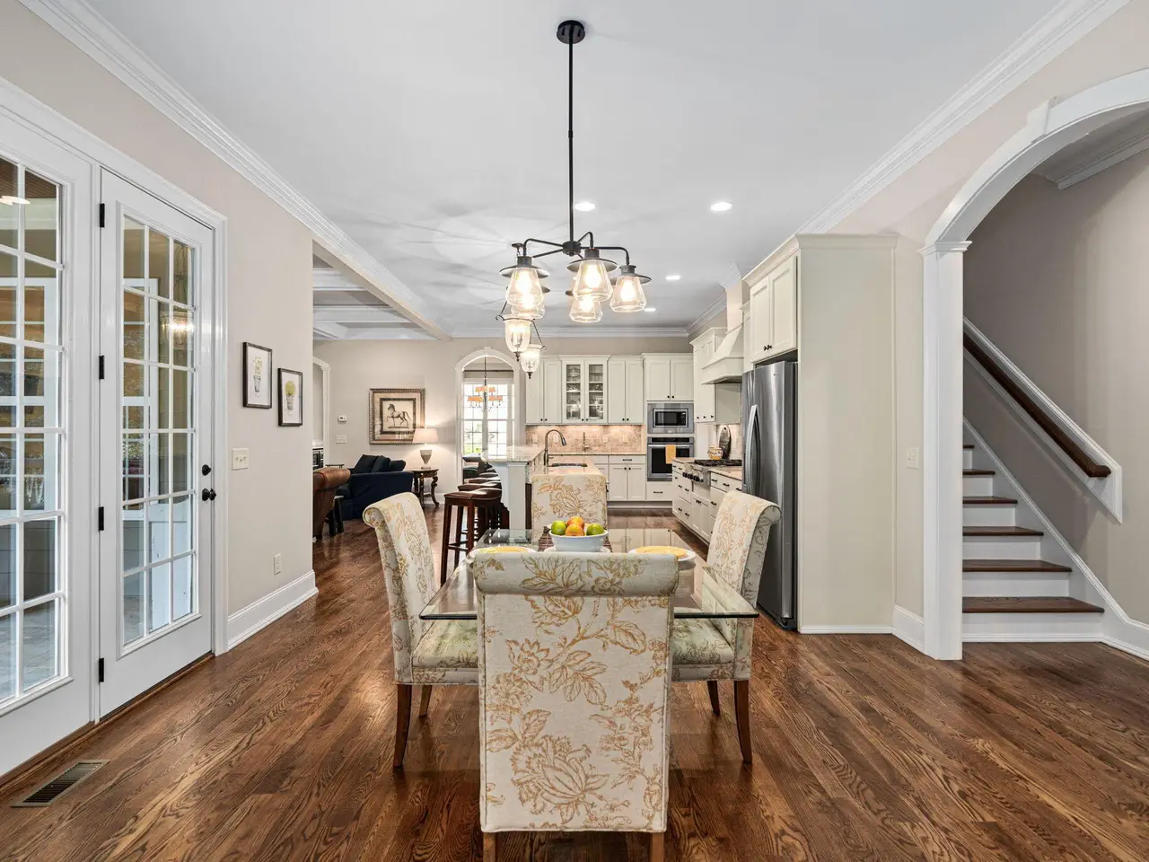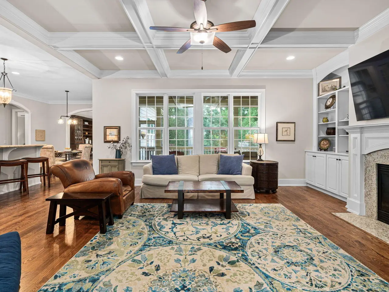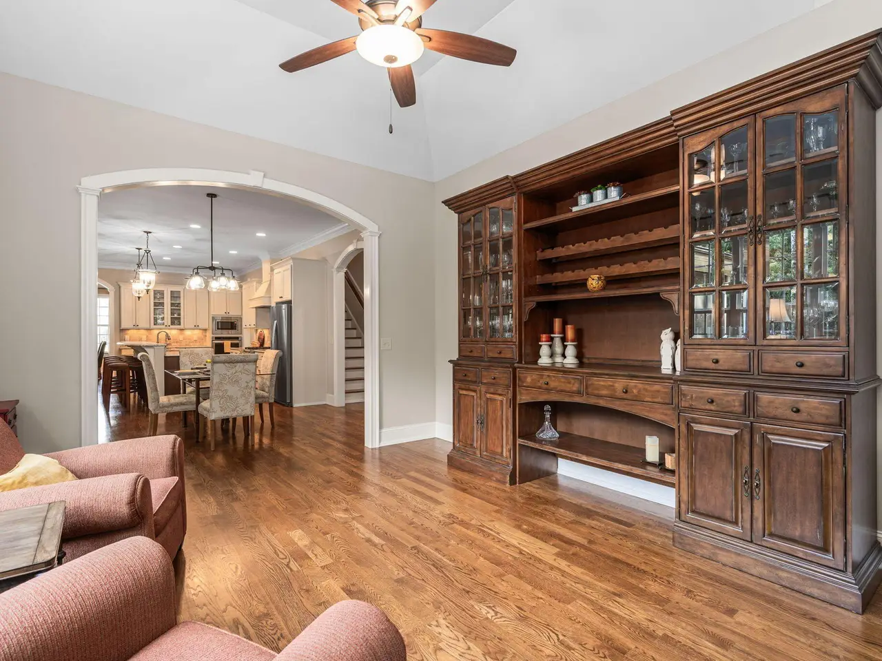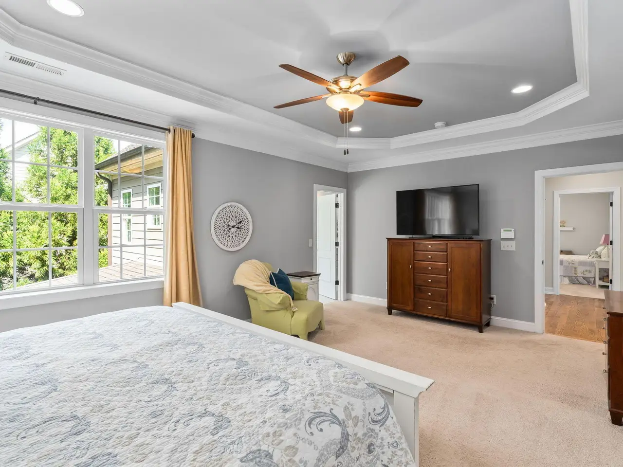 Knock out your wish list with this trophy property. Multi-generational living with TWO primary bedrooms & TWO laundry rooms. Great curb appeal - a gorgeous exterior that is truly swoon worthy. The interior is drenched in vogue finishes. This custom property lives large & encompasses 5 spacious bedrooms, 5 baths, 3 fireplaces, Chef's kitchen, family room, gorgeous hearth room, formal dining room, drop zone, & a bonus room - plenty of room for entertaining, sleep, study, storage and stellar versatility. You are greeted with a double door entry & a grand foyer, gleaming hardwoods, superior mill work & finishes, arched doorways & lofty ceilings that lend an open and airy feel throughout. Coveted primary on main level (one of two): Oversized with a tray ceiling, walk in closet, hardwoods & private views of the lush backyard. The heart of this home will be the Chef's kitchen that is well appointed with a gas cooktop, two sinks, beautiful pendants, an oversized island, under cabinet lighting, a Costco worthy walk-in pantry - this area becomes your gathering place. Hearth room is flanked with a stacked stone gas fireplace, built-ins, hardwoods and a soaring ceiling. 2nd primary BR has two walk-in closets, a luxe spa with a standalone soaking tub, walk-in shower w/custom tile and dual vanities. Add 3 more bedrooms. a bonus room & another wash/dry zone. This home is wrapped in windows that gives such a sense of tranquility. Coffee in the morning, tea in the afternoon or cocktails in the evening - you will never want to leave your screened in porch and/or stacked stone outdoor fireplace. Backyard entertaining area is super-sized with lush greenery, diverse plantings, stone patio & charming accents that elevate the space into a captivating and relaxing retreat. Massive walk-in floored storage areas. Double bay extended garage with room for a workshop or gym. Third floor can be finished. Enviable lifestyle with a community pool / play area and a location that is close to everything you may need or want. Welcome Home!