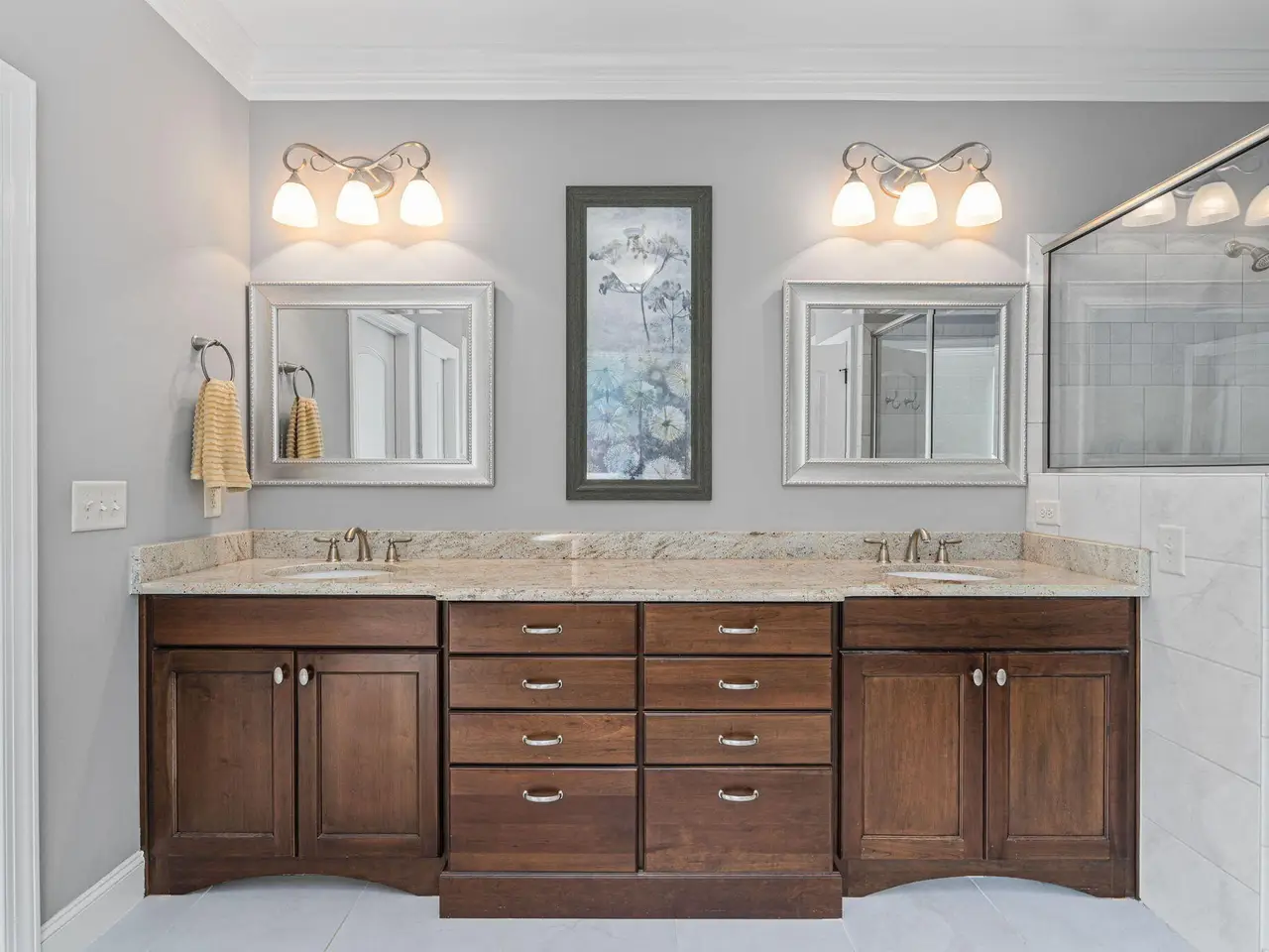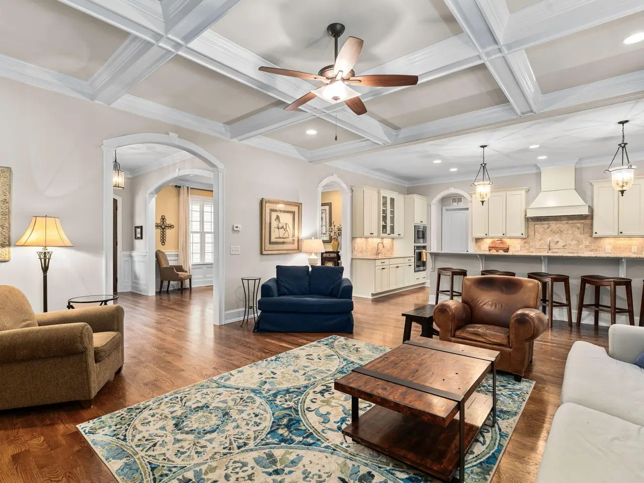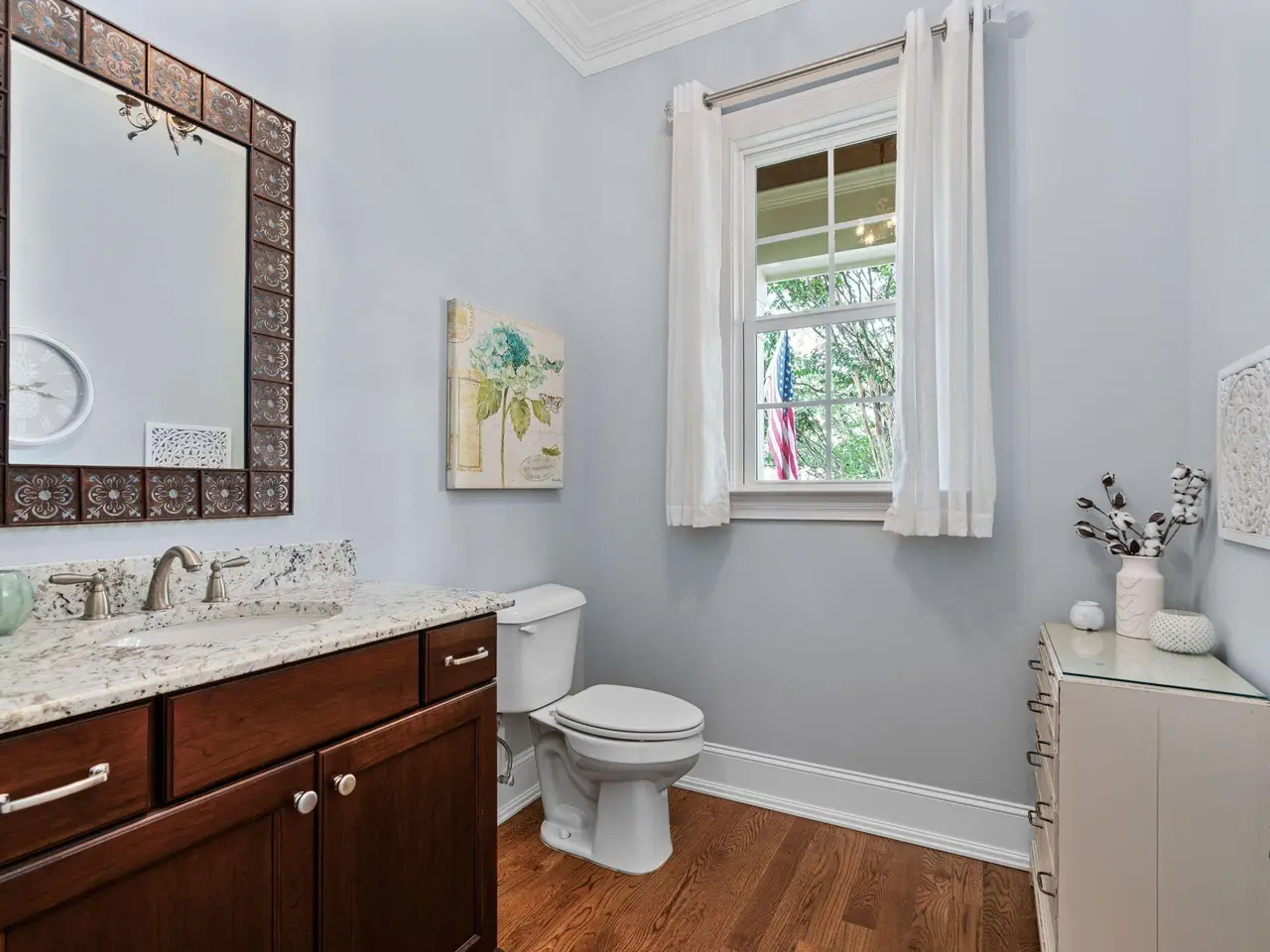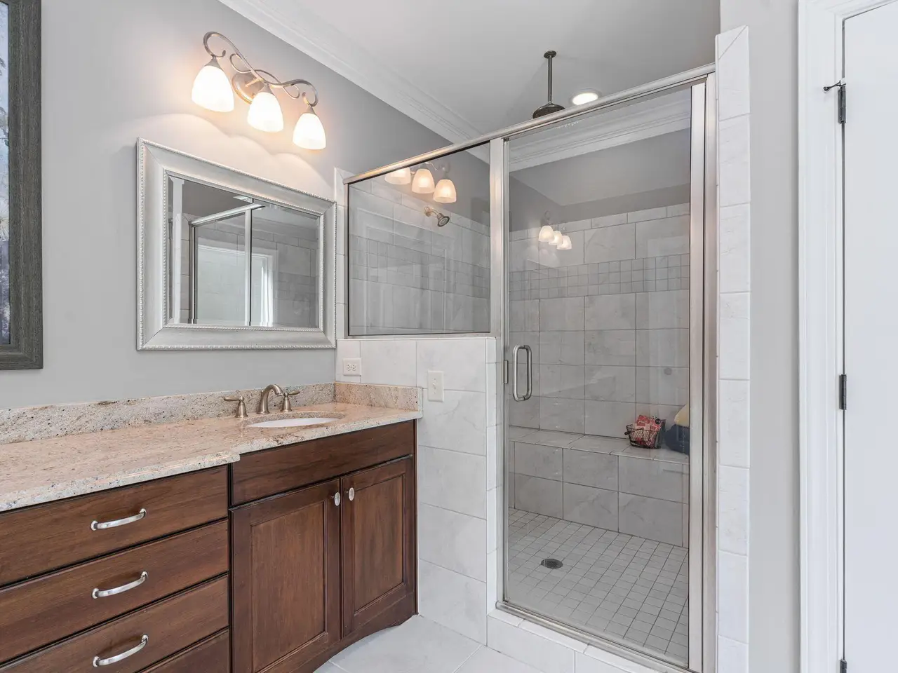 Knock out your wish list with this trophy property. Multi-generational living with TWO primary bedrooms & TWO laundry rooms. Great curb appeal - a gorgeous exterior that is truly swoon worthy. The interior is drenched in vogue finishes. This custom property lives large & encompasses 5 spacious bedrooms, 5 baths, 3 fireplaces, Chef's kitchen, family room, gorgeous hearth room, formal dining room, drop zone, & a bonus room - plenty of room for entertaining, sleep, study, storage and stellar versatility. You are greeted with a double door entry & a grand foyer, gleaming hardwoods, superior mill work & finishes, arched doorways & lofty ceilings that lend an open and airy feel throughout. Coveted primary on main level (one of two): Oversized with a tray ceiling, walk in closet, hardwoods & private views of the lush backyard. The heart of this home will be the Chef's kitchen that is well appointed with a gas cooktop, two sinks, beautiful pendants, an oversized island, under cabinet lighting, a Costco worthy walk-in pantry - this area becomes your gathering place. Hearth room is flanked with a stacked stone gas fireplace, built-ins, hardwoods and a soaring ceiling. 2nd primary BR has two walk-in closets, a luxe spa with a standalone soaking tub, walk-in shower w/custom tile and dual vanities. Add 3 more bedrooms. a bonus room & another wash/dry zone. This home is wrapped in windows that gives such a sense of tranquility. Coffee in the morning, tea in the afternoon or cocktails in the evening - you will never want to leave your screened in porch and/or stacked stone outdoor fireplace. Backyard entertaining area is super-sized with lush greenery, diverse plantings, stone patio & charming accents that elevate the space into a captivating and relaxing retreat. Massive walk-in floored storage areas. Double bay extended garage with room for a workshop or gym. Third floor can be finished. Enviable lifestyle with a community pool / play area and a location that is close to everything you may need or want. Welcome Home!