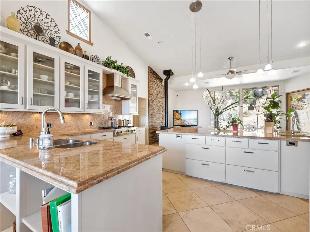 APPLE VALLEY - ÉVASION DANS LE LUXE MODERNE DU DÉSERT. Découvrez l'essence même de la vie dans le désert dans cette magnifique maison unique de 370 m². Conçue pour des réceptions élégantes et un séjour familial confortable, cette demeure exceptionnelle allie harmonieusement style sophistiqué et tranquillité du paysage environnant. Entrez et laissez-vous séduire par ses espaces de vie grandioses. Le salon formel est doté d'une cheminée centrale et de grandes fenêtres offrant une vue panoramique. La salle à manger formelle adjacente offre un espace élégant pour les réunions. Libérez le chef qui sommeille en vous dans la cuisine gastronomique, avec ses armoires sur mesure, ses rangements et ses appareils électroménagers Viking haut de gamme. Le coin repas est un endroit chaleureux pour prendre un café le matin. Détendez-vous et ressourcez-vous dans le salon familial, éclairé par un chaleureux poêle à bois. Retirez-vous dans la vaste suite parentale, dotée d'une grande salle de bain de type spa avec douche séparée et de dressings sur mesure pour elle et lui. Grande buanderie avec rangements. Deux chambres supplémentaires au niveau inférieur, avec salle de bain attenante, offrent un espace généreux pour la famille et les invités. Juste à côté du salon, accédez à votre oasis privée, avec sa piscine étincelante et sa cascade. Une terrasse couverte, protégée du vent et du soleil, offre un cadre idéal pour les repas et les réceptions en plein air toute l'année. Un grand garage pour quatre voitures, avec un espace de rangement supplémentaire en mezzanine, est un atout supplémentaire ! Cette maison exceptionnelle est idéalement située pour un accès facile aux autoroutes. Profitez de la proximité des commerces, restaurants et lieux de divertissement. L'hôpital et d'autres établissements médicaux sont également à proximité. Avec son emplacement privilégié, ses rénovations et ses vues imprenables, cette maison est exceptionnelle. Ne manquez pas cette rare opportunité de devenir propriétaire d'un petit coin de paradis dans le désert !