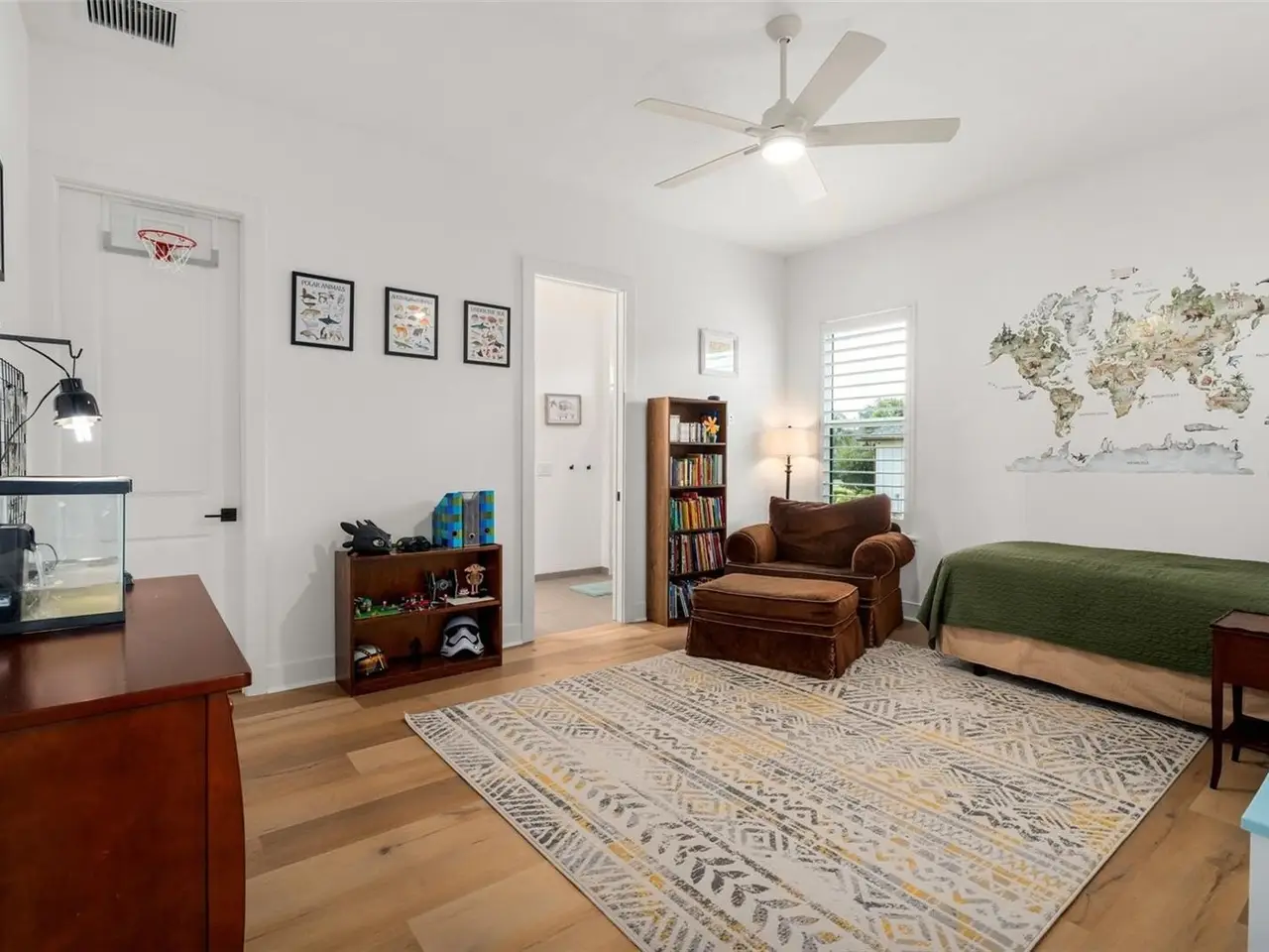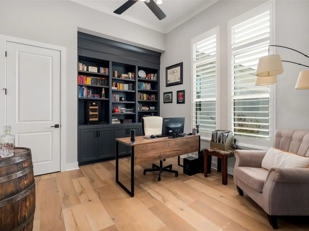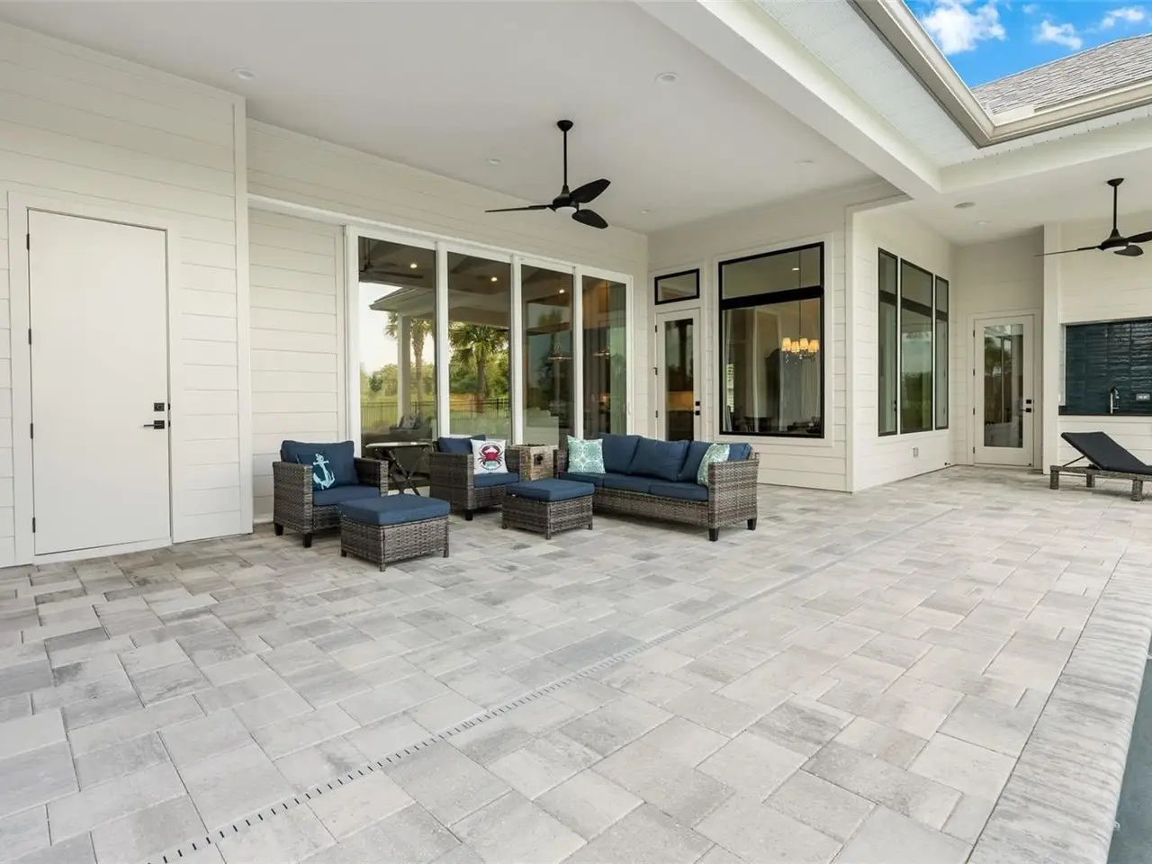 Designed and built by Barry Bullard Homes, this estate blends timeless style with today’s most sought after features, all thoughtfully placed on a fully landscaped, one-acre lot in one of Gainesville’s most desirable luxury communities - Flint Rock. With over 3,600 square feet, this home offers four spacious bedrooms, four full bathrooms, a dedicated study, formal dining, and a flex room with a custom beverage bar that opens directly to your outdoor living space. You’ll instantly appreciate every detail of the kitchen, from the rift-cut oak cabinetry and quartz countertops to the oversized island, stone hood, 5-burner gas cooktop, a built-in convection oven integrated above the microwave, and the wine chiller tucked into its own elegant nook with glass-front cabinets above. The walk-in pantry offers exceptional storage with plenty of space for small appliances, bulk items, and everyday essentials. It doesn’t stop there..your own dedicated household supply room offers even more room for seasonal decor, cleaning essentials, or just extra bulk supplies. Laundy just became that much easier with additional cabinetry, a folding counter, and a designated space to hang clothes. Wood plank flooring runs throughout the main living areas, offering durability with an elevated look. 16' vaulted ceilings with stained wood beams define the great room, which features a gas fireplace, built-ins, and 10’ stack-back sliders that disappear to reveal an expansive lanai and pool. The primary suite has dual walk-in closets, a freestanding soaking tub, and a spa-like walk-in shower. Two full-size, 2-car garages allow for separate entryways from either side of the house for seamless access into the home- each with its own custom drop zone and built-in storage. Out back, the patio is fully paved and made for Florida days. Enjoy a saltwater pool with a sun shelf and flowing water feature, a summer kitchen with a built-in grill and sink, and plenty of covered space to relax or host. Additional energy-efficient upgrades include spray foam insulation, tankless water heaters, a two-zone high-efficiency HVAC system, and vinyl insulated low E windows, all designed to enhance comfort and performance year-round. Flint Rock is a thoughtfully planned community designed to preserve open space and natural beauty. Residents get to enjoy access to recreational areas, nature trails, orchards with fruit and nut-bearing trees, community gardens, and winding walking paths offering more green space than a typical Gainesville subdivision. Schedule a private tour to see the only available home in the neighborhood!