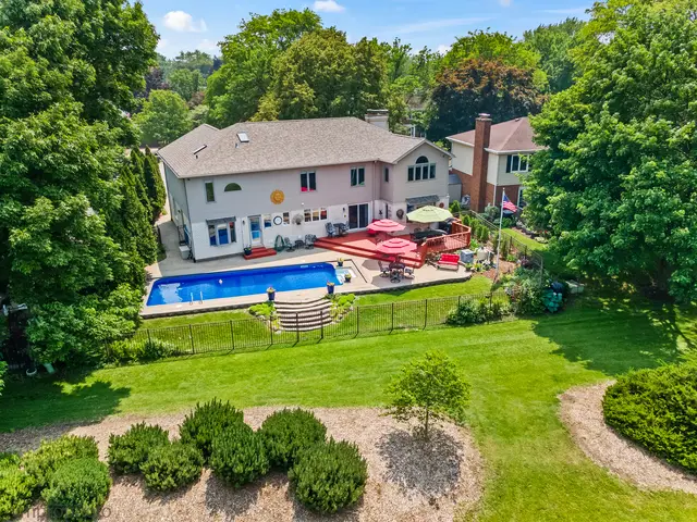 The home admired by many is now available. Wake up to views of Lake Arlington, grab your coffee and sit poolside and then walk out your fenced backyard immediately to the path that surrounds Lake Arlington. Walk to the playground, take sailing lessons, fish, kayak the 50 acre lake or take an evening stroll over for ice cream at the snack stop for the family! In addition to all of these amenities, this home is nestled into a cul-de-sac, lies in Hersey High School and has been extensively remodeled and added on to in a very precise manner. The roofline was changed and a huge addition added that allowed for 2 more huge bedrooms upstairs, so a total of 6 bedrooms on the 2nd floor. Owner currently uses one for an at-home office and the other for a 2nd floor media room - both have cathedral ceilings and closets - so you are able to use as you need. The first floor is expansive and features a 2-sided fireplace between the Living room and Family Room - each having it's own unique characteristics. The large Kitchen is bright and adorned w/ a large island with breakfast bar and sunny breakfast room with sliders to the extensive deck and brick paver patio that surrounds the heated INGROUND POOL. The total remodel of the Dining Room boasts a full wall of custom cabinetry, granite countertops and task lighting - making it ideal for entertaining family or large gatherings of friends/colleagues. The addition of the first floor laundry room was custom designed for an At-home Salon complete with vanity with electrical behind wall at counter for all salon tools - nicely tucked out of sight. Powder Room is located right off the salon, as well as the laundry area and door to backyard. The Primary Bedroom was also enhanced with a cathedral ceiling and large walk in closet. The Primary Bath w/skylight has a lofty view of the lake, marble vanity with ogee edge, corner whirlpool tub, separate custom shower w/tile surround and etched shower doors and a separate water closet. The additional bedrooms are extremely spacious and the hall bathroom has skylight, dual vanities, tub/shower with whirlpool. There are pull down stairs to a full attic that is large enough to walk around in & great for storage. A fully finished lower level has a large Recreation area and gaming space, as well as a billiard area with fireplace. The full bathroom is a nice addition to the additional playroom, craft or hobby room. A great place to spread out and have fun or overflow company to have their own space. This EXCEPTIONAL LOCATION is unmatched and complete with all you could ask for. Entertain on the large deck or relax poolside on the paver patio. The inground pool has a new liner and was designed for floating around or great volleyball games, pool is shallow on either end with the center being deeper for activities. The lot is fully fenced and the paver walk wraps to the front of the yard & charming front porch. Hardscape steps take you to the back gate where you can access the walking trail or walk your paddleboard down to the lake to enjoy some exercise and peaceful moments as you navigate Lake Arlington. Opportunities don't come along like this with a home of 3750 SF with lake views and pool. A must see for any family who wants to enjoy a resort at home for years to come.