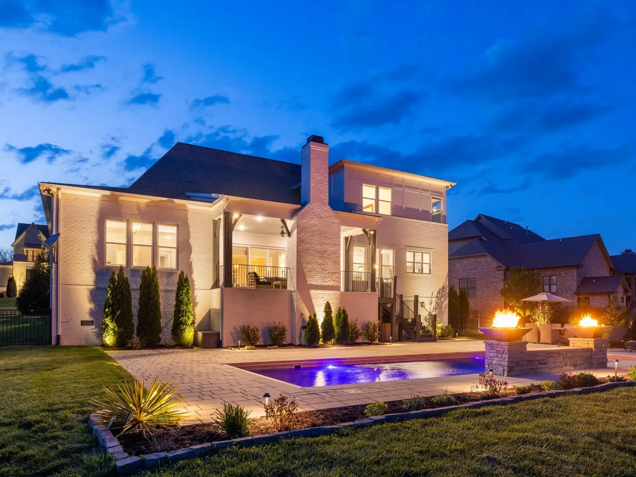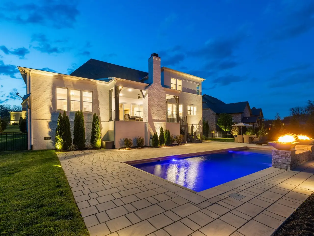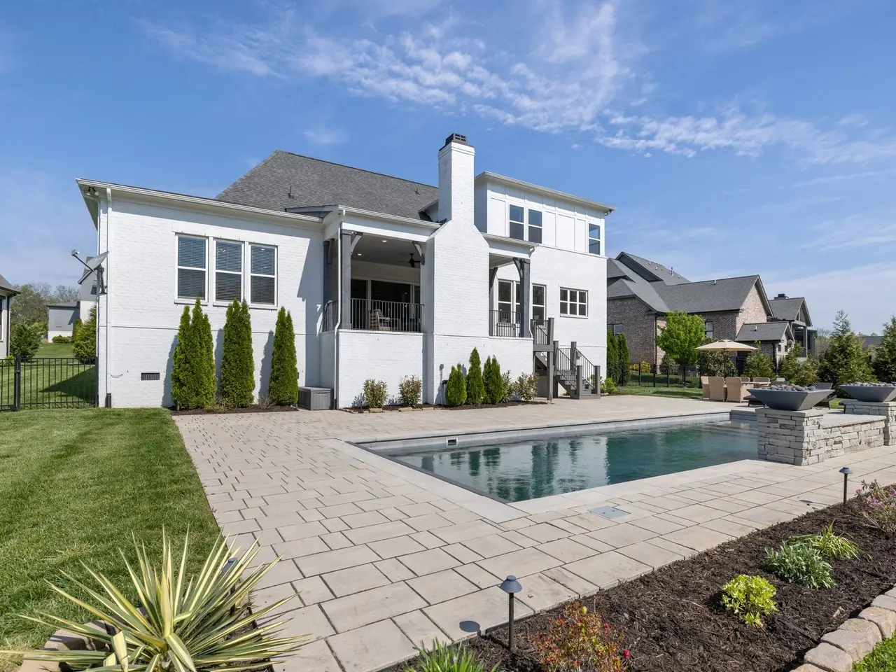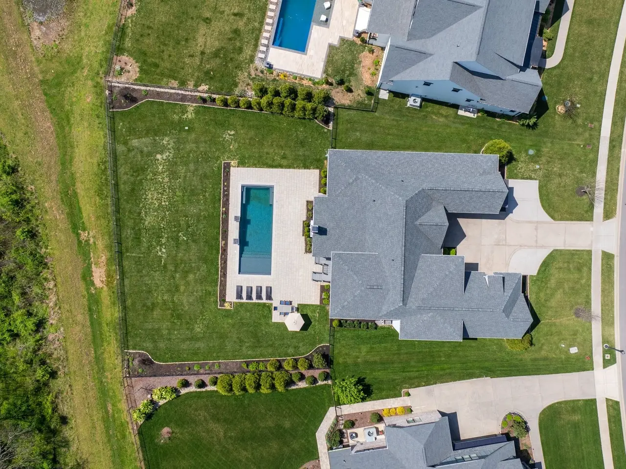 This stunning residence blends luxury, functionality, and thoughtful design across every inch. Located in a desirable community, the home boasts incredible attention to detail--from custom ceiling treatments and exposed wood beams to expansive living spaces and resort-style outdoor amenities.The main level features both a primary suite and guest suite, along with a private study adorned with a coffered ceiling and French doors. Gorgeous hardwood floors run throughout the main living areas, while the formal dining room shines with natural light and elegant wainscoting.The chef's kitchen is a true centerpiece, offering a large center island with seating, ceiling-height cabinetry, top-of-the-line stainless steel appliances, and ample prep space. Just off the kitchen, a wet bar with beverage center provides the perfect setup for entertaining.The living room features a vaulted ceiling with exposed wood beams, custom built-in bookcases, and a gas fireplace, with glass sliding doors opening to a covered rear porch--complete with a fireplace and views of the in-ground pool and lush green space.The primary suite is a luxurious retreat, showcasing a tray ceiling with shiplap accents, private porch access, dual vanities, a freestanding soaking tub, and a floor-to-ceiling walk-in shower with rainhead and bench seating.Upstairs offers incredible flexibility with a spacious bonus room and a media room pre-wired for surround sound, ideal for movie nights or casual entertaining.The outdoor living space is unmatched, featuring a sparkling pool with sun shelf, fire features, and a generous patio area for lounging. The fenced-in backyard adds privacy, and the 3-car garage with stately courtyard entry completes the package.With its mix of elegance, comfort, and entertainment-ready spaces, this home is truly one-of-a-kind.