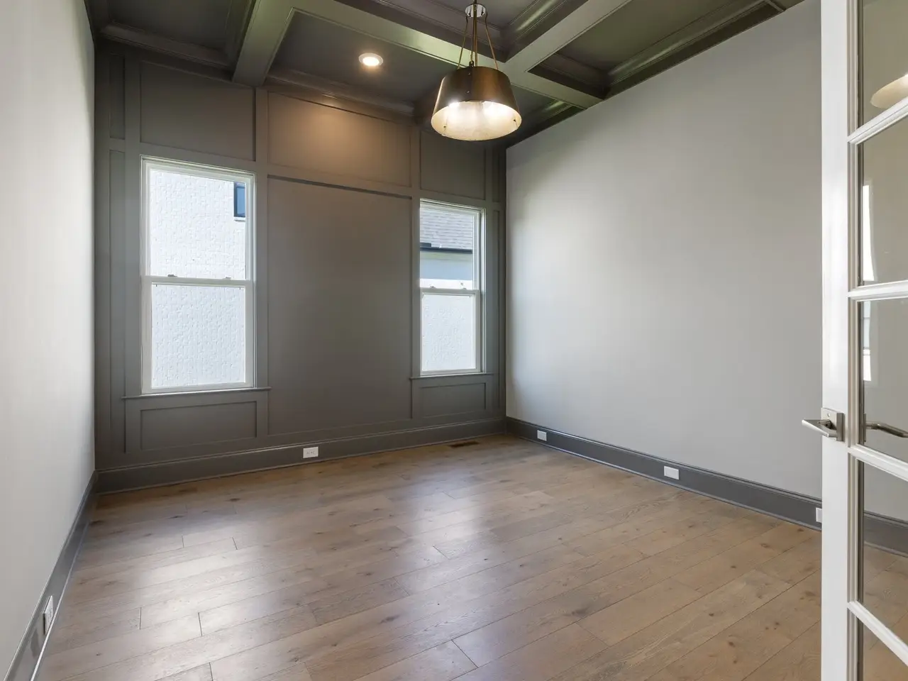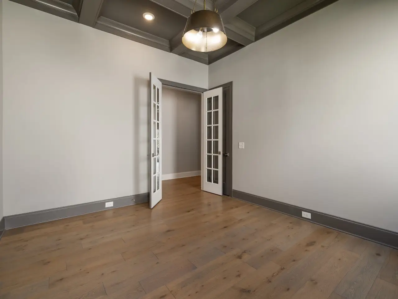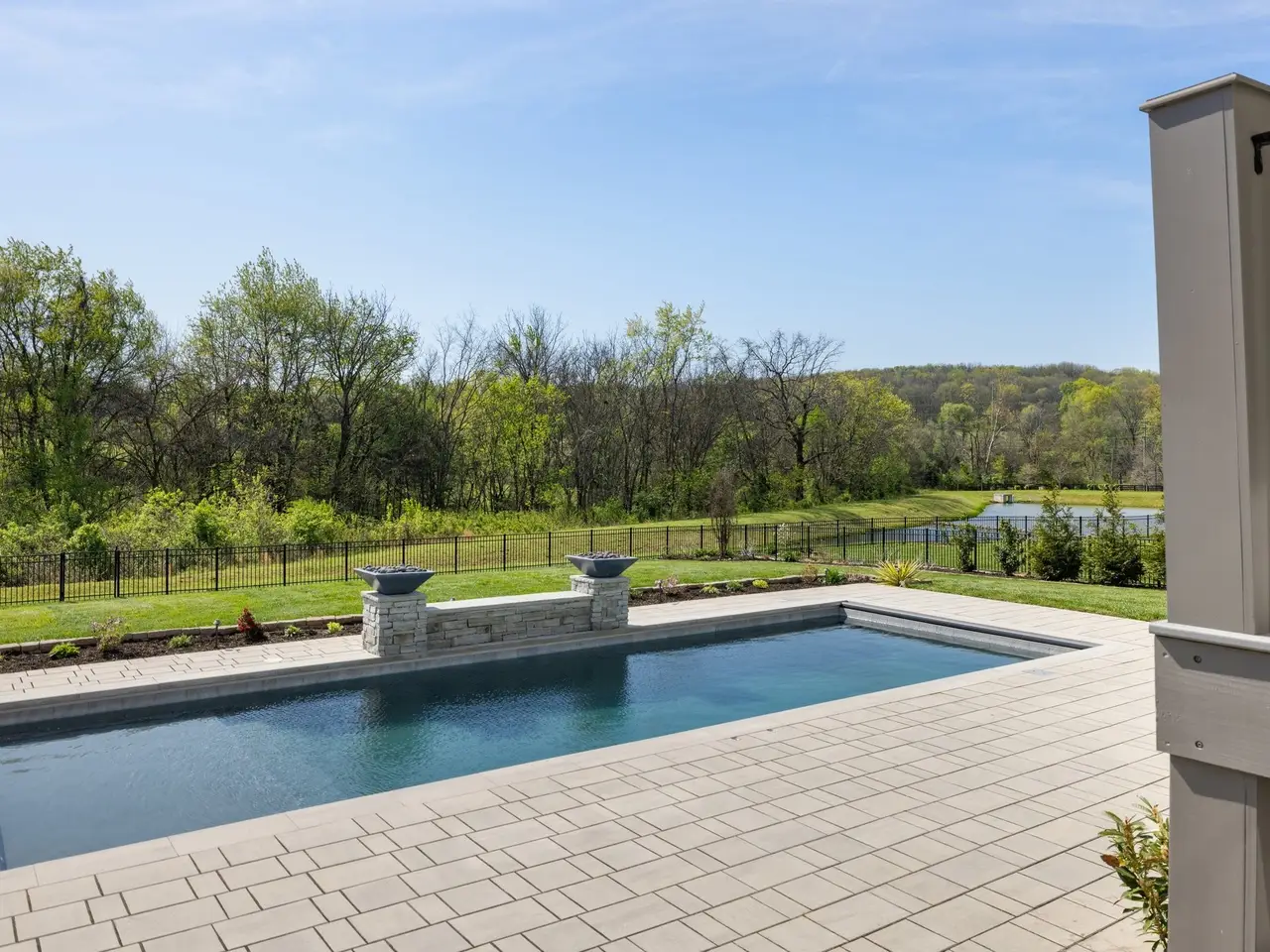 This stunning residence blends luxury, functionality, and thoughtful design across every inch. Located in a desirable community, the home boasts incredible attention to detail--from custom ceiling treatments and exposed wood beams to expansive living spaces and resort-style outdoor amenities.The main level features both a primary suite and guest suite, along with a private study adorned with a coffered ceiling and French doors. Gorgeous hardwood floors run throughout the main living areas, while the formal dining room shines with natural light and elegant wainscoting.The chef's kitchen is a true centerpiece, offering a large center island with seating, ceiling-height cabinetry, top-of-the-line stainless steel appliances, and ample prep space. Just off the kitchen, a wet bar with beverage center provides the perfect setup for entertaining.The living room features a vaulted ceiling with exposed wood beams, custom built-in bookcases, and a gas fireplace, with glass sliding doors opening to a covered rear porch--complete with a fireplace and views of the in-ground pool and lush green space.The primary suite is a luxurious retreat, showcasing a tray ceiling with shiplap accents, private porch access, dual vanities, a freestanding soaking tub, and a floor-to-ceiling walk-in shower with rainhead and bench seating.Upstairs offers incredible flexibility with a spacious bonus room and a media room pre-wired for surround sound, ideal for movie nights or casual entertaining.The outdoor living space is unmatched, featuring a sparkling pool with sun shelf, fire features, and a generous patio area for lounging. The fenced-in backyard adds privacy, and the 3-car garage with stately courtyard entry completes the package.With its mix of elegance, comfort, and entertainment-ready spaces, this home is truly one-of-a-kind.