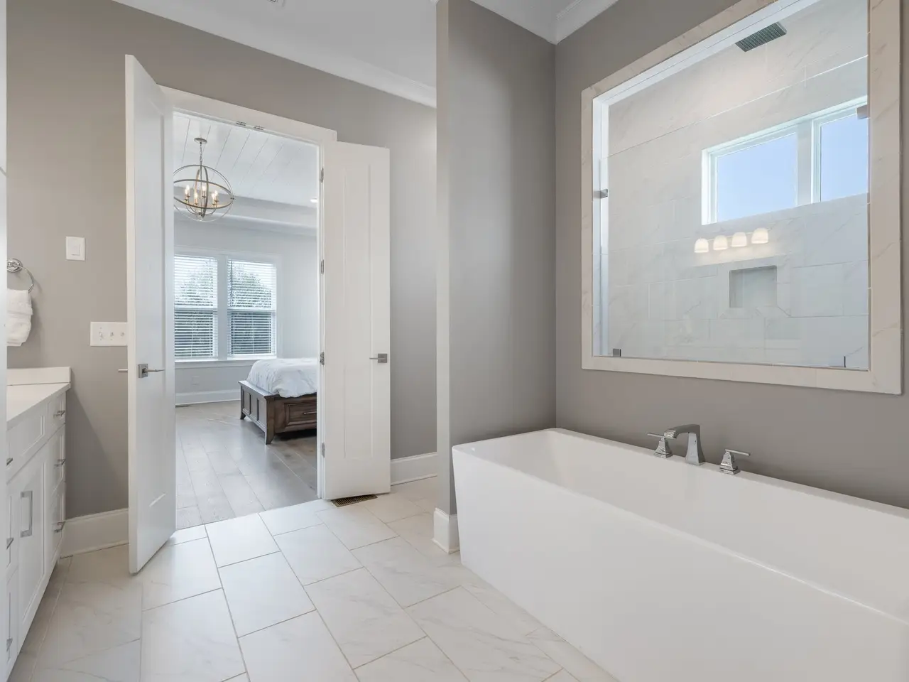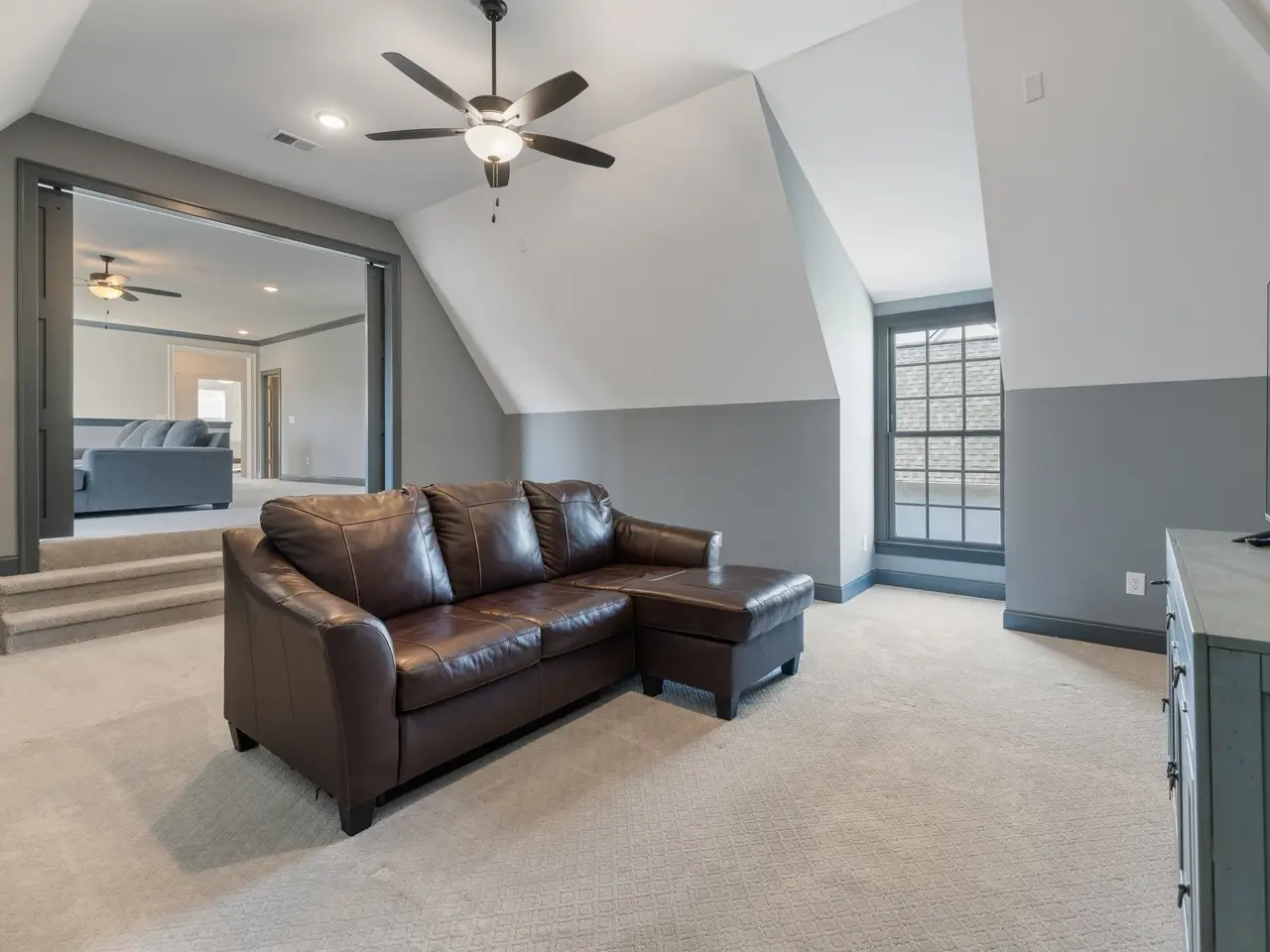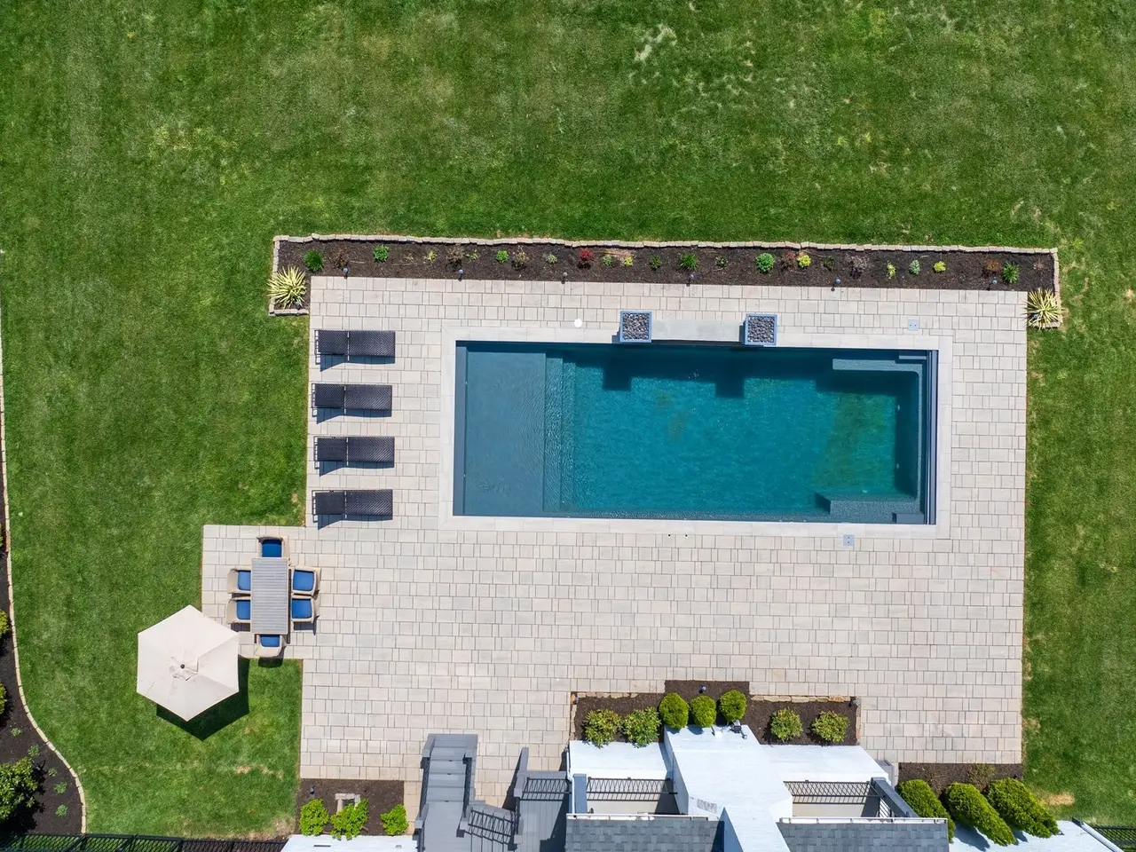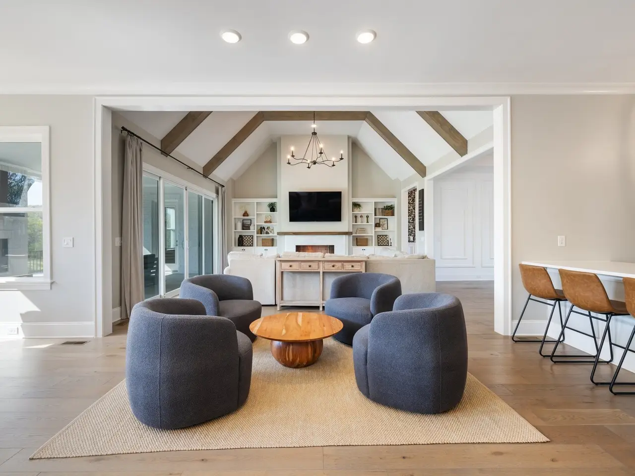 This stunning residence blends luxury, functionality, and thoughtful design across every inch. Located in a desirable community, the home boasts incredible attention to detail--from custom ceiling treatments and exposed wood beams to expansive living spaces and resort-style outdoor amenities.The main level features both a primary suite and guest suite, along with a private study adorned with a coffered ceiling and French doors. Gorgeous hardwood floors run throughout the main living areas, while the formal dining room shines with natural light and elegant wainscoting.The chef's kitchen is a true centerpiece, offering a large center island with seating, ceiling-height cabinetry, top-of-the-line stainless steel appliances, and ample prep space. Just off the kitchen, a wet bar with beverage center provides the perfect setup for entertaining.The living room features a vaulted ceiling with exposed wood beams, custom built-in bookcases, and a gas fireplace, with glass sliding doors opening to a covered rear porch--complete with a fireplace and views of the in-ground pool and lush green space.The primary suite is a luxurious retreat, showcasing a tray ceiling with shiplap accents, private porch access, dual vanities, a freestanding soaking tub, and a floor-to-ceiling walk-in shower with rainhead and bench seating.Upstairs offers incredible flexibility with a spacious bonus room and a media room pre-wired for surround sound, ideal for movie nights or casual entertaining.The outdoor living space is unmatched, featuring a sparkling pool with sun shelf, fire features, and a generous patio area for lounging. The fenced-in backyard adds privacy, and the 3-car garage with stately courtyard entry completes the package.With its mix of elegance, comfort, and entertainment-ready spaces, this home is truly one-of-a-kind.