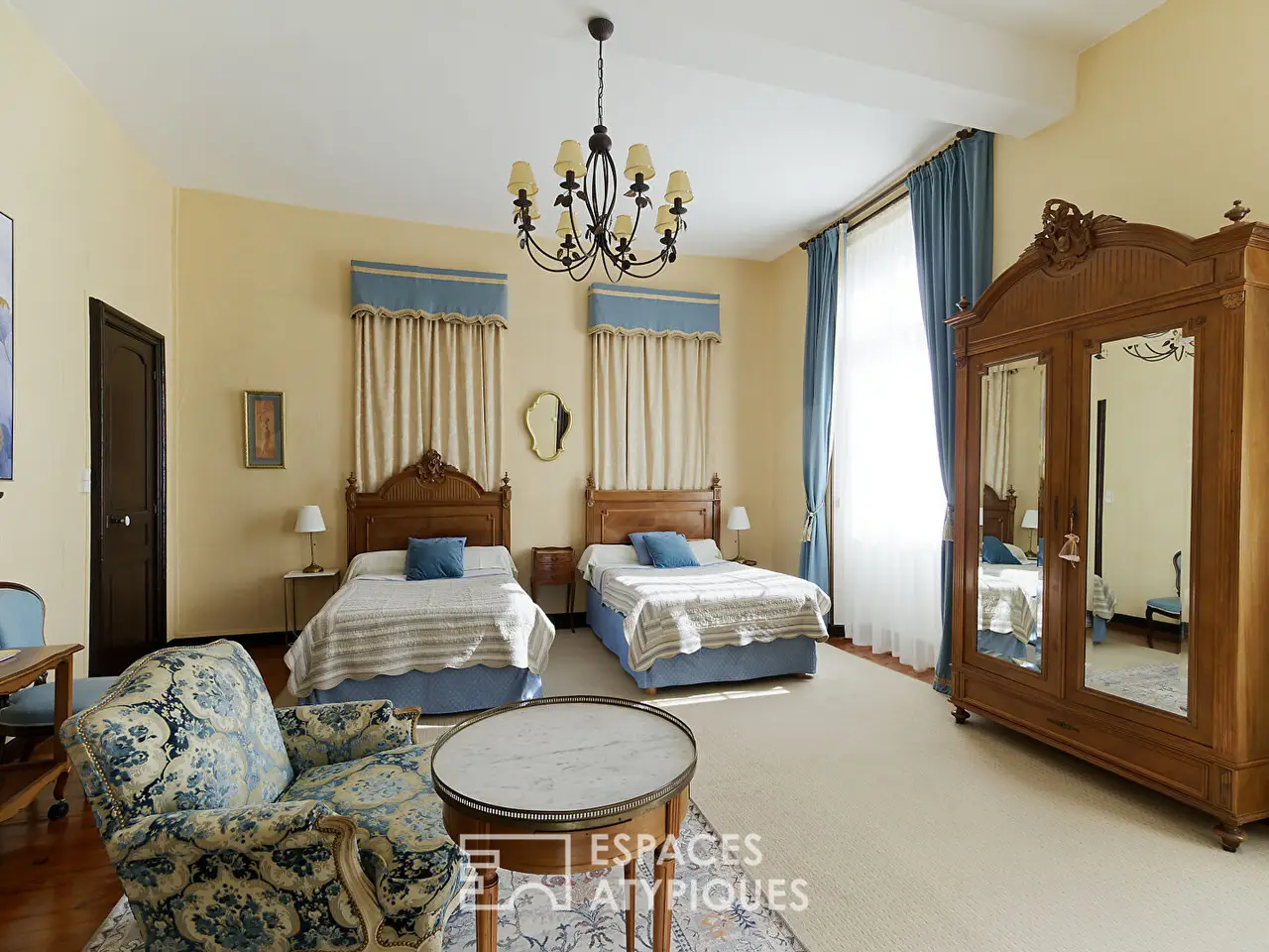 Located on one of the pilgrimage routes to Santiago de Compostela, this residence of approximately 550 sqm of living space is an integral part of the local heritage.Built around 1540, it sits in the heart of the village, a silent witness to several centuries of Bearnese history.Carefully renovated with respect for its original spirit, it houses six suites with private bathrooms, as well as a seventh bedroom that can be connected to one of them.The current layout offers an ideal setting for a guesthouse, charming hotel, or exceptional family residence. The lounge, adorned with antique woodwork, invites you to enjoy breakfast in a cozy atmosphere where time seems to stand still. Opening onto the terrace and garden, it extends via a few steps to the pool area, intimate and protected, with a soothing view of the treetops.More than 350 sqm of outbuildings complete this complex: several volumes to reinvent, offering the possibility of developing a wellness area, a gym, a restaurant or artists' studios, most of which could accommodate an additional floor.Nestled in a green setting, this property with its unique character combines authenticity, elegance and potential. Sold fully furnished, it is ready to live in or welcome its first guests from day one.REF. 12767EAPAdditional information* 14 rooms* 8 bedrooms* 7 shower rooms* 3 floors in the building* Outdoor space : 2615 SQM* Property tax : 4 829 €Energy Performance CertificateEPC blank or in progress* Of which greenhouse gas emissionsd : 33 kg CO2/m2.yearLow CO2 emissions*A*B*C*33kg CO2/m2.yearD*E*F*GVery high CO2 emissionsEstimated average annual energy costs for standard use, indexed to specific years 2021, 2022, 2023 : between 8169 € and 11053 € Subscription IncludedAgency feesThe fees include VAT and are payable by the vendorMediatorMediation Franchise-Consommateurswww.mediation-franchise.com29 Boulevard de Courcelles 75008 ParisInformation on the risks to which this property is exposed is available on the Geohazards website : www.georisques.gouv.fr