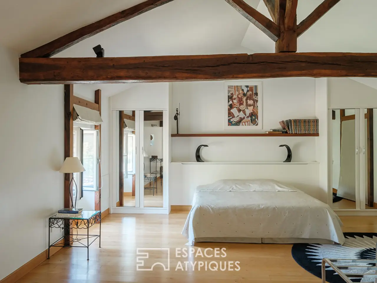 EXCLUSIVE ATYPICAL SPACES Nestled in an exceptional natural setting just 15 minutes from Poitiers, this former 19th-century mill offers approximately 650 sqm of living space, spread across four independent buildings in the heart of a wooded plot bordered by the river. The main residence, measuring 300 sqm, reveals from the entrance a warm living space where the charm of the old blends harmoniously with a custom layout. The spacious and bright reception room is organized around a double living room with a fireplace and large windows opening onto the terrace. The custom-designed kitchen opens to the exterior and extends into a utility room. An office, as well as a master suite on one level with a dressing room and shower room, enrich this level. Upstairs, three suites offer privacy, with privileged views of the green landscapes and the river. The estate also includes two independent gites: each with an entrance, living room, equipped kitchen, and several suites with private bathrooms. A final building, now rented, completes this complex. All accommodations have independent access, preserving everyone's privacy. The landscaped garden is a true haven, punctuated by terraces, trees, and paths leading to the water. A private island, accessible by a small bridge, houses a stainless steel swimming pool perfectly integrated into its environment. A summer kitchen, a gym, a workshop, a cellar, and a double garage complete the features of this property. Ideally located, this property is in close proximity to shops, schools, and services. Poitiers and its TGV station can be reached in 15 minutes, Futuroscope in 20 minutes, and Poitiers-Biard airport in less than 25 minutes. DPE: C (125 kWh/sqm/year) GES: C (14 kg CO2/sqm/year) Estimated annual energy costs for the home (including subscriptions), for standard use, between 2562 euros and 3466 euros per year, according to average energy prices indexed for the year 2021 (concerning the main residence).REF. EAP156Additional information* 17 rooms* 12 bedrooms* 4 bathrooms* 6 shower rooms* 2 floors in the building* Outdoor space : 14000 SQM* Parking : 10 parking spaces* Property tax : 4 858 €Energy Performance CertificatePrimary energy consumptionc : 125 kWh/m2.yearHigh performance housing*A*B*125kWh/m2.year14*kg CO2/m2.yearC*D*E*F*GExtremely poor housing performance* Of which greenhouse gas emissionsc : 14 kg CO2/m2.yearLow CO2 emissions*A*B*14kg CO2/m2.yearC*D*E*F*GVery high CO2 emissionsEstimated average annual energy costs for standard use, indexed to specific years 2021, 2022, 2023 : between 2562 € and 3466 € Subscription IncludedAgency feesThe fees include VAT and are payable by the vendorMediatorMediation Franchise-Consommateurswww.mediation-franchise.com29 Boulevard de Courcelles 75008 ParisInformation on the risks to which this property is exposed is available on the Geohazards website : www.georisques.gouv.fr