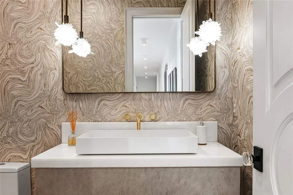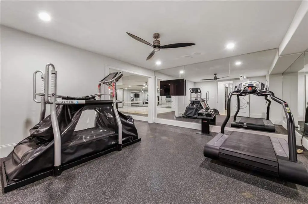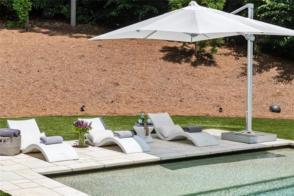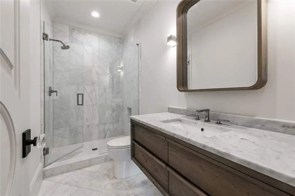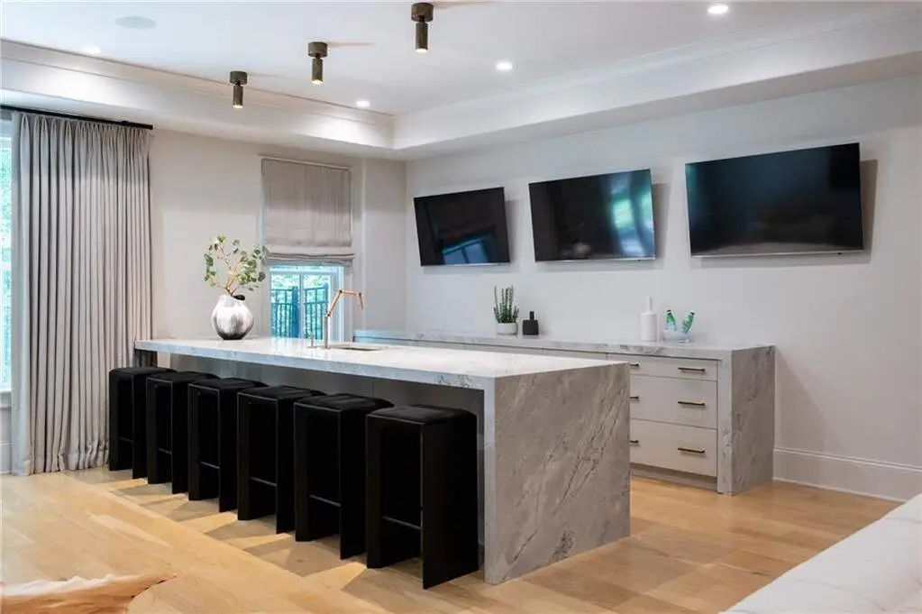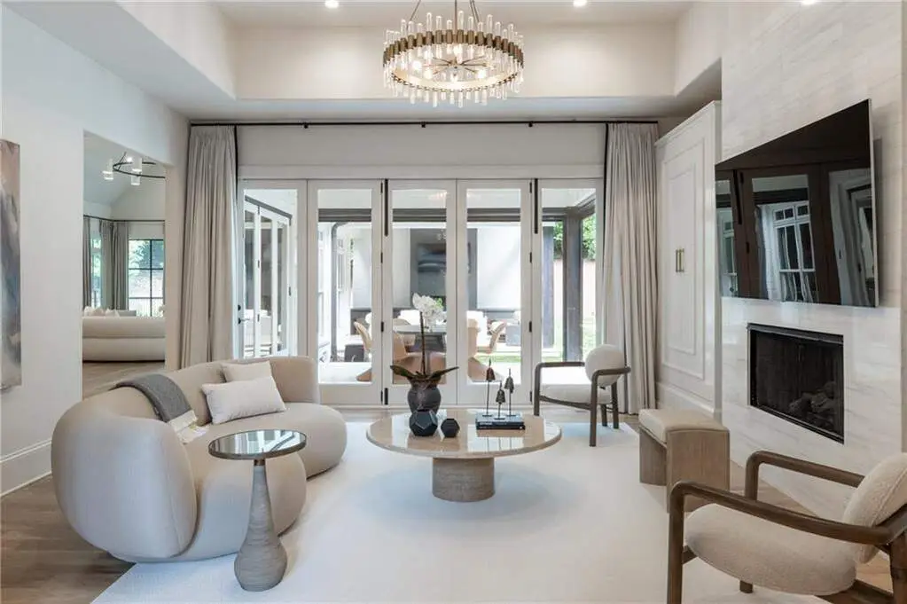 Tucked behind private gates on an expansive 2.1-acre estate in the prestigious Buckhead neighborhood, this exquisite residence is a stunning example of timeless design and refined living. Every element of the home has been thoughtfully curated to blend classical architecture with modern luxury. A dramatic two-story foyer greets you with a sweeping curved staircase and floods of natural light, setting the tone for the sophistication within. To one side, a richly appointed study showcases bespoke floor-to-ceiling millwork and a striking view of the private front landscape. On the other, the formal dining room impresses with detailed trim work, soaring ceilings, and elegant proportions ideal for both intimate gatherings and large-scale entertaining. The main living room offers a harmonious balance of grandeur and comfort, featuring a tray ceiling, a bold stone fireplace, and a wall of windows that seamlessly merge indoor and outdoor living. Adjacent is the chef's kitchen, a true centerpiece of the home, anchored by a stunning marble waterfall island and outfitted with top-tier appliances concealed within custom cabinetry. A burnished brass pot filler, sleek vent hood, and wine refrigerator complete this space designed for both form and function. Flowing naturally from the kitchen, the light-filled family room is a haven for relaxed living, with vaulted ceilings and expansive windows that frame views of the beautifully landscaped walk out turf backyard and open gracefully to an outdoor veranda with automated screens. The main-level primary suite is a serene retreat with a vaulted ceiling and wooded vistas. Its en-suite bath evokes a boutique spa experience, featuring a sculptural stone soaking tub, a dramatic glass-enclosed marble shower, dual vanities with ambient lighting, and his-and-hers dressing rooms finished in rich custom cabinetry. Upstairs, five well-appointed bedrooms each feature private en-suite baths. A separate guest suite includes its own living space and bathroom, offering a versatile area perfect for extended stays, children's activities, or a private lounge. The home also includes an elevator that serves all levels, leading to an impressive terrace level designed for indulgence and leisure. Highlights include a glass-front, climate-controlled wine cellar, a professional-grade home theater, a full fitness suite with a mirrored studio for dance, barre, or yoga, and an additional living area complete with a full kitchen and guest accommodations. Outdoors, this estate continues to elevate the lifestyle with a resort-style saltwater pool and tanning shelf, expansive flat lawn, and dual covered pavilions featuring a wood-burning fireplace and vaulted wood ceilings ideal for alfresco dining and year-round enjoyment. A gated area offers the perfect space for pets or play. This is a rare opportunity to own a truly bespoke residence in one of Atlanta's most sought-after addresses an estate that defines elegance, privacy, and timeless sophistication.