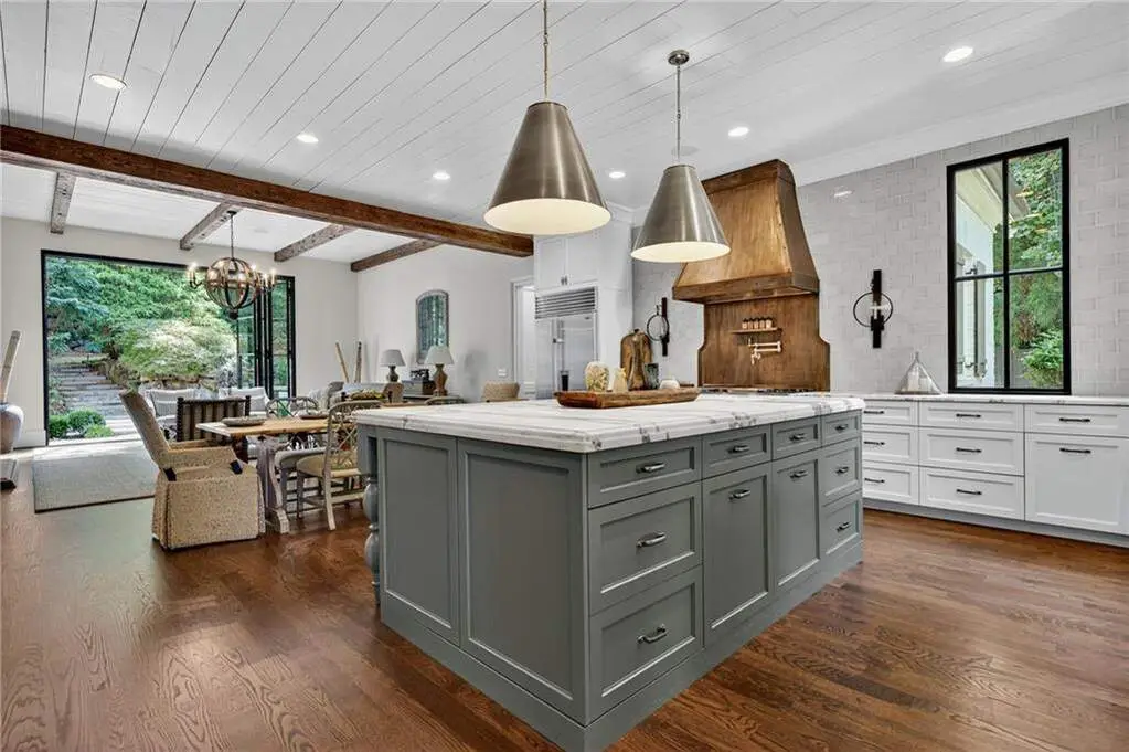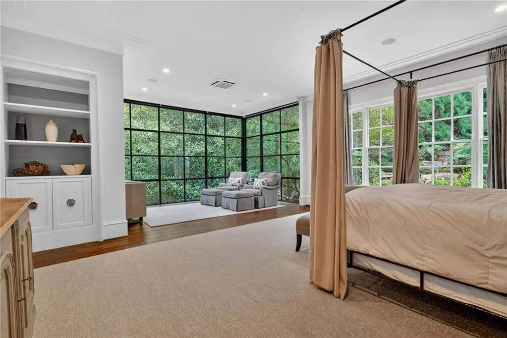 Gorgeous recent renovation by Ladisic Homes on 1+/- acre of land, perfectly situated at the end of a gated cul-de-sac street. Features include high ceilings, beautiful moldings, and entertainer's dream floorplan. The stunning kitchen features a large quartzite island, Wolf range, and Sub-Zero refrigerator, and opens seamlessly to a keeping room w/ reclaimed wood beamed ceiling and walls of iron doors and windows. Enjoy effortless indoor/outdoor living with a walkout pool and spa from the main level living spaces. A spacious mudroom, walk in pantries, and oversized laundry room are conveniently located off the three-car garage. The main-level primary suite offers a serene retreat with a sitting area and iron windows overlooking a tranquil wooded setting with a stream. The luxurious bath includes dual vanities, a soaking tub, separate shower, and large walk-in closet. The newly finished terrace level includes a fun custom bar/ pub area, media room, gym with sauna, and flex spaces. Upstairs, you'll find four spacious en-suite bedrooms plus a large bonus/flex room. Located just minutes from top-rated private schools, Heards Ferry and Riverwood district, Chastain Park, shopping, and dining-this home truly has it all.