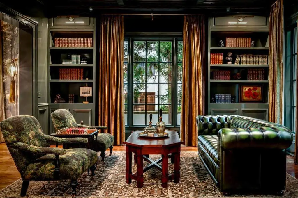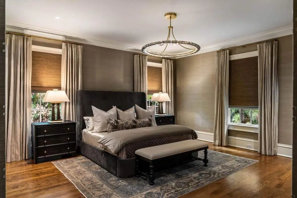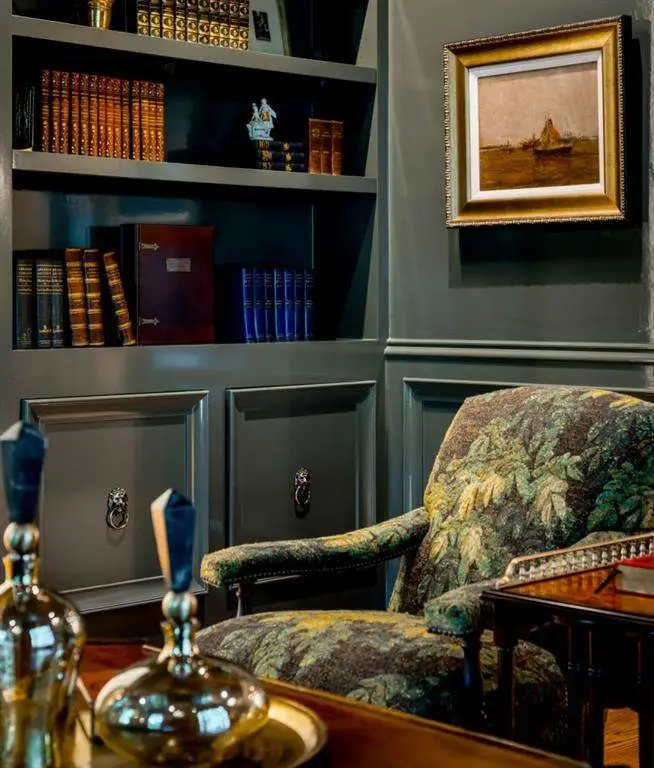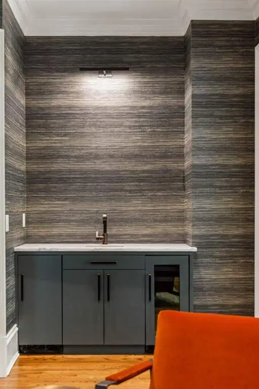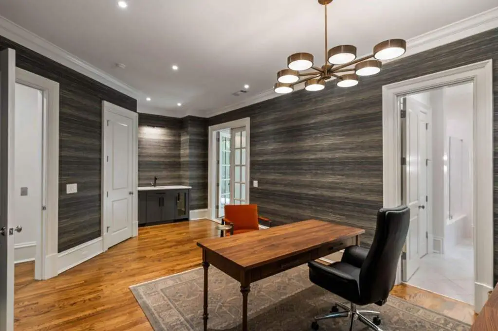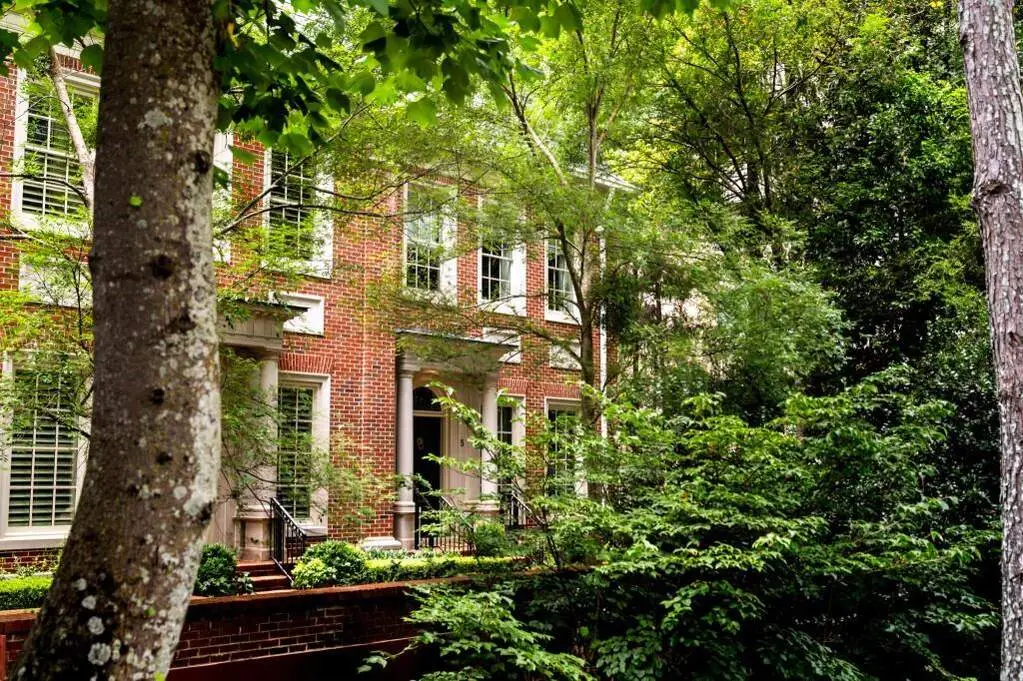 Sumptuous interiors define this stunning newly renovated Buckhead townhome. Located in the highly sought-after, prestigious Peachtree West neighborhood, it is within easy distance to restaurants, schools, places of worship, Peachtree Battle Shopping Center, and the ever-popular St Philips Saturday Farmers Market. This elegant all-brick townhome complex designed by William T. Baker and built by Brunning & Stang features only five units. The exterior is reminiscent of those lovely streets of Mayfair London or the Upper West Side of New York City. Number 5 is the farthest end unit in the complex allowing for a quiet and peaceful environment. As you enter the home, you will be awed by the sophisticated next level luxury renovations of the finest materials and craftsmanship throughout. The exceptional library to the right of the entry is designed and emulates a Ralph Lauren look with dark green lacquer bookcases and coffered ceilings highlighted by the multiple windows - a benefit to an end unit. With a view throughout the unit the next room is the truly breathtaking dining room from the stunning wallpaper to the custom built in cabinets and the artistically designed light fixtures. A room that your dining guests will remember. The light-filled living room with cast stone fireplace is open to the magazine worthy kitchen that will stop you in your tracks. This superb kitchen is luxurious and efficiently designed for any gourmet cook. The La Cornue dual fuel range is complemented with high-end appliances such as the Sub-Zero refrigerator, Fisher & Paykel dishwasher drawers, Miele coffee maker system and speed oven and more upscale appliances. The plentiful cabinets feature organizational details. Calacatta Vagli adds a perfect dimension of marble counters, backsplash, and counter for nine-foot island. The island has seating and a surprise feature at the end with the feeding station that will delight any dog parent. A wonderful arched window positioned above the sink brings light and a view to the courtyard and greenery. Access to the courtyard may be through the full-light doors flanking the fireplace. The private brick patio has space for dining and relaxing with a built-in grilling station and gives direct access to the nice side yard. A pretty half bath is located off the main hall. There is an elevator to all four floors. On the second level you will find a spacious primary suite renovated to perfection with Phillip Jeffries wallpaper and custom lighting. The two walk-in custom closets are nicely outfitted. The primary bath has a marble double vanity, stand-alone soaking tub and separate shower and water closet. A redesigned laundry room has full size washer and dryer and cabinets. The first secondary bedroom with private bath is on this floor. The upper floor presents a considerable room for a third bedroom or office, beverage center and private bath with access to the covered porch. The sizeable fourth secondary bedroom has its own bath as well. The lower level presents newly added space of over 640sf and offers a nicely sized fitness room, charming wine cellar with steel and iron doors with capacity for 350 - 400 bottles. The storage area has multiple enclosed cabinets. The two-car garage access is on this floor. There is a private security gate for both the sidewalk entry and the garage. Guest parking is in the secured garage. This tranquil and sophisticated townhome lives like a single-family home yet offers a lock and leave residence.
