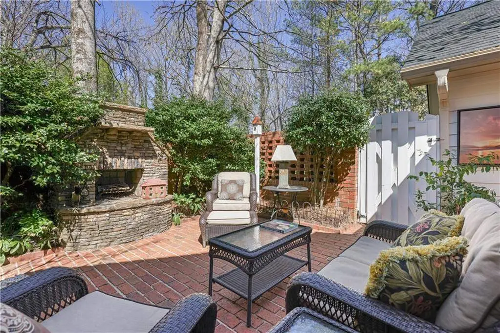 Located on a cul-de-sac in the most desirable section of the Paces West Neighborhood, this stunning, renovated end unit townhome offers the perfect blend of charm, quality, and convenience. Featuring hardwoods throughout with three bedrooms and two and a half baths, the home boasts a large and light-filled family room with a cozy gas fireplace, opening to a relaxing patio with its own outdoor fireplace-ideal for entertaining. The chef's kitchen offers custom cabinetry, island and stainless appliances with views of the family room. The spacious fireside dining room and separate inviting living room create a warm and welcoming atmosphere. Upstairs, the primary suite offers a spa-like bathroom and his-and-hers closets, while two additional bedrooms share a well-appointed bath. Additional walk-in attic space allows for easy storage. Thoughtful details including wainscoting, coffered ceilings and quality craftsmanship can be found throughout the home. A covered walkway leads from the home to the large two car garage with additional attic storage. Adjacent to the two car garage is a private green space. Paces West is a sought-after gated community with just 82 homes, offering fantastic amenities, including a pool and a dog park, along with an active and friendly neighborhood atmosphere. Enjoy a short stroll to the West Paces Ferry Shopping Center, Blue Ridge Grill, Whole Foods, Starbucks and more!