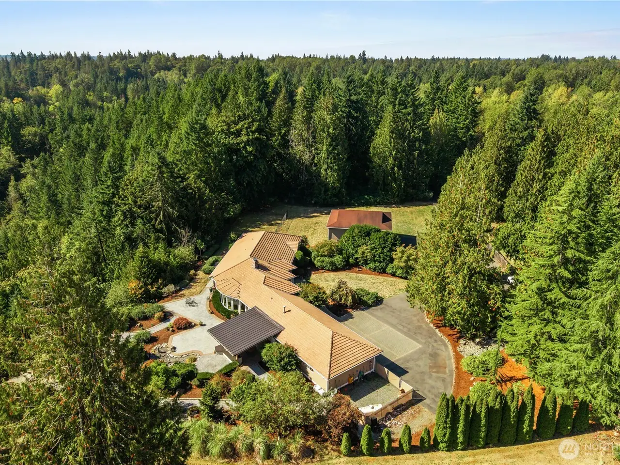 Incredible custom 4-bed, 2.75 bath home on 4.6 serene acres! From breathtaking views of Mt. Rainier to the thoughtful design, every detail has been crafted for comfort & enjoyment. The primary bedroom is a retreat of its own w/spacious 5-piece en suite & large walk-in closet. The home offers dual living spaces, giving everyone room to relax or entertain w/ease. The expansive kitchen will inspire culinary creativity w/its double ovens, wine fridge, & ample space for preparing & hosting. Don't forget the dedicated office, ideal for WFH or pursuing your passions. Step outside to your oversized backyard w/outdoor kitchen where you can take in uninterrupted views of Mt. Rainier then head to your 36x40 detached shop! Pre Inspected. Generator. A/C