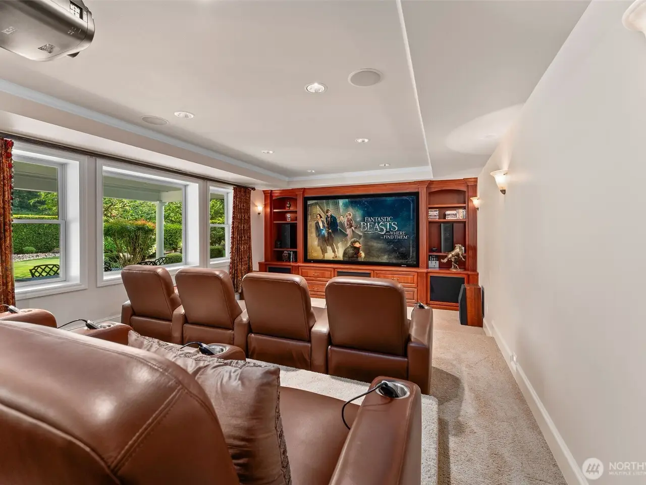 Welcome to your dream home on the 15th green of Washington National Golf Course! Nestled in a gated cul-de-sac, this stunning 5 bedroom (4 bed septic), 3.5 bath house boasts luxurious living space. On the main floor you will find the living & dining rooms & office. The beautiful kitchen, with Miele appliances, center island & pantry. The adjacent dining area & family room offer coffered ceiling w/ stone fireplace & stunning views of the golf course. Upstairs includes the incredible primary suite w/ sitting area, cozy fireplace, walk in shower, jetted tub & walk in closet. Three additional bedrooms & bonus room. Lower level features home theater & mother-in-law suite. Outside you will find a sports court, covered patio, 2 decks & firepit.