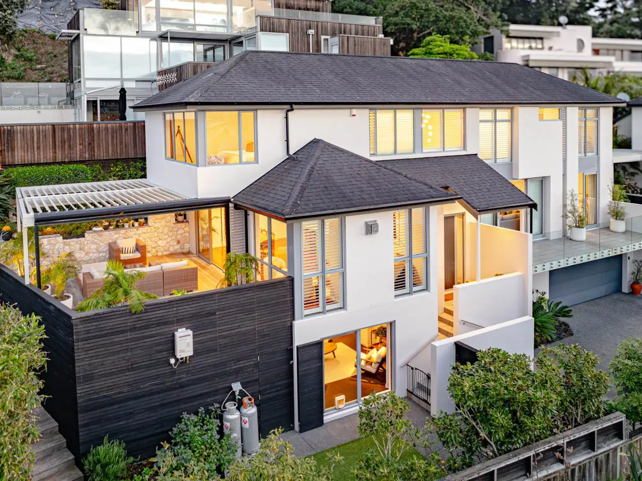 Loads of indoor/outdoor space, minimal gardening effort – and virtually maintenance-free by the sea. This immaculate 301m² 4/5-bedroom, solid masonry home makes it easy to relax. It’s a spacious, safe and stylish answer to coastal living, less than 200 steps to beautiful sandy Kohimarama beach. In a securely gated property, every room faces north, catching the warmth of the sun. The 2 elevated living areas open to decks including the spacious kitchen/sitting room which flows to a huge sunny entertainer’s terrace beneath an electronic louvred ceiling with sensors that respond to the weather and remote-controlled blinds to shield winds. In the adjacent garden, there’s just enough space to dabble for green fingers. The 2nd lounge is a generous tv escape. And with new F&P appliances, the sleek open plan kitchen has a scullery for extra storage. A 3rd living option is on the lower level; a multi-purpose room opening to a compact astro-turf lawn for your pets - maybe a 5th bedroom, home office or gym. Your choice. The guest bedroom with separate bathroom is on the same level as the main living. Upstairs, the large master suite has a good-sized dressing room and a peek of the sea. There are 2 more bedrooms on this level which share a bathroom with a freestanding bath. Storage throughout is generous. There’s a carpeted double garage plus off-street space for 4 cars. And so close to the beach, you’ll appreciate room for paddle boards and beach toys in a lock-up under the house and a separate laundry. Zoned for Kohi School, Glendowie College and Baradene College. A fantastic address with cafes and tennis up the road. Live the dream. Auction: 34 Shortland Street, City on Wednesday 5 November 2025 at 10:00AM (unless sold prior)