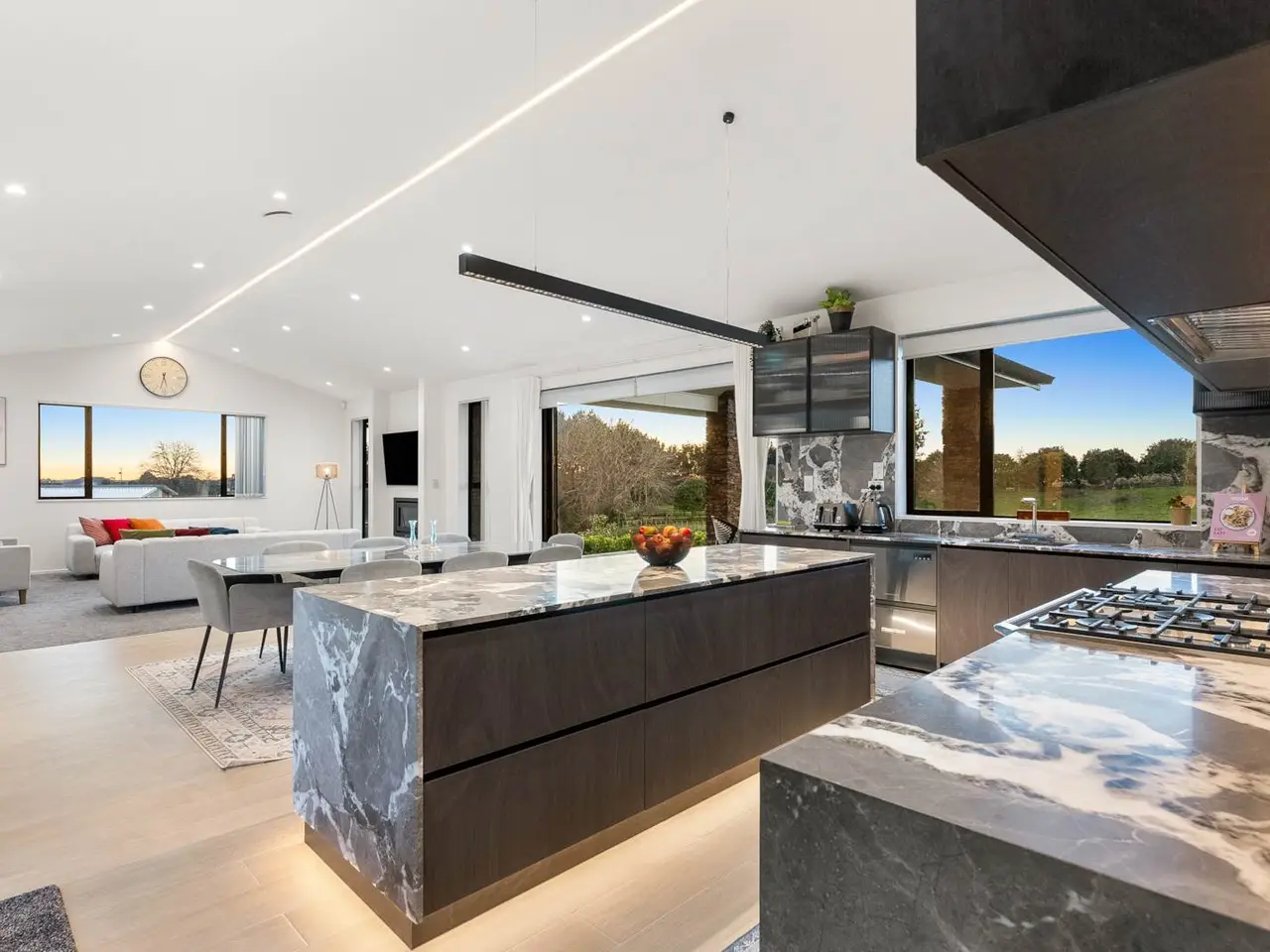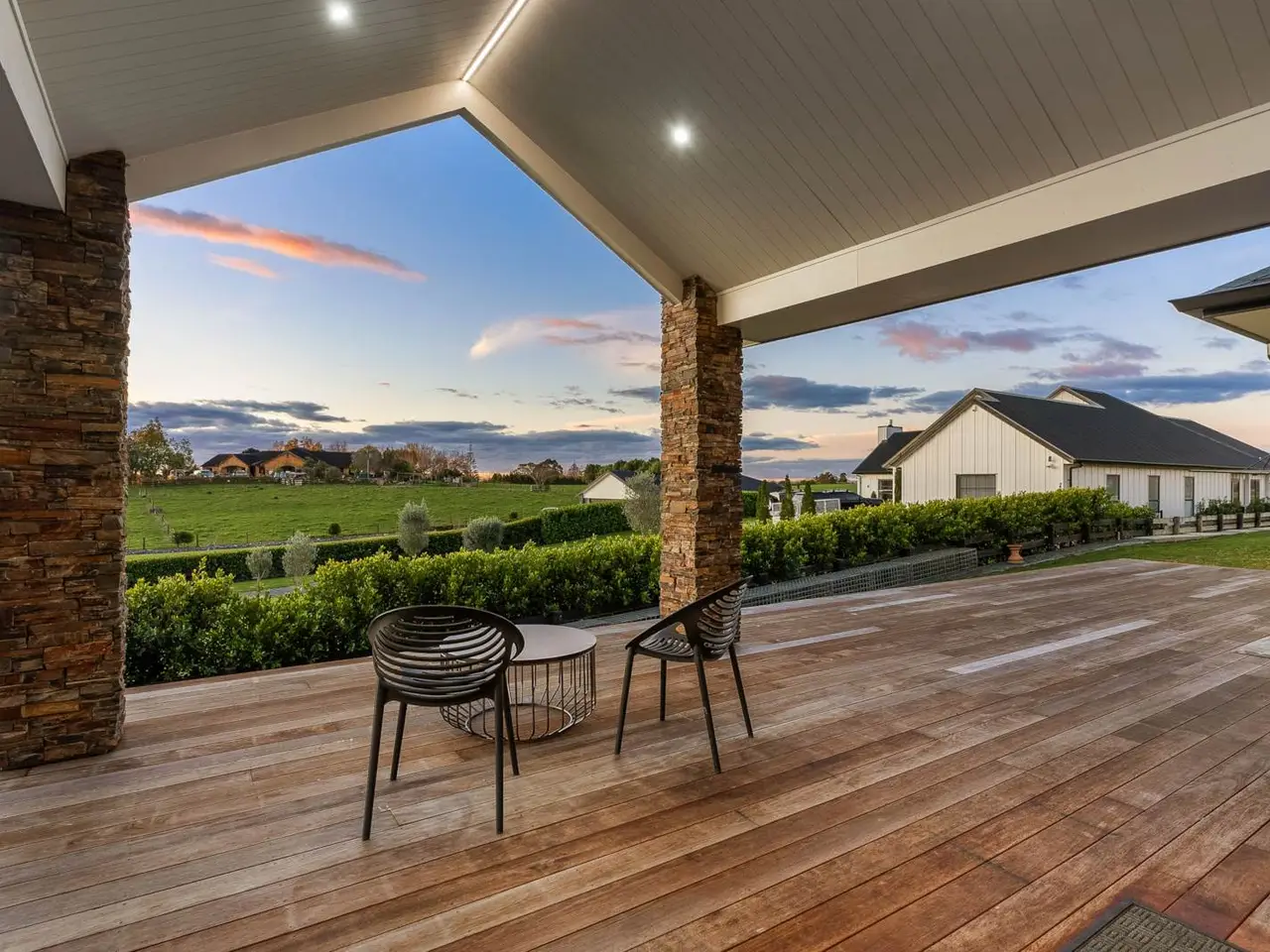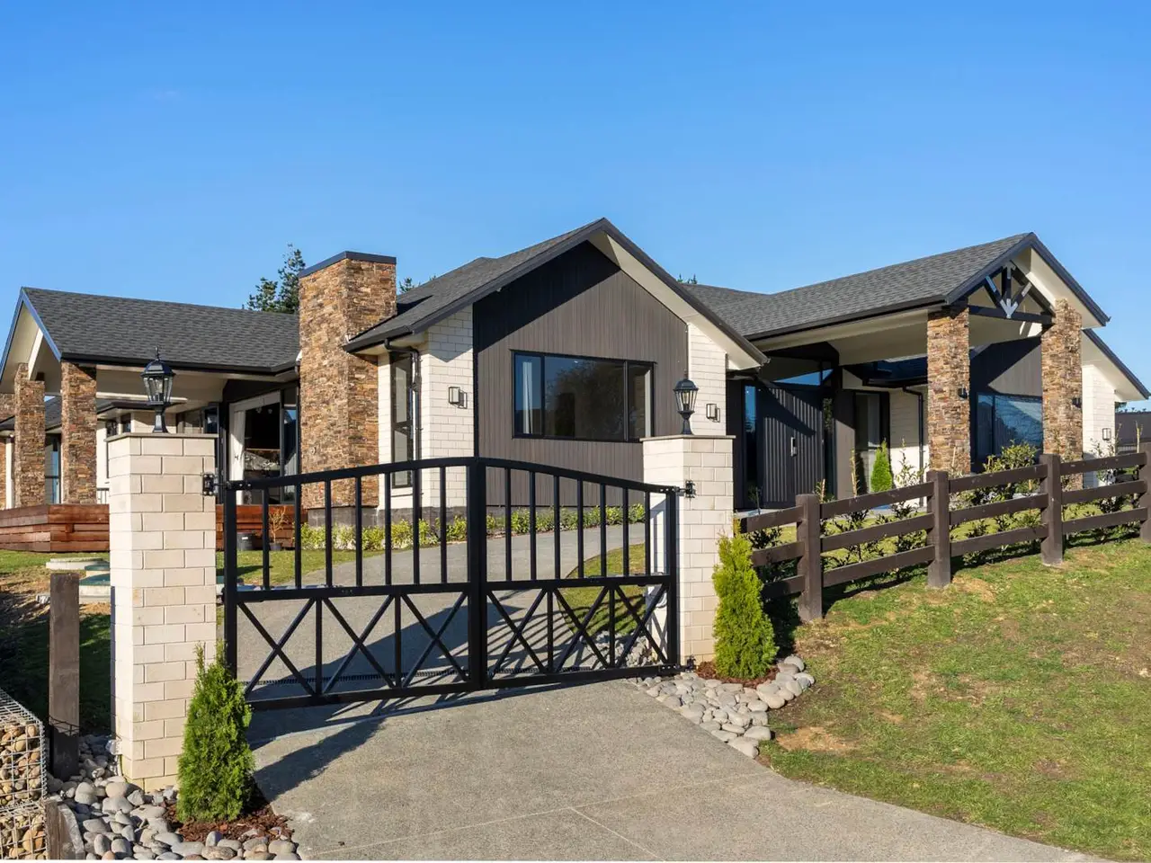 EXTENDED FAMILY, GUESTS OR RENTAL INCOME OPTION Two sets of electric gates and a drive-through portico herald arrival at this excellently designed, recently completed approx 355 square metre (over framing) residence and its secondary approx 65 square metre (over framing) 2 bedroom self-contained unit at the end of the continued concrete driveway. Residing on 2605 square metres with a desirable north-facing aspect, this single level, solid brick with shingle roof home, designed by HQ Designs, was constructed by Mika Builders Limited completed in 2025 (CCC date).Boasting 2.7 ceilings, raked in the expansive open plan living area, 2.4m doors, ducted air conditioning and ceiling fans, fibre optic internet, alarm and camera systems, sensor lighting in the hall and a smart vent system are all included here. Impressive double doors open to a welcoming foyer with resin chandelier and entry into the formal lounge and open plan family living. Both these areas spill out to separate decks and gardens via sliding and stacker doors. An abundance of windows floods the living area with light while a gas fire adds a cosy ambience and comfort. The adjoining dining room flows out to elegant covered outdoor entertaining and far-reaching views from the fabulous Kwila deck with Schist stone pillars. Sleek and shiny, the adjacent show-stopping kitchen demands a standing ovation with exquisite stone benchtops and matching exposed quartz splashback, stone sink, Blum cabinetry, Hansgrohe tapware, Fisher & Paykel 900mm stove with gas burners and butler’s pantry which cleverly incorporates induction hob and adjoining the laundry and opens out to a drying area. Off the hall on the way to the bedrooms, a media room is a welcome addition and the perfect place to relax and unwind. Complete with flame effect electric fireplace and sliding stacker doors to outdoors, the master bedroom boasts walk-in wardrobe, fully tiled double vanity ensuite with bath and separate shower with rain head. Bedrooms two and three both have built-in robes and are joined via a common study nook. They share a fully tiled bathroom. Alongside, the fourth bedroom features walk-in robe and its own fully tiled ensuite with rain head shower. The hallway incorporates generous storage provision. Accessed off the foyer, the multi-functional triple lock up garage has marine carpet, loft storage and separate work from home office space. Outdoors there’s flat lawn area – great play space for kids and plenty of room for the vegie garden and whatever else. Currently attracting $600 of rental income or ideal for extended family living, the ancillary unit with heat pump and HRV, 2.7 metre ceilings and separate power meter, comprises an open plan kitchen with induction cooktop, engineered stone bench and waterfall edge, an adjoining living and dining area, two bedrooms with built-in robes, a bathroom, and lovely rural views. This home is separate and spacious. Conveniently located less than 500 metres from Karaka Primary School and in close proximity to the motorway on-ramp and community services, this home effortlessly combines ultra-stylish family living with luxurious comfort and convenience. Inspection is sure to impress! Near new home completed in 2025 (CCC date)Stunning approx 355m2 (over framing) residence. Second approx 65m2 2 bedroom unit (over framing)2605m2 property. Single level home with north-facing aspect2 sets of entry gates & portico. Split driveway to ancillary unit. Impressive 2.7m ceilings, 2.4m tall doors. Sensor hall lighting. Ducted air conditioning + ceiling fans. Fibre optic internet. Alarm & camera systems. Smart vent system. Abundant storage provision. Feature lighting. Imposing double door entry to tiled foyer with resin chandelier. Formal lounge, sliding stacker doors to private deck. Media room/rumpus. Sunlit open-plan family living/dining. Sliding stackers to north deck. Scenic large covered Kwila decked. Elegant entertaining & leisure. Breathtaking large kitchen. State of the Art design & equipment+ matching butler’s pantry incorporating laundry. Outdoor access. Chic master bedroom, deluxe ensuite, walk-in robe, garden access. Bedrooms 2 & 3 built-in robes, shared study area & tiled bathroom. Bedroom 4 with walk-in robe & fully tiled ensuite. Linen presses. Triple lock-up garage. Marine carpet. Loft storage. Home office space. Ancillary unit with separate power meter. HRV & heat pump. Open plan kitchen, living & dining area. 2 bedrooms + built-in robes. Expansive grassy play area. 2 x 25,000 concrete tanks & filtration. Less than 500m to Karaka Primary School & ACG Strathallan bus routes8.5kms to Karaka shops & community facilities. 10kms to Pukekohe Township5.5kms to north & south motorway on-ramp. 33kms to Auckland Airport Auction: 177 King Street, Pukekohe (Branch Office) on Thursday 11 September 2025 at 2:00PM (unless sold prior)