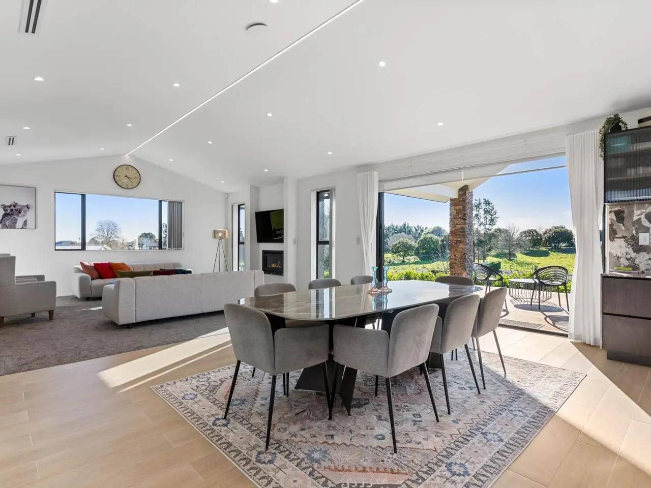 Sunlit open-plan family living/dining