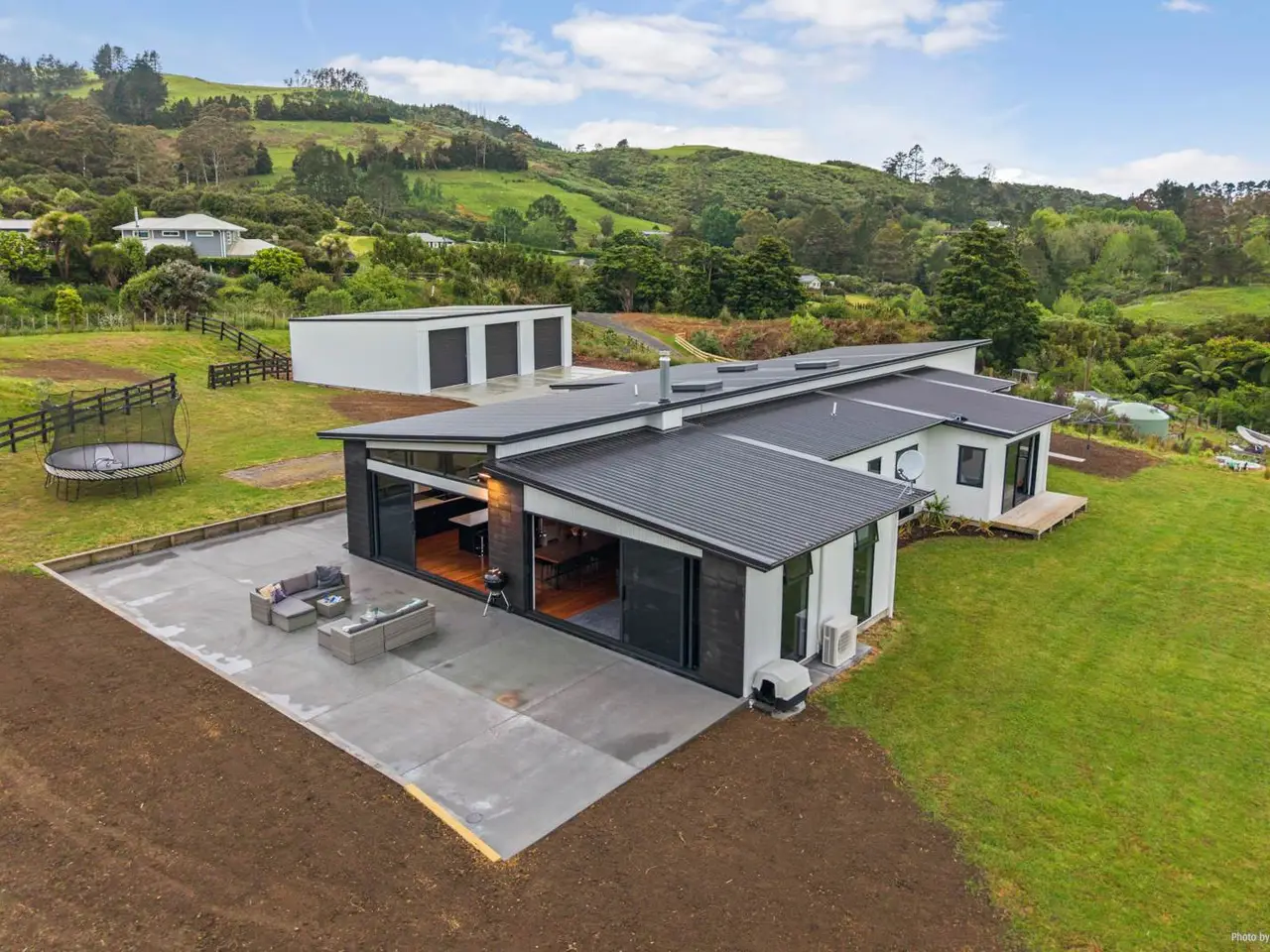 Perfectly positioned in the welcoming rural community of Bombay, this striking residence offers a secluded feel being set back from the road yet remains just minutes from the motorway. Combining modern architecture with the serenity of country living, it’s a property that balances space, style, and scale in perfect harmony.Only three years young, the home’s bold design is a blend of honed block, vertical timber weatherboards, and sleek mono-pitch rooflines. Spanning an impressive 316sqm (approx.) of single-level living. The result is the perfect fusion of contemporary design and rural tranquillity.Set on 11.3812 hectares (approx. 28 acres) of beautiful Bombay countryside, the property encompasses rolling grazing land, lush native bush, and a bubbling stream along the boundary. There are also level areas ideal for creating an arena, should you wish. The abundant birdlife and wildlife create an ever-changing natural backdrop. From pheasants strolling the lawn, ducks, geese, and peacocks roaming the paddocks, to the occasional deer sighting. Enjoy swimming in the water hole, fishing for eels, or catching freshwater crawlies, a lifestyle that feels worlds away, yet is just minutes from the motorway. It’s no wonder the current owners say leaving this paradise is “not a decision made lightly.”Inside, soaring 3.8m ceilings and skylights through the hallway create a real sense of “wow.” The expansive open-plan hub features rich hardwood Kwila flooring, echoed in the bespoke barn door, a stylish nod to the home’s rural charm. A wood fire with wetback and a heat pump ensure year-round comfort, while huge stacking sliders open onto a large patio, extending your living space outdoors.The sleek monochromatic kitchen is the heart of the home, featuring quality appliances, a generous island bench, and a scullery for everyday convenience.The thoughtfully designed floor plan ensures both connection and privacy. Three large bedrooms open off a central family room, the perfect kids’ or teenagers’ wing. Two additional bedrooms include the luxurious master suite, complete with a walk-in wardrobe and a beautifully tiled ensuite. The family bathroom, featuring a freestanding bath, invites you to soak in peace while enjoying stunning rural views.Storage has been optimised throughout the home, right down the hallway, ensuring every space is both stylish and practical. Two powder rooms (including one conveniently located off the garage for outdoor or gym use) and a separate laundry further enhance everyday functionality.Outdoors, the patio area provides an inviting spot for alfresco dining and entertaining with ample room to add a pool, outdoor fireplace, or landscaped entertaining zones to make the most of the stunning setting. The large surrounding concrete area offers abundant parking for guests and family alike.For those needing extra space, the property also boasts a 150sqm (approx.) steel-frame shed with high-stud ceilings and three large doors. Ideal for storing vehicles, farm gear, or creating the ultimate workshop.Here you can enjoy the best of both worlds, peaceful, private rural living with the convenience of motorway access just 5.8km away, and the amenities of the Bombay Service Centre close at hand.If you’ve been searching for space, quality, and a home that truly embodies modern country living with sizeable land holding, this remarkable property deserves your attention. Auction: 177 King Street, Pukekohe (Branch Office) on Thursday 11 December 2025 at 2:00PM (unless sold prior)