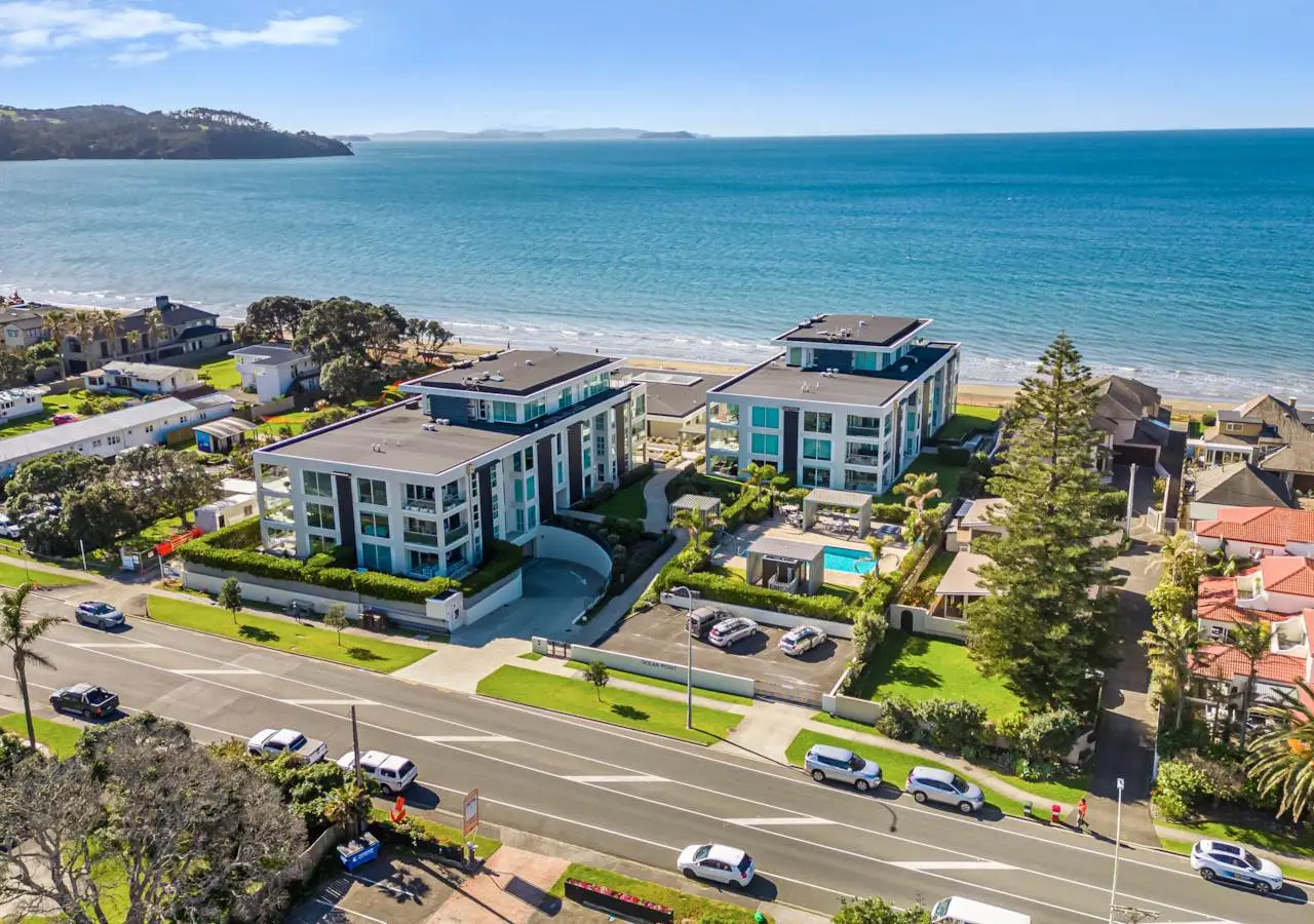 Rarely Available, Always Desired! Experience the ultimate in luxury and lifestyle at Ocean Point - a boutique, modern complex perfectly positioned on the golden sands of Orewa Beach. This stunning ground floor apartment offers the generous proportions of a standalone home, all just steps from the ocean. Thoughtfully designed for relaxed, upscale living, the apartment features a gourmet open-plan kitchen complete with European appliances and a butler’s pantry. The expansive living area flows effortlessly through floor-to-ceiling glass sliders onto a large, covered deck - ideal for entertaining or simply soaking in the sea breeze. With two spacious bedrooms, a dedicated study, and two stylish bathrooms, there’s plenty of room to unwind and enjoy. The home is equipped with all the modern comforts you expect - ducted air conditioning, double glazing, and top-tier finishes throughout. Your beachside lifestyle is enhanced by premium amenities including two secure basement carparks, a storage locker, and access to a sparkling in-ground pool and spa. Whether it’s a morning swim, a walk along the beach, or a sunset drink on your deck, every day feels like a holiday. Ocean Point is an exclusive community of just 28 apartments, offering a secure, low-maintenance haven for retirees, professionals, or those seeking a luxurious lock-up-and-leave holiday home. Just a short, flat stroll to Orewa’s vibrant town centre with its cafes, shops, and local amenities - and within easy reach of Auckland - this is beachside living at its best.Don’t miss your chance to secure this exceptional apartment. Embrace the luxury, live the lifestyle - and holiday every day.