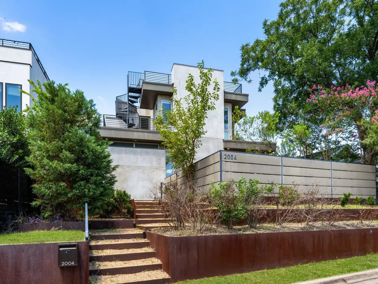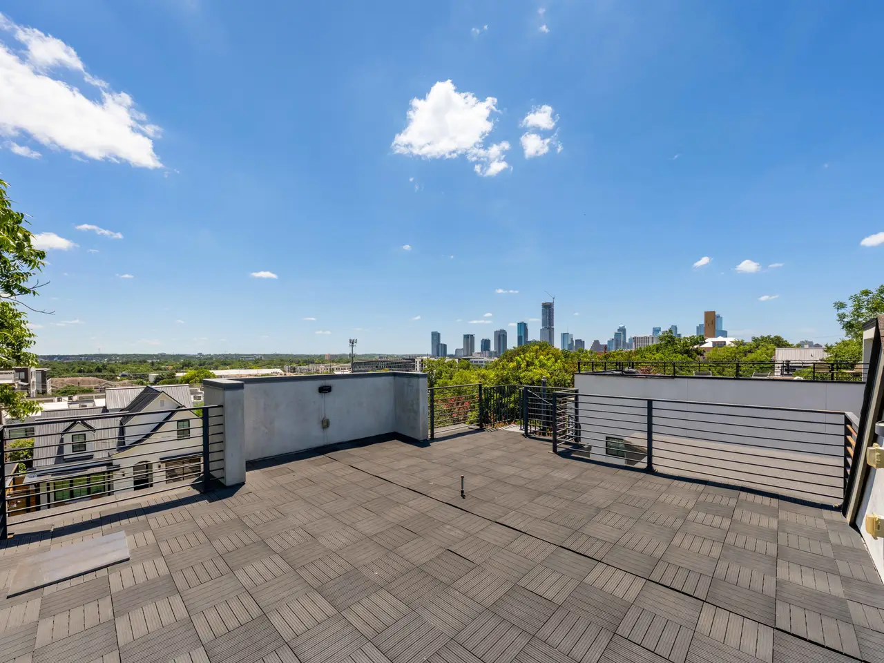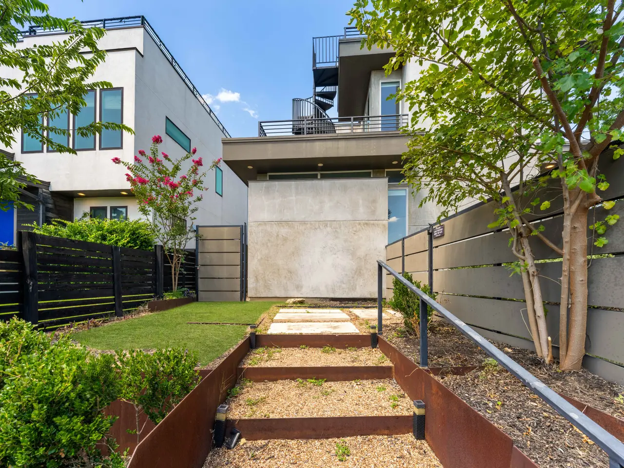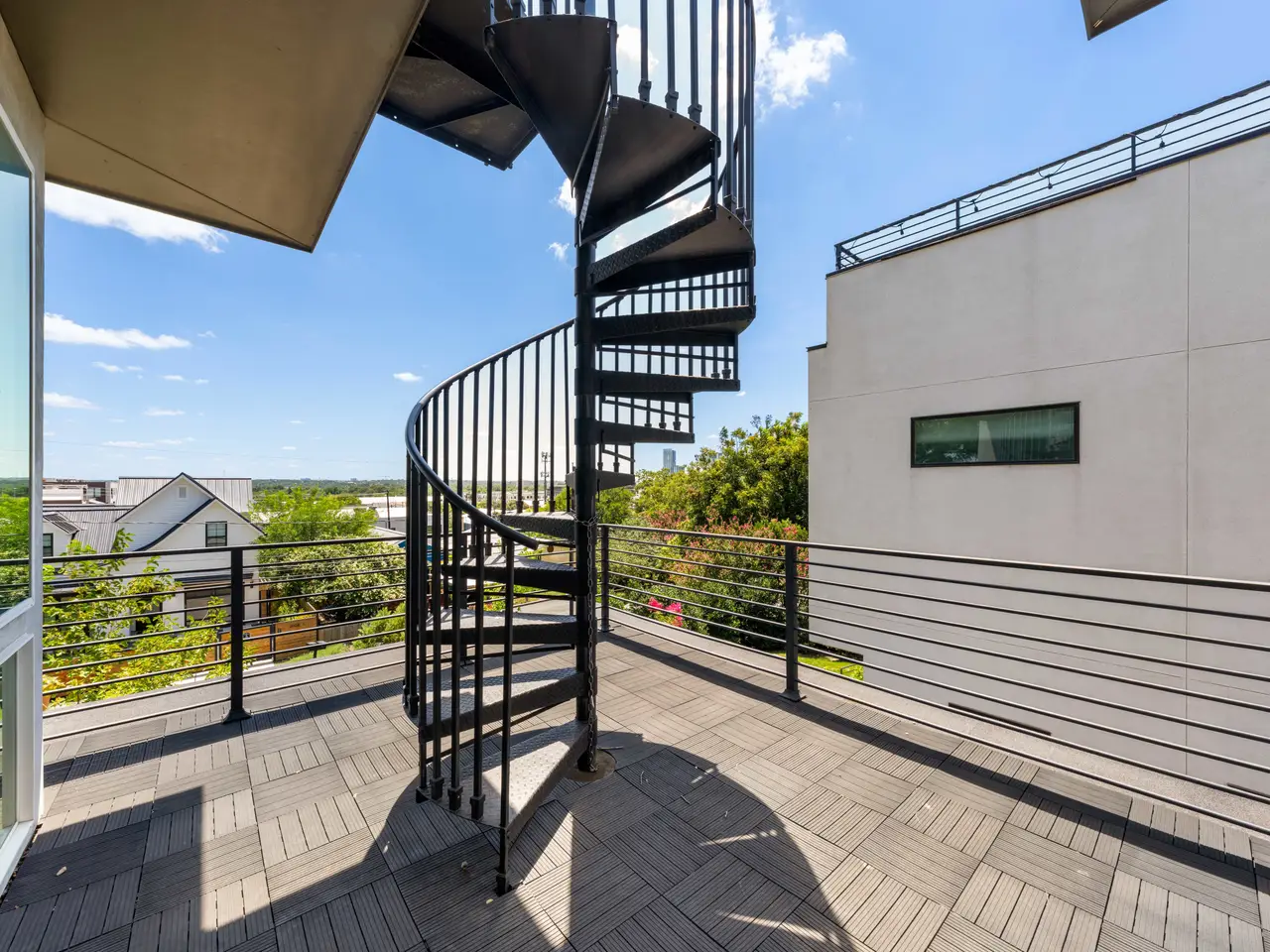 Modern luxury in the heart of East Austin! This 3 bed, 2.5 bath architectural gem offers 2,096 square feet of stylish living space, high ceilings, floor to ceiling windows, and an open-concept design. The gourmet kitchen features a waterfall island, custom cabinetry and premium appliances. A designer glass tile backsplash and sophisticated lighting solutions create an atmosphere of refined modernity, while the adjoining dining area, crowned with a crystal pendant chandelier, offers the perfect setting for elegant entertaining. The primary suite stuns with a spa-style wet room, marble double vanity, and oversized walk-in closet. Upstairs there are 2 bedrooms with views of downtown, a full bathroom, plus additional flex area that can be used as office space or additional living area. This home has multiple outdoor living spaces where you can unwind privately in the lush courtyard, under the covered patios, or take the spiral staircase up to the third story terrace for the beautiful panoramic views of the Austin skyline. The detached climate-controlled garage includes a full guest suite above (an additional 711 sqft) that is perfect for rental income, multigenerational living, or a private home office. This vibrant East Austin address sits in an educational hub, just moments away from the historical Houston-Tilloston University and minutes from the University of Texas at Austin campus. Walkable to highly rated shops, restaurants, coffee, and parks. A rare blend of elegance, flexibility, and location - don't miss this one! Property sold “As-is.” Buyer and/or buyer’s agent responsible for verifying all pertinent information deemed relevant by the prospective buyer, including but not limited to square footage, acreage, utilities, taxes, zoning, permitting, condition, school zones, HOAs, etc.