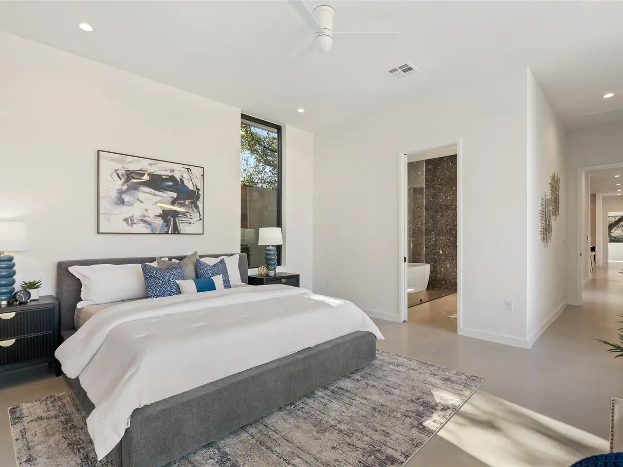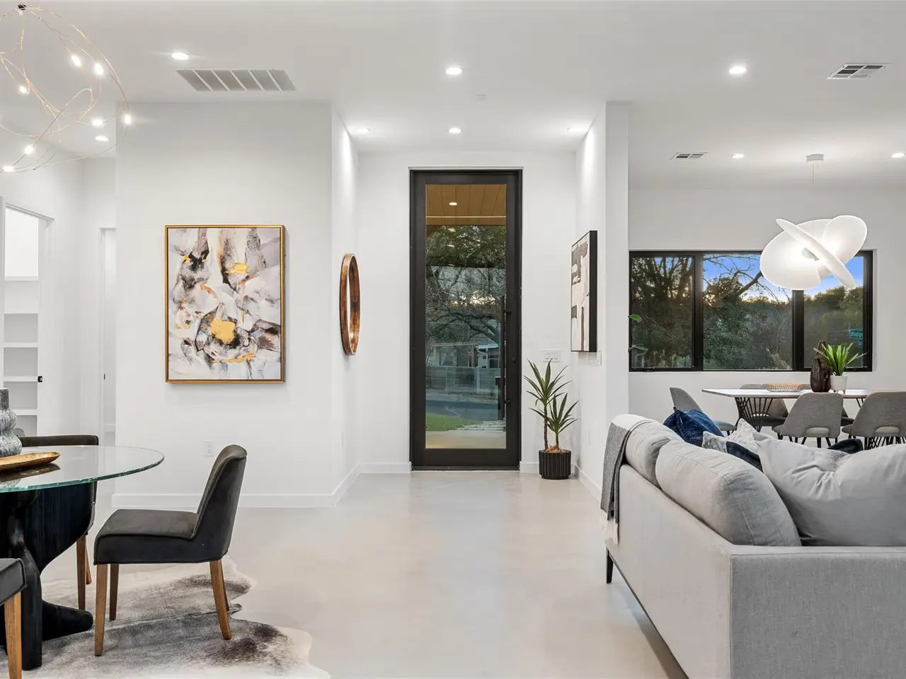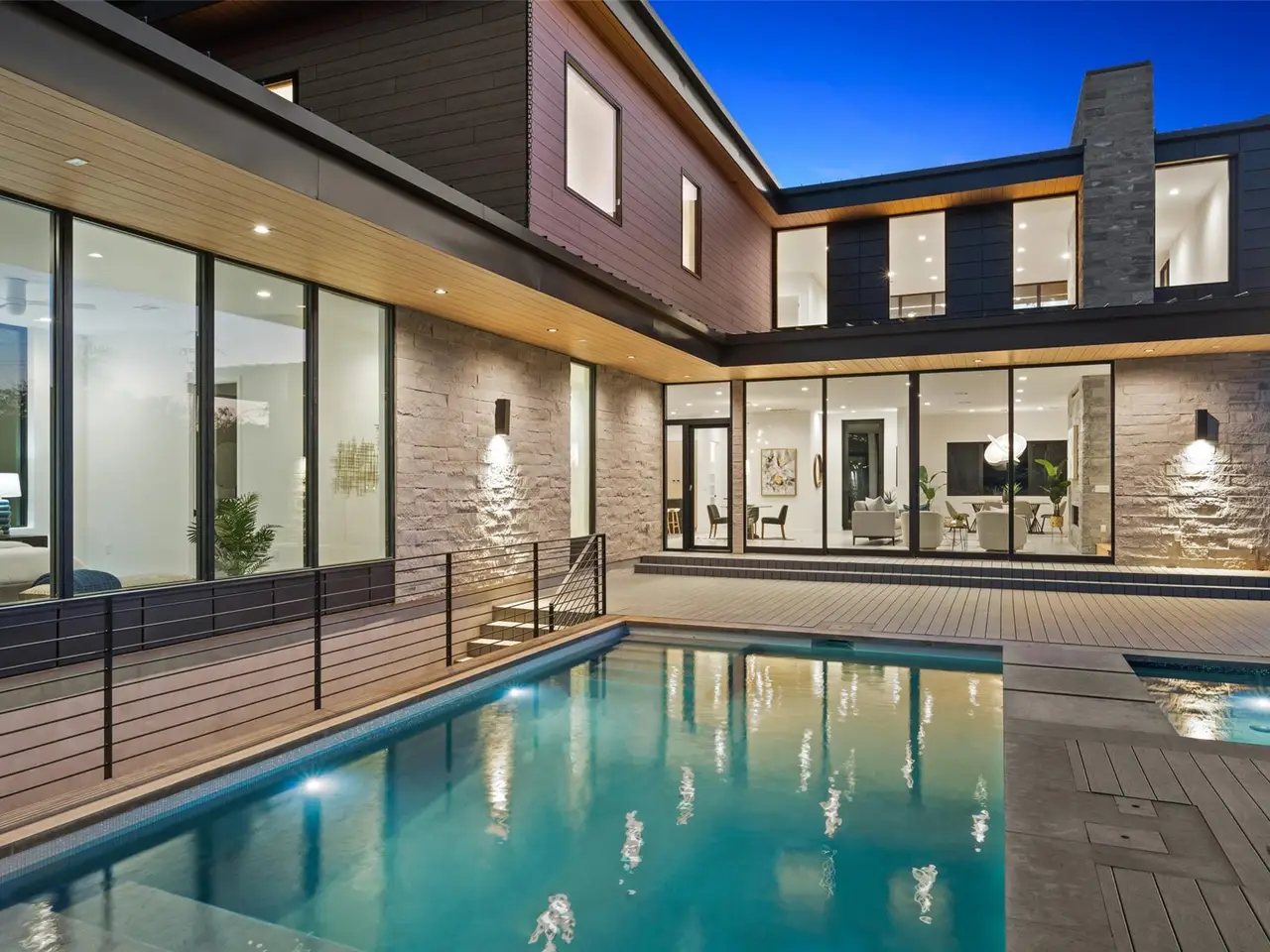 Discover a stunning modern masterpiece in the heart of Barton Hills. Located on a corner lot, this meticulously designed home boasts four spacious bedrooms, a dedicated office, and expansive living spaces tailored for relaxation and entertaining. Built in 2022 by Delve Residential (formerly Heartwood Real Estate Group), this stunning home seamlessly blends luxury and functionality. The exterior showcases a mix of high-end materials, including metal, stucco, and limestone, offering a modern yet timeless aesthetic. Inside, you'll find an impeccable combination of concrete and European Oak wood flooring that extends throughout the home, complemented by sleek granite and Caesarstone countertops. The gourmet kitchen is a chef's dream, equipped with top-of-the-line Sub-Zero, Wolf, Cove, and Thermador appliances, ensuring both style and performance. Flooded with natural light from floor-to-ceiling windows, the open floor plan is an entertainer's dream, seamlessly blending indoor and outdoor living with views of pool and private backyard. Upstairs, a massive den offers a versatile retreat, perfect for a media room, playroom, or secondary living space. Every detail, from the detached two-car garage to the carefully curated finishes, has been crafted with modern living in mind. Located minutes from Downtown, Barton Springs, Zilker Park, and Austin's annual ACL Festival, this home epitomizes luxury living in one of the city's most vibrant neighborhoods.