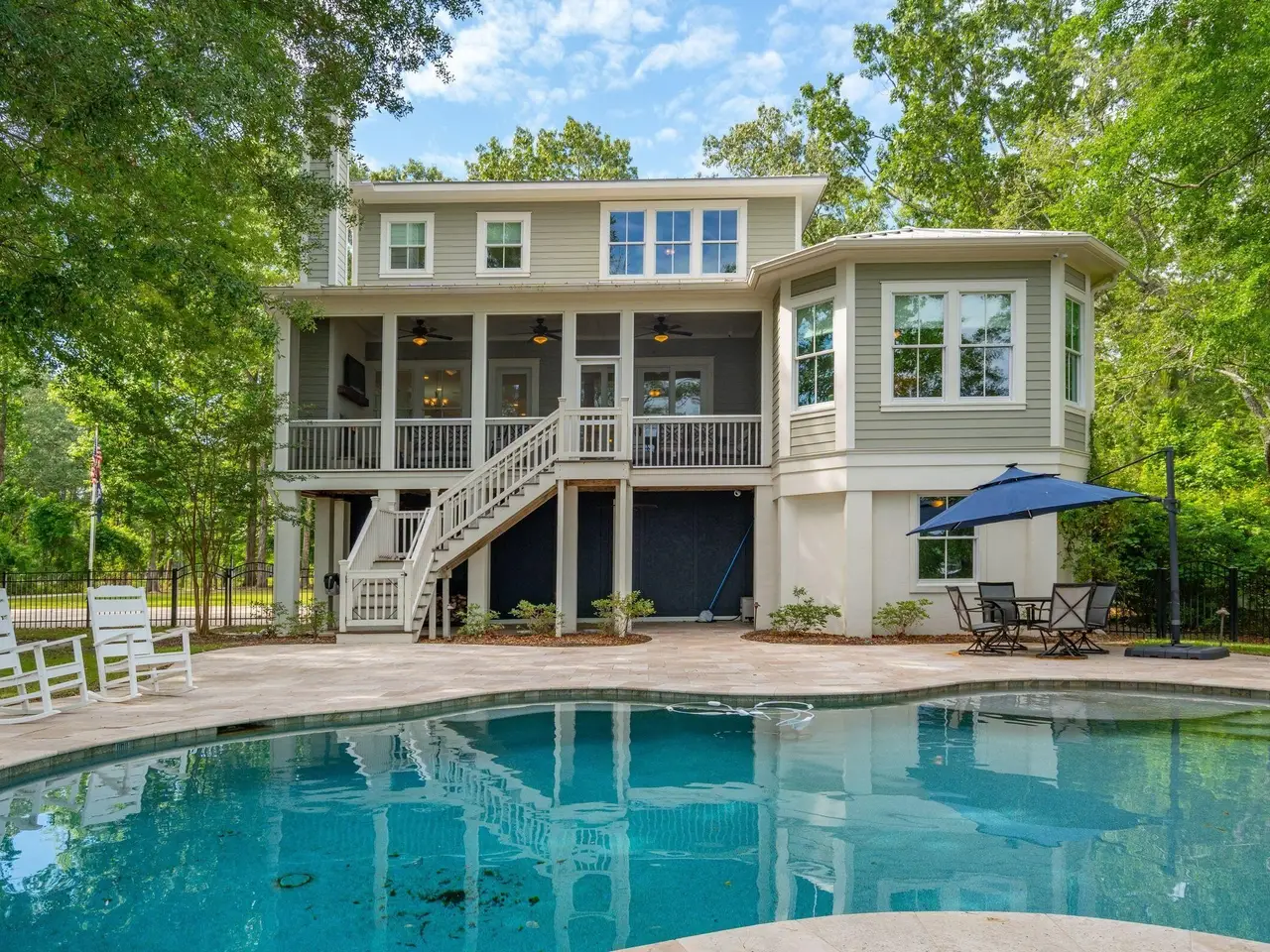 Breathtaking Marsh Views on the Wando River - Private 3-Acre Estate in Gated Pepper Plantation. Enjoy the ultimate Lowcountry lifestyle on 3 private acres overlooking the Wando River in the gated community of Pepper Plantation. Tucked at the end of a quiet cul-de-sac, this 5-bedroom, 5-bath custom-built home delivers elegance, privacy, and sweeping marsh-to-river views. The elevated, three-story home is designed for easy living and effortless entertaining. As you approach, a beautifully landscaped yard and wooded entry offer unmatched seclusion. The solid mahogany front door opens into a sun-drenched interior featuring white oak hardwood floors, high ceilings, and a seamless flow of space. A formal dining room and study flank the foyer, while the expansive great room and chef's kitchen span the rear of the home, capturing spectacular views. The kitchen is outfitted with top-tier appliances including a 48" Sub-Zero refrigerator, Wolf double ovens and gas cooktop, farmhouse sink, and granite countertops. A generous breakfast nook is wrapped in windows and overlooks the water, the perfect spot for family meals or morning coffee. The main-level primary suite is a private sanctuary with panoramic views of the Wando River, dual walk-in closets, and a spa-inspired bathroom with double vanities, walk-in shower with rain head, and soaking tub. An additional guest suite and full bath are also located on the ground floor. Upstairs are three additional bedrooms, one with an en suite bath, and two sharing a Jack & Jill, plus a large bonus room ideal for a media room, playroom, office or sixth bedroom. The ground level features a climate-controlled bonus space with a full bath, ideal for a home gym, artist's studio, or guest suite. The 3-car garage offers epoxy-coated floors, a workshop area, and ample storage. Step outside to your own private oasis. The screened-in porch with wood-burning fireplace opens to a spacious backyard with a travertine-surround saltwater pool, all framed by moss-draped oaks and uninterrupted marsh views. Enjoy outdoor dining, evening sunsets, or weekend gatherings in this truly exceptional setting. Additional features include: - 3-stop elevator - Whole-home generator - Standing seam metal roof - Impact-rated windows and doors - Fenced backyard with direct bathroom access from pool area Pepper Plantation is an exclusive enclave of custom homes offering privacy, natural beauty, and unique amenities. Residents enjoy an equestrian-style setting with a training track, riding trails, and a picturesque pavilion overlooking a freshwater lake, perfect for weddings, events, or community gatherings. Located just 12.5 miles from Isle of Palms beach and 15 miles from downtown Charleston, this community offers the perfect blend of quiet Lowcountry living with Charleston convenience.