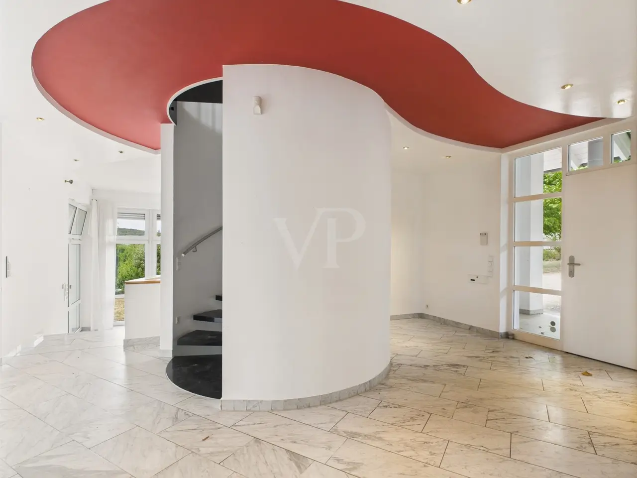 A home with a panoramic view over Bad Kissingen. A place to arrive. To breathe deeply. To put down roots. In a quiet, peripheral location with a stunning view over Bad Kissingen, this special property presents itself as an ideal home for families – with space for children, grandparents, guests, and for working from home. The house was custom-designed by an architect, lived in by the owner, and designed with a keen sense of functionality and comfort. The layout is thought through down to the last detail, combining spacious rooms with a harmonious flow. Spread over three levels, this house unfolds full of possibilities. The heart of the home is the open-plan living and dining area with a conservatory and fireplace – perfect for evenings spent together, perhaps with a view of the sunset. The kitchen, with its adjoining cold storage room and dining area, is perfect for a lively family life. The attic features the master bedroom, three additional bedrooms or children's rooms, and two bathrooms – plenty of space for all ages. All rooms – except for the children's bathroom – have a small balcony overlooking the natural surroundings. The basement offers additional possibilities: a separate home office, a studio, a guest or grandparents' area. A fitness room with a special flooring that provides elasticity, a wine cellar, and ample storage space. Here, there's room for ideas and individual lifestyle concepts. Outside, a lovingly landscaped garden with its own pond invites you to linger – a paradise for children and an oasis of peace for adults. Particularly charming: the "apple tree parasol," grown for relaxing breaks in the shade. Several terraces offer sun or shade at any time of day – as you wish. Here, life can be enjoyed in all seasons. The offer is rounded out by a large garage with two parking spaces and ample space for bicycles, garden tools, and more. This house isn't just for living – it's made for living. We would be happy to tell you more about this exceptional property in person.