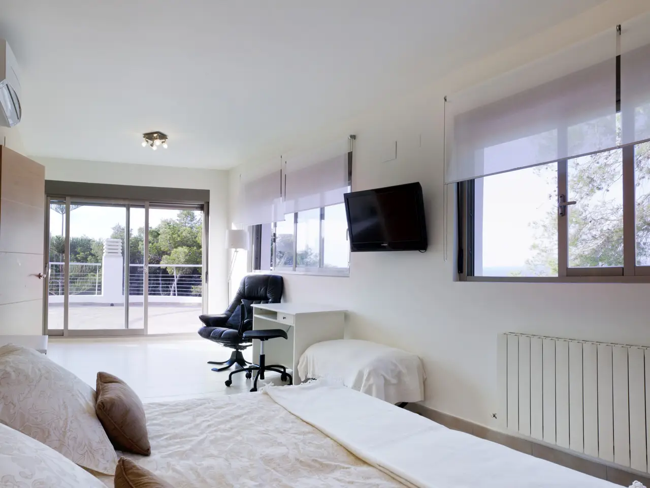 This beautiful villa is located in the exclusive residential area of Balcón al Mar in Jávea, set on a 955m2 plot. The property its distributed over two floors plus a semi-basement, as well as stunning sea views. The main floor consists of a spacious and bright living-dining room with a fireplace and access to a sunny terrace, from which you can enjoy magnificent sea views. On this floor, there is also an office-style kitchen, fully equipped with high-end appliances, as well as two bedrooms, one of them with an en-suite bathroom, and a guest toilet. The upper floor houses two more spacious bedrooms, two full bathrooms, and a lounge from which you can access a terrace with panoramic sea views. In the semi-basement, there is a large bedroom with a full bathroom, a storage room, and a storeroom. From this floor, there is direct access to an exceptional terrace with a heated swimming pool. It is worth mentioning that the villa was completely renovated in 2011, using top-quality materials, and features radiator heating and air conditioning with a heat pump.