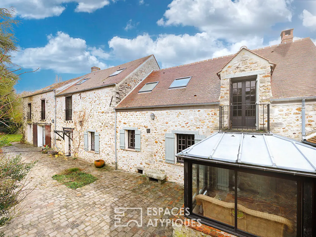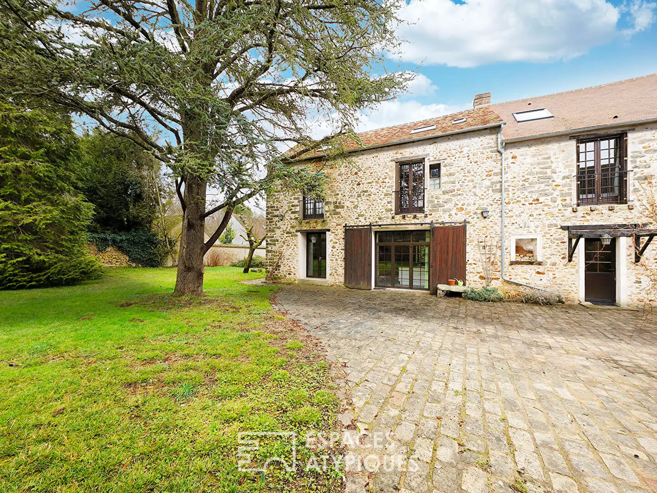 10 minutes from BARBIZON, in the heart of a peaceful village, this old farmhouse has been renovated into a charming family residence. The property offers a 387m2 house and its barn, all built on more than 1300m2 of land. The house includes an entrance which serves on the one hand the large living room of 63m2 and its majestic fireplace with access to a veranda and in its extension, a workshop. On the other hand there is a small living room which leads to the kitchen / dining room of 67m2. These living spaces offer access to the courtyard and the garden. A storeroom, a hallway for the laundry room and the boiler room as well as a separate toilet, complete the ground floor. The first floor, accessible by two staircases, offers a vast mezzanine of 26m2 which overlooks the large living room. This place can be used as a play area, office or extra bed. A landing serving as an office and a corridor distribute the sleeping area with bedrooms with generous volumes: a master suite with a bedroom whose dressing room and bathroom with a toilet are on the upper level, a second bedroom with its shower room and toilet, a third bedroom to refresh to taste and on the second floor the fourth and fifth bedrooms, separated from a landing room and with a bathroom and toilet. The exterior suggests a beautiful paved courtyard to allow parking and a garden with trees. The property is embellished with a second building of 160m2 of ground area, opening up storage or development prospects with a barn of 56m2 and 7m high, a stable and a garage. ENERGY CLASS: D / CLIMATE CLASS D Estimated average amount of annual energy expenditure for standard use, established from energy prices for the years 2021, 2022, 2023: between EUR6,870 and EUR9,360 Contact: Iza GABOUA: 06 66 90 92 59 RSAC: 831 884 689 MELUN REF. SM1094 Additional information * 10 rooms * 5 bedrooms * 2 bathrooms * 1 bathroom * 2 floors in the building * Parking : 4 parking spaces * Property tax : 1 900 € Energy Performance Certificate Primary energy consumption d : 217 kWh/m2.an High performance housing