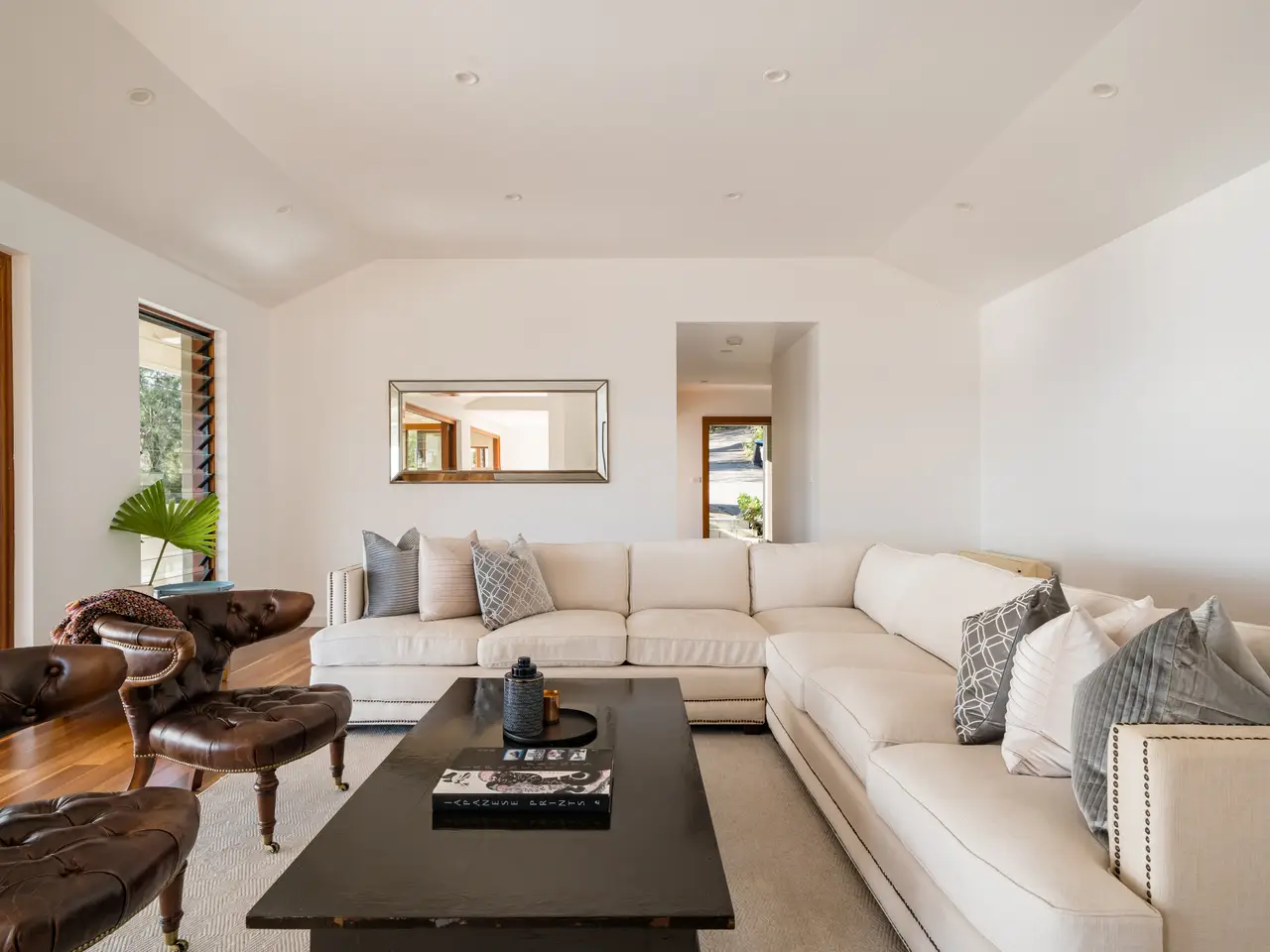Privately nestled within a full acre on Bayview's most prestigious street, this contemporary entertainer boasts extraordinary, due north vistas straight up Pittwater to Lion Island and the Central Coast. The home spans three light-soaked levels with ample space for the family to spread out, while inviting the outdoors in with all main living zones merging with an enormous sunlit terrace and sparkling saltwater pool. Well designed and finished with quality appointments throughout, the expansive layout provides maximum privacy and flexibility for parents, children and weekend guests. - Sensational position offering 180-degree north views across Pittwater - Seamless connection to expansive, sunlit terraces + saltwater pool - Gorgeous hardwood floors and bifolds across all main living zones - Tri-level design; warm and sunny in winter, cool and breezy in summer - Exceptional privacy and a versatile layout; bedrooms on each level - Elegant kitchen includes both walk-in pantry and full butler's pantry - Master ensuite, fully equipped home theatre, wood burning fireplace - Guest powder room, air con, double garage with internal access