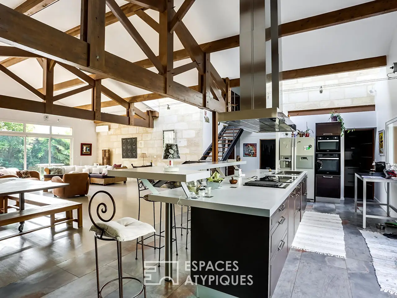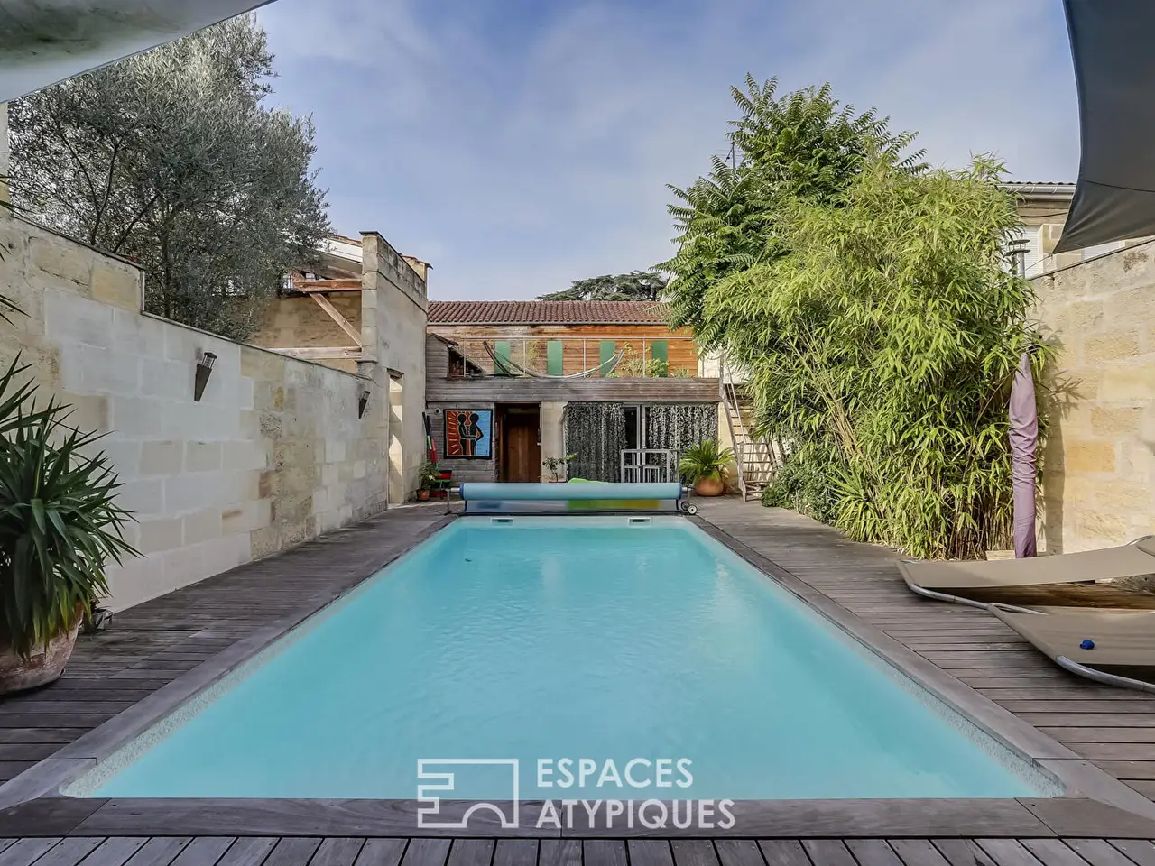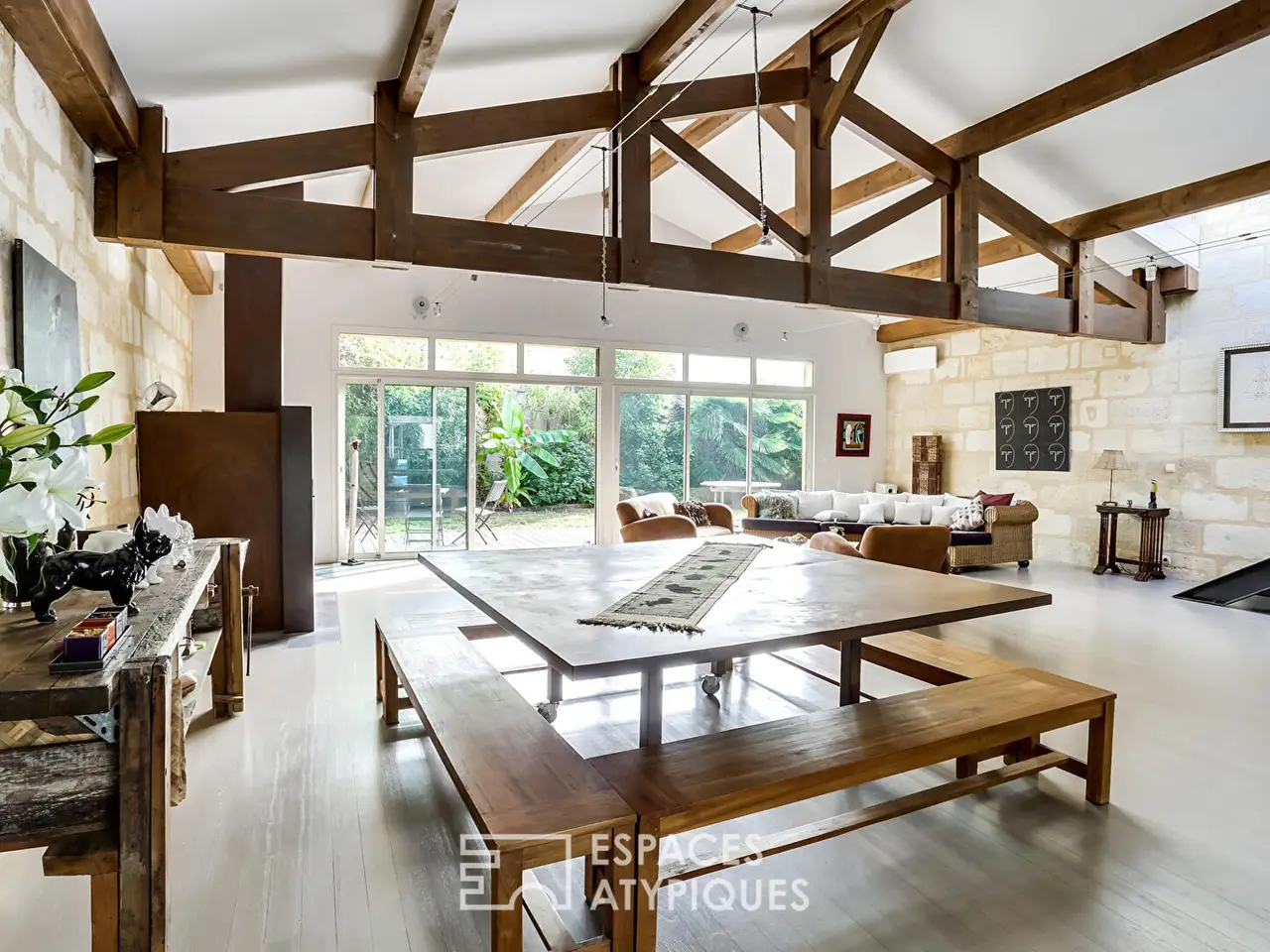 Nestled in a discreet cul-de-sac, close to the Bagatelle Hospital, this 360 sqm loft house offers an exceptional living environment, combining space, comfort and privacy. From the entrance, an elegant paved courtyard leads to a large double garage and the main door of the house. The living room, impressive with its 108 sqm, seduces with its generous volumes and its original wooden frame. This space bathed in light accommodates a warm living room with fireplace, a convivial dining room and a fully equipped American kitchen. On each side, the house opens to the East onto a landscaped garden of 90 sqm and to the West onto a wooden terrace with a heated salt pool of 9×4 m, a solarium and a sauna, inviting you to relax in all seasons. On the ground floor, the master suite benefits from a custom-made dressing room and an elegant bathroom with bathtub and shower, all opening onto a private terrace. An independent studio, perfect for entertaining or teleworking, completes this level, with a wine cellar, a cinema room and a laundry room. Upstairs, a beautiful mezzanine offers an office space, while three bedrooms, each with their own shower room and private balcony, guarantee comfort and privacy for the whole family. Just 10 minutes from Gare Saint-Jean, close to the shops of Begles and Bordeaux, a rare address for a privileged family life, between elegance and serenity. ENERGY CLASS: C / CLIMATE CLASS: C. Estimated average amount of annual energy expenditure for standard use, based on energy prices for the year 2023: between EUR4,190 and EUR5,730 Additional information * 8 rooms * 5 bedrooms * 1 bathroom * 4 shower rooms * 1 floor in the building * Outdoor space : 700 SQM * Parking : 2 parking spaces * Property tax : 6 000 € Energy Performance Certificate Primary energy consumption c : 174 kWh/m2.an High performance housing