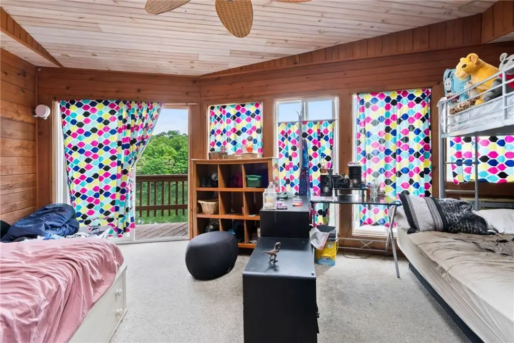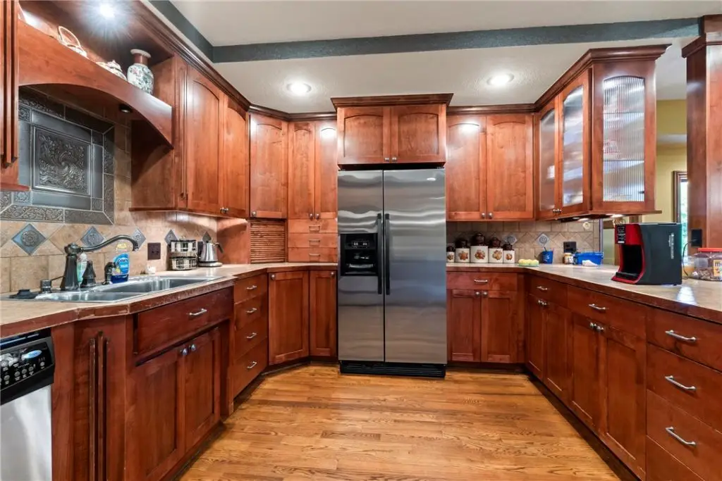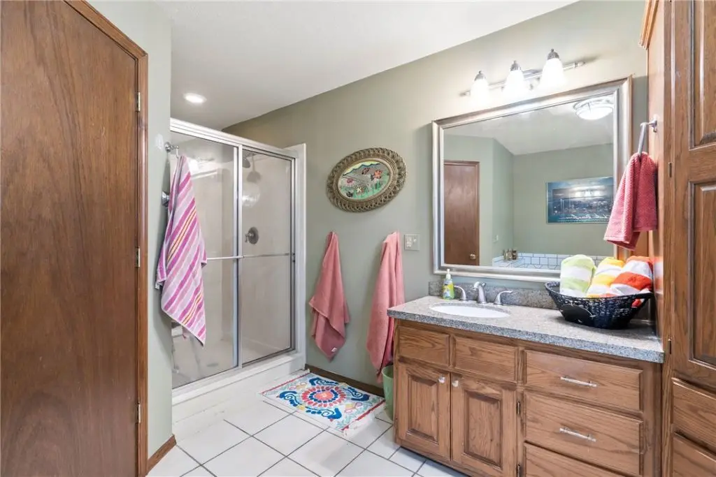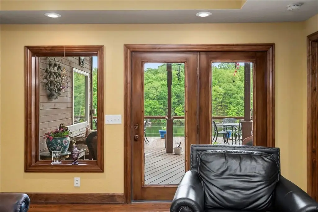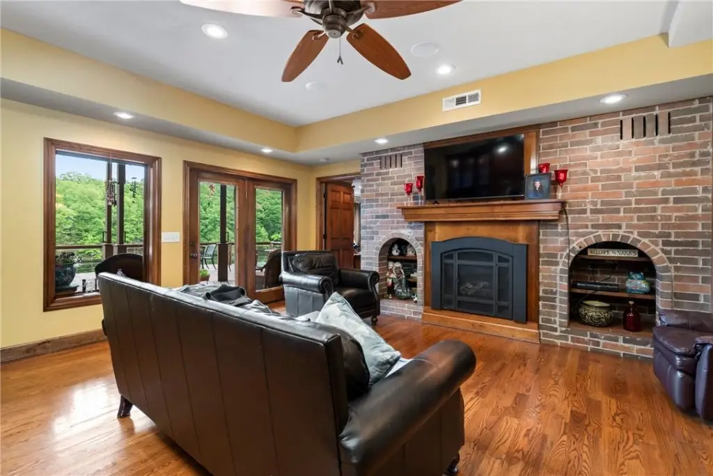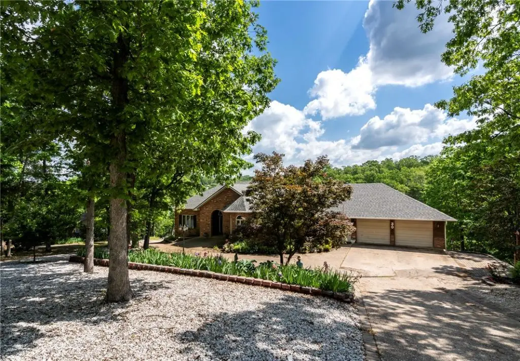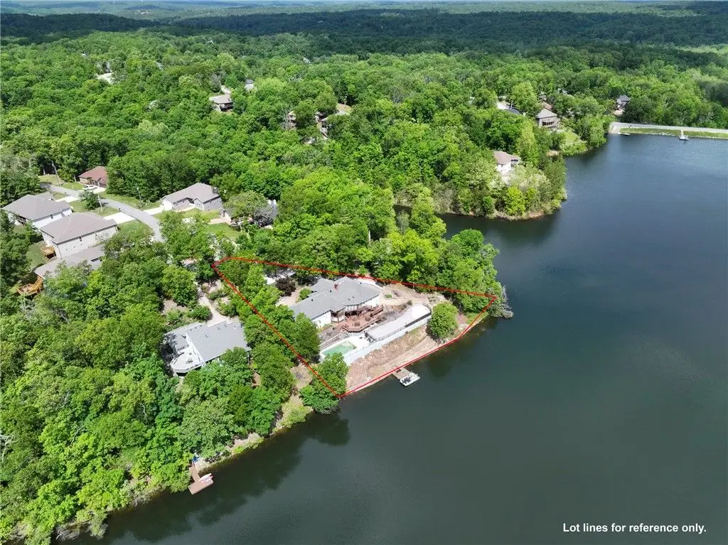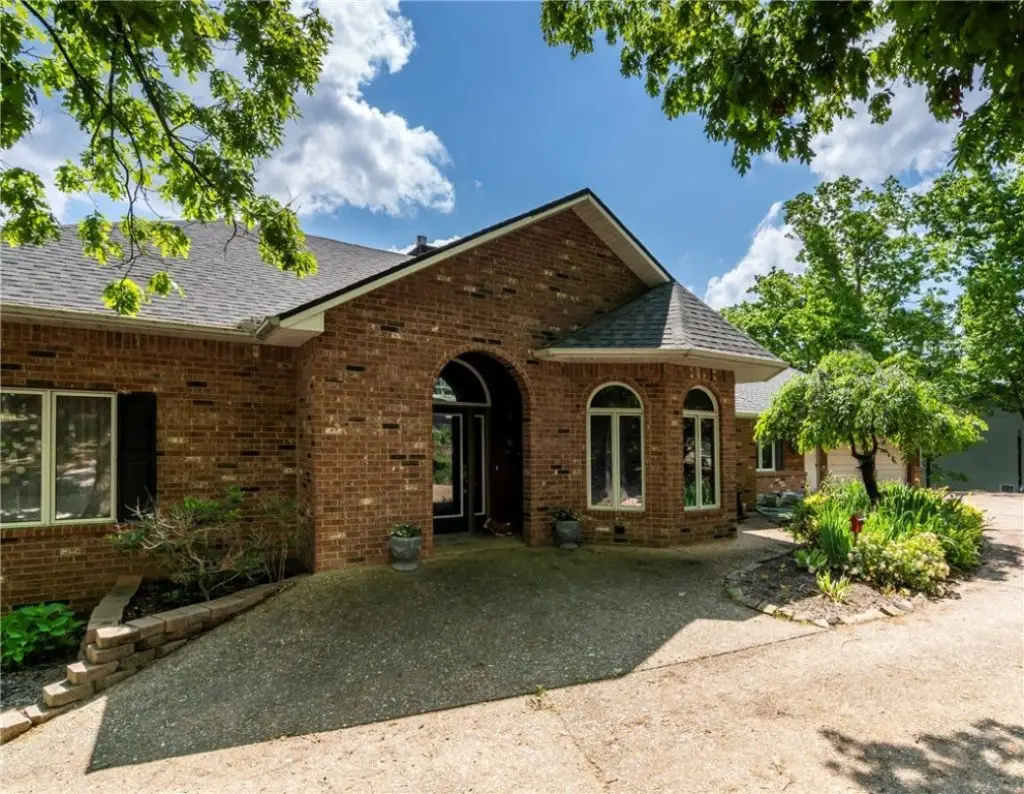 Beautiful lakefront home w/private dock access, fenced in-ground pool & approx 3,866 SF of living space! Located on a cul-de-sac in Bella Vista, this 4BD/3.5BA home offers a full kitchen & living area on both levels, ideal for multi-gen living or entertaining. Master suite features jetted tub & walk-in shower. All upstairs BRs have walk-in closets. Main floor is handicap accessible. Includes wet bar, sunroom w/ skylights, hardwood/tile/carpet flooring, gas & pellet fireplaces, attic storage, built-ins, & washer/dryer hookups up & down. Convection gas range upstairs, electric range downstairs. 2-car attached garage + golf cart garage. Beautiful landscaping, 2 rear decks (wood & flagstone) overlooking Lake Brittany.