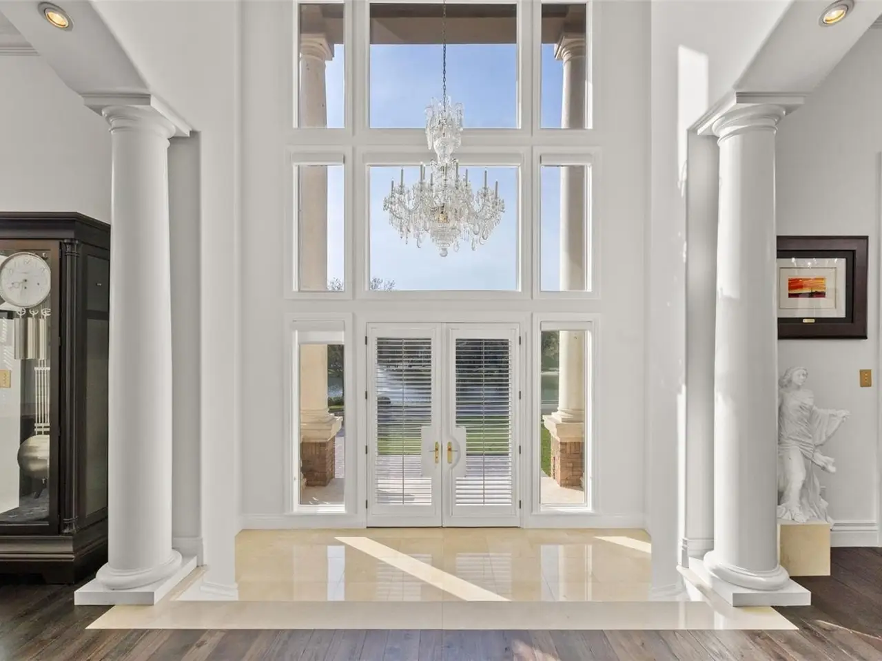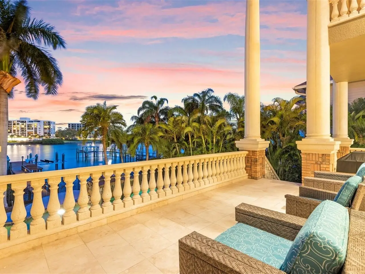 Experience an extraordinary expression of island elegance in this exquisite waterfront residence, nestled within Pinellas County’s most exclusive gated community. Home to fewer than 30 fortunate residents, Belleview Island offers a serene escape that combines unparalleled security, privacy, and breathtaking water views. A short stroll away lies the renowned Belleair Country Club—featuring two 18-hole Donald Ross-designed golf courses, Har-Tru tennis courts, pickleball courts and a junior Olympic-sized swimming pool. The ideal spot for boating enthusiasts, this premier waterfront location provides swift access to Clearwater Pass and the open Gulf waters. Marvel at panoramic water views that serve as the backdrop for the home’s timeless design, exemplifying understated elegance and open-concept living. From the moment you step into the grand foyer, you’ll be captivated by soaring ceilings that elevate every gathering. The gourmet kitchen, outfitted with striking quartz countertops and stainless-steel appliances, accommodates both formal and informal dining with abundant seating. Completing this level are a spacious family room, a formal dining room, and an executive home office—perfect for those who blend luxury living with professional pursuits. Ascend the marble staircase, or opt for the private elevator to reach the lavish primary suite, which boasts a spa-inspired bathroom, a generous walk-in closet, and two balconies overlooking the backyard. An adjoining 14' x 20' room allows flexibility for a nursery, second study, or home gym, catering to your evolving needs. Step outside to one of several balconies, ideal for savoring morning coffee or al fresco dining against a backdrop of idyllic water vistas. The show-stopping 60' x 28' pool is arguably the largest on Belleview Island, offering endless fun in the Florida sun, while a private dock equipped with lifts for two vessels ensures seamless access to your water adventures. This magnificent home is custom tailored for those seeking both refined entertaining spaces and a serene retreat, where every aspect is designed to fulfill the demands of a discerning lifestyle.