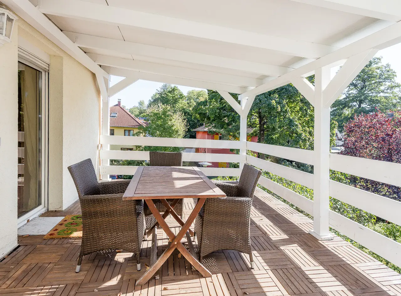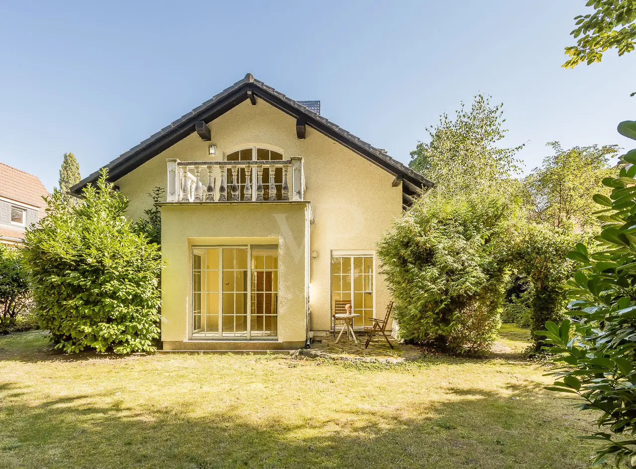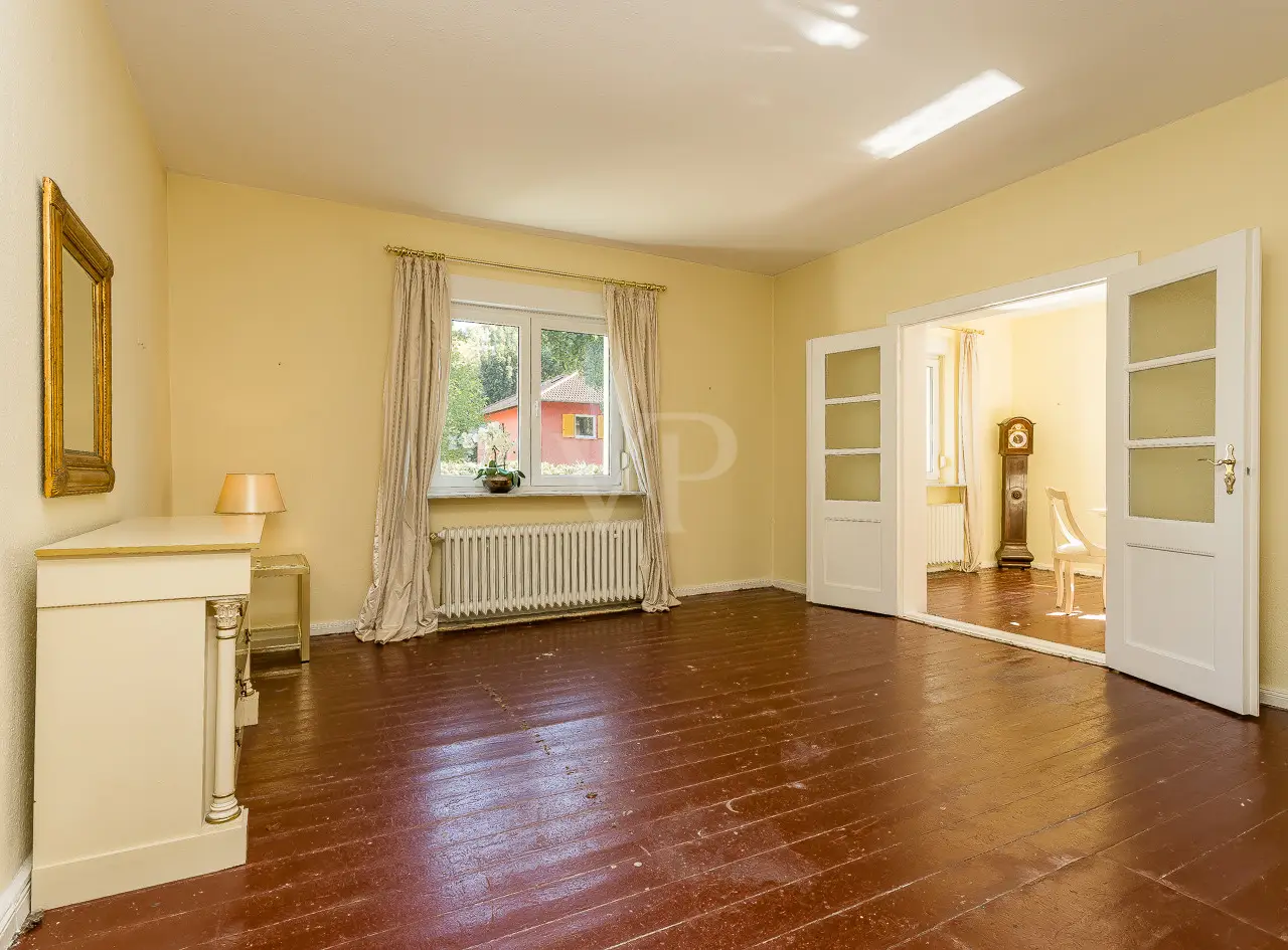 The property offered here is located in a prime residential area of ​​Niederschönhausen, one of the most sought-after residential areas in Berlin. In the former government district of the GDR, history and modernity lie close together. Historic villas in a quiet location characterize the district around Majakowskiring. The Niederschönhausen Palace Park and the tranquility flowing Panke are in the immediate vicinity of the property. The town villa with a full basement was built in 1937 as a factory owner's villa on a plot of land measuring approx. 787 m². It accommodates approx. 136 m² of living space, distributed over 5 spacious rooms and was completely renovated by the current owner in 2000/2001 with great attention to detail. The extension directly adjacent to the villa was newly built in 2003. It has a separate entrance, no basement and has 2 large rooms on approx. 92 m² of living space. A massive staircase and a vestibule provide access to the villa. The guest toilet can also be reached from the vestibule. The spacious hallway provides access to two rooms and the kitchen. A restored solid wood staircase leads to the upper floor and behind two wooden doors there is access to the basement and a small storage room. From the large room you can access the third room on the floor via a decorative double door. On the upper floor, a hallway provides access to the bathroom, the two other rooms and a wooden staircase to the attic. A completely covered balcony completes the floor. The attic is prepared for expansion and, with a floor area of ​​around 50 m², offers ideal conditions for expansion. In addition to the hallway and the boiler room with the gas central heating, the heated basement contains two further practical basement rooms and a smaller ante-cellar. From the basement you also have access to the directly adjacent extension. The extension was designed as a separate apartment for the owner, but has never been used continuously, so we find it in as good as new condition. The winter garden on the side provides access to the guest toilet and the kitchen, which also houses the stairs to the upper floor. A living room equipped with high-quality tiles with access to the garden and terrace completes the ground floor. The upper floor, which can be reached via a solid wooden staircase, is designed as an open studio. In addition to the master bathroom, it has a balcony with a wonderful view of the garden. The ground floor is equipped with underfloor heating and has electric blinds. The fully fenced property has a decorative metal gate on the street side that allows access to the property. The property, which is partially overgrown with old trees, has its own well for watering the garden. A wooden garden house offers enough space for garden tools and garden furniture. Let yourself be enchanted by this extraordinary property and arrange a viewing appointment with us today!