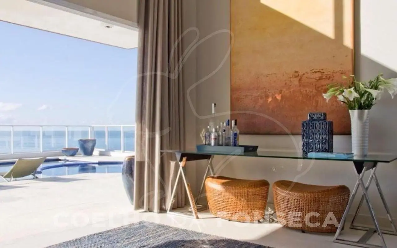 Excellent penthouse with sea view, located in module 8 of Riviera de São Lourenço, decorated, with central air conditioning and an exclusive pool on the terrace. Penthouse in the Riviera de São Lourenço neighborhood with 709m² of private/useful area, 6 bedroom(s), 6 suite(s), 5 parking space(s), 9 bathroom(s), swimming pool, barbecue, accepts exchange, terrace, furnished, duplex, air conditioning, maid's room.