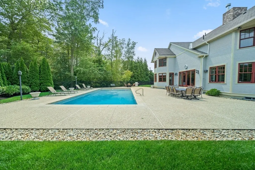 Custom shingle style home situated on larger lot in historic Beverly Cove. Ensconced above at the entrance to Manor Homes, this 5 bedroom, 6.5 bath beauty has an open floor plan with formal living and dining areas, an in-law suite and two home offices on the first floor. Two staircases lead to three ample bedrooms and a spacious primary suite on the second floor. Bright eat-in kitchen with quartz countertops and large island, high-end appliances, full pantry area, designer cabinets, and breakfast nook. Adjoining family room with direct sliding door access to exterior patio and heated inground pool. Professionally landscaped with irrigation system. Fenced private yard. Large outdoor eating areas and flat side yard are great for cookouts and recreation. 3 car garage. ~2,200 SF of finished space in the lower level currently used as gaming area, home gym, and guest bedroom with full bath. Plenty of basement storage. Convenient access to beach, train, schools, parks, and major route