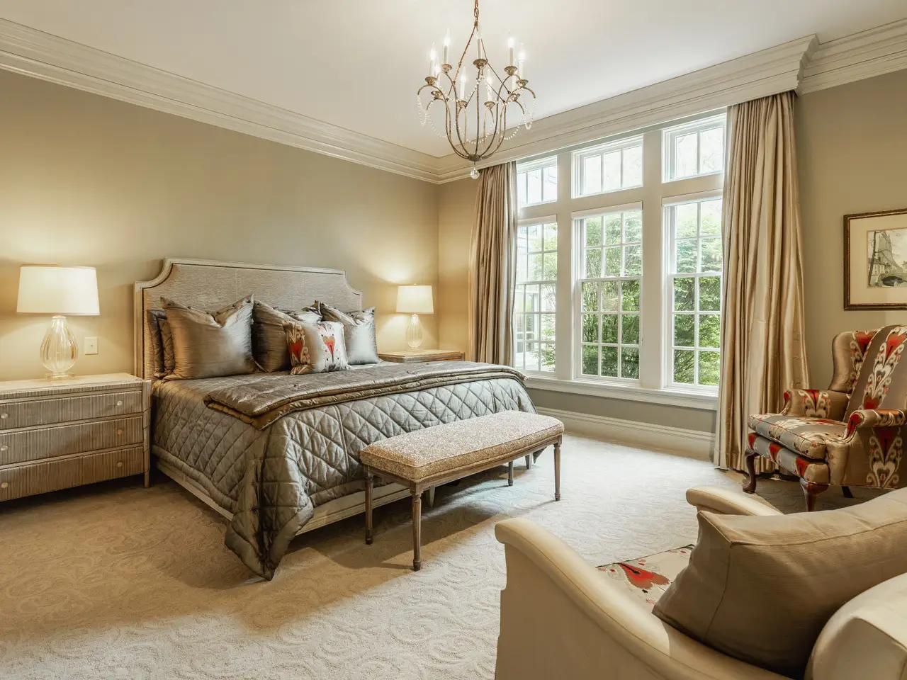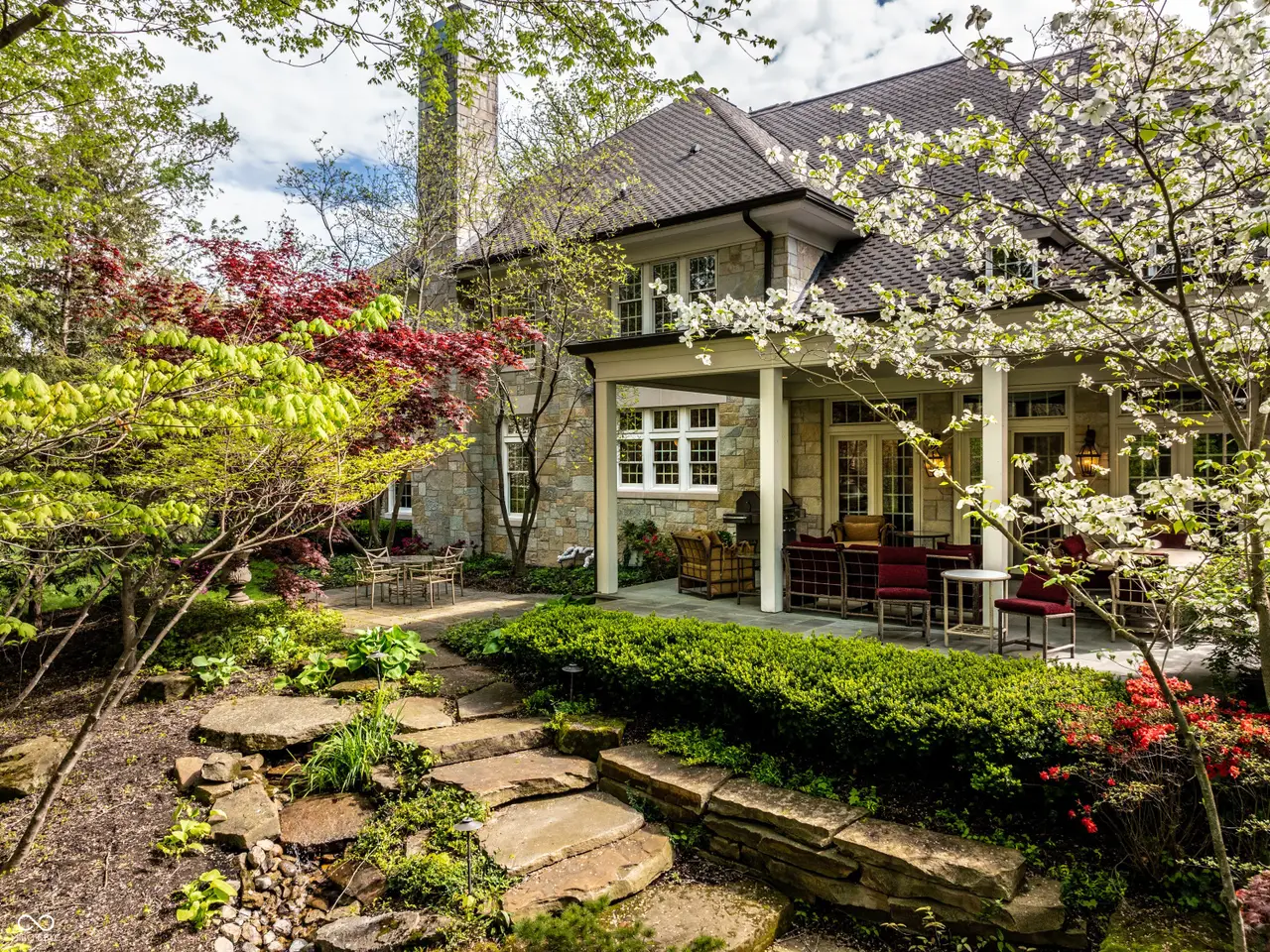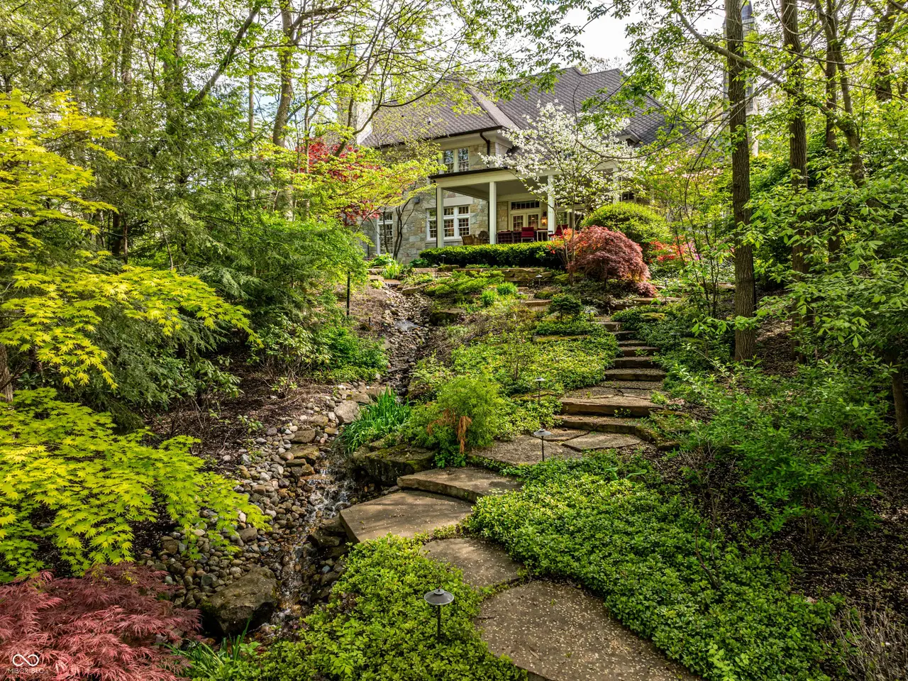 Exquisite custom-built estate on 1.84 acres of lushly landscaped grounds in the prestigious gated community of Springwood, overlooking the serene Nature Conservancy. This breathtaking home features both a 3-car attached garage and a 3-car detached garage. Inside, the grand great room welcomes you with a limestone fireplace and soaring windows that frame the park-like backyard. The formal dining room impresses with elaborate custom moldings and a hand-painted mural, while the main-level den offers a carved marble fireplace, custom built-ins, and TV niche. The main-floor primary suite is a private retreat, complete with a spa-inspired bath featuring a soaking tub, dual vanities, expansive walk-in shower, and an exceptional two-sided walk-in closet. The chef's kitchen, completely remodeled just two years ago, is a culinary masterpiece, boasting a butler's pantry, quartzite countertops, coffee bar, Wolf appliances, 6-burner gas range, built-in fridge/freezer, dual dishwashers, and additional refrigerator drawers. It flows seamlessly into the family room, featuring a limestone fireplace, custom seating, exposed truss ceiling, and stunning views of the backyard. The home also offers two washers and dryers, adding convenience to everyday living. Upstairs, discover four ensuite bedrooms, an office, and a playroom. The finished lower level offers a rec/theatre room, wine cellar, exercise room, and abundant storage. Additional highlights include an elevator and unmatched craftsmanship throughout. This one-of-a-kind estate is the epitome of sophisticated Carmel living, combining luxury, functionality, and timeless elegance.