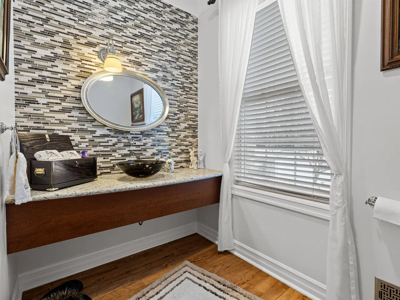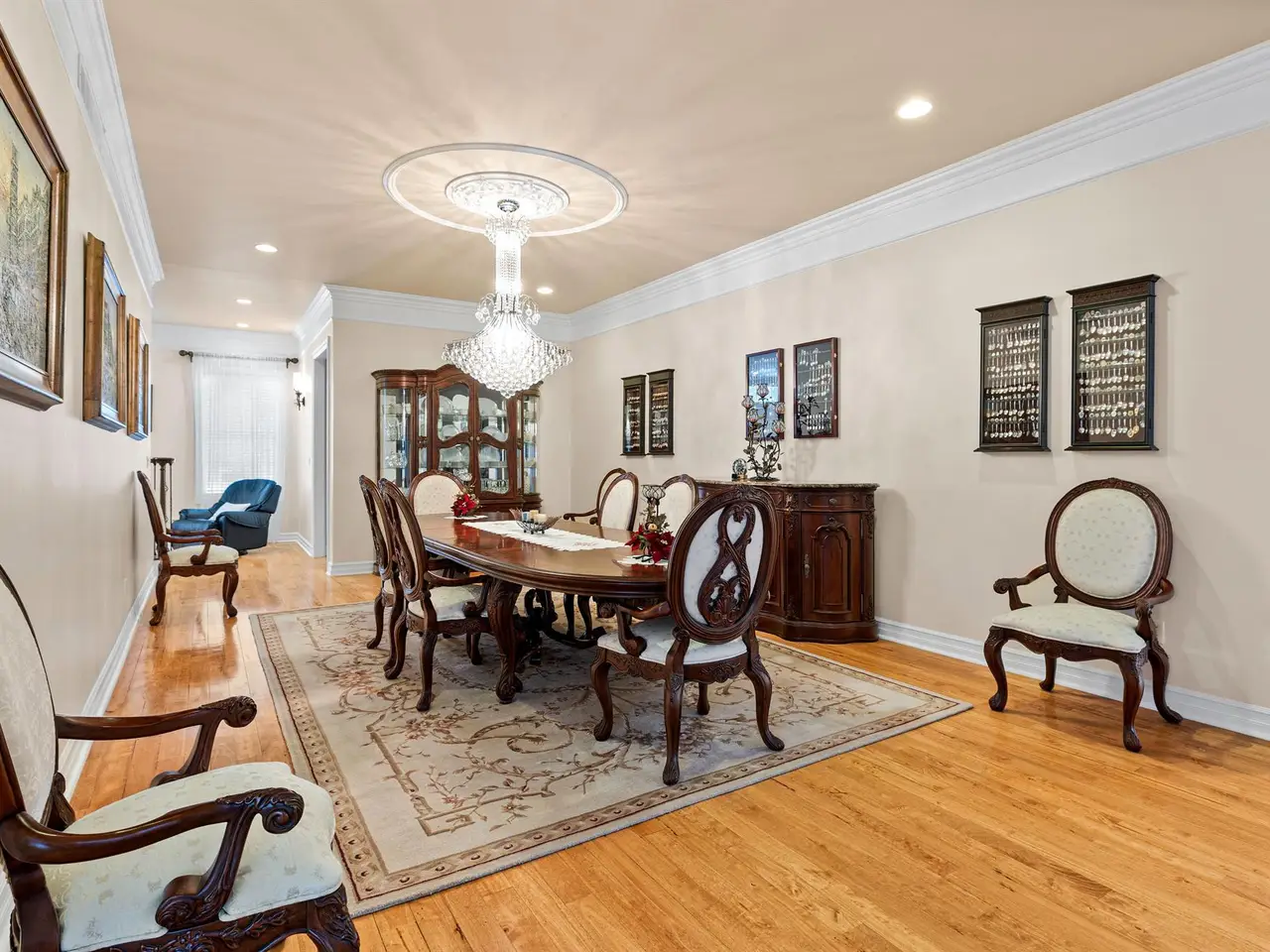 - Extensive crown molding throughout for sophistication