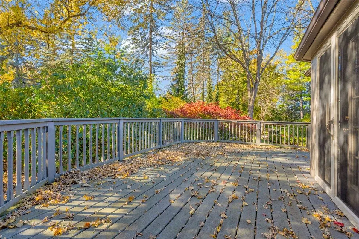This detached condo is tucked away on a quiet cul-de-sac surrounded by mature trees. A grand 2 story marble foyer opens to a spacious living room with a vaulted ceiling. The paneled library/den is the perfect spot for cozy evenings in front of the fireplace. The oversized, all white kitchen is bright and inviting, featuring a breakfast nook that opens to a wrap around deck - ideal for summer entertaining. The dining room includes custom built-ins for storage and display. The first floor primary suite offers generous closet space and a private bath with dual vanities. upstairs two additional bedroom suites provide comfort and privacy. The finished lower level adds flexible living space and extra storage. Additional features include a generator, brick paver walkway and driveway. Just add your fnished touches and make this your home! BATVI