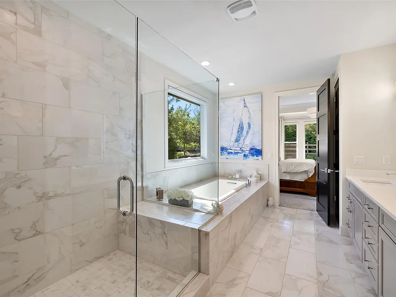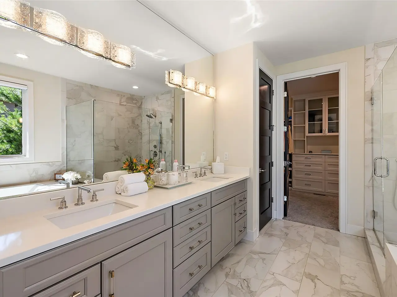 Step into a home where luxury, comfort, and thoughtful design come together in perfect harmony. This stunning residence rivals any HGTV Dream Home, showcasing soaring ceilings and upscale finishes that elevate every room. From the moment you step inside, you'll be captivated by the meticulous attention to detail and the inviting spaces that make you feel instantly at home. The remarkable kitchen features a massive center island, premium stone surfaces, and custom woodwork. Open to the kitchen is the elegant family room, boasting a stunning fireplace and tray ceilings, creating a warm, inviting atmosphere. For those working remotely, a private library provides the perfect quiet space with a sophisticated touch. You’ll want to spend your time in the fabulous three-season room, offering serene views of impeccably landscaped private nature. It steps down onto a beautiful bluestone patio, complete with two gas grilling options, making it ideal for hosting gatherings. The primary suite feels like a hotel getaway, featuring two generous walk-in closets and a spa-like ensuite bathroom with dual vanities, a large walk-in shower, and a separate soaking tub. A lovely second bedroom offers ensuite accommodations with equally impressive amenities. Enjoy main floor living at its finest in this maintenance-free home, designed for comfort without sacrificing luxury. The lower level is ready to suit your lifestyle, featuring 10-foot ceilings, a daylight window, 3-piece plumbing, and distribution of heating for multiple rooms. Additional highlights include a Sonos home sound system, a security system, an epoxy coated garage floor, and a Generac whole-house generator. Located in a sought after community with access to scenic walking paths, this exceptional home offers not just a place to live, but a lifestyle to love. This is a rare opportunity to own a home of this caliber, beautifully designed, meticulously maintained, and truly move-in ready. Schedule your private showing today!