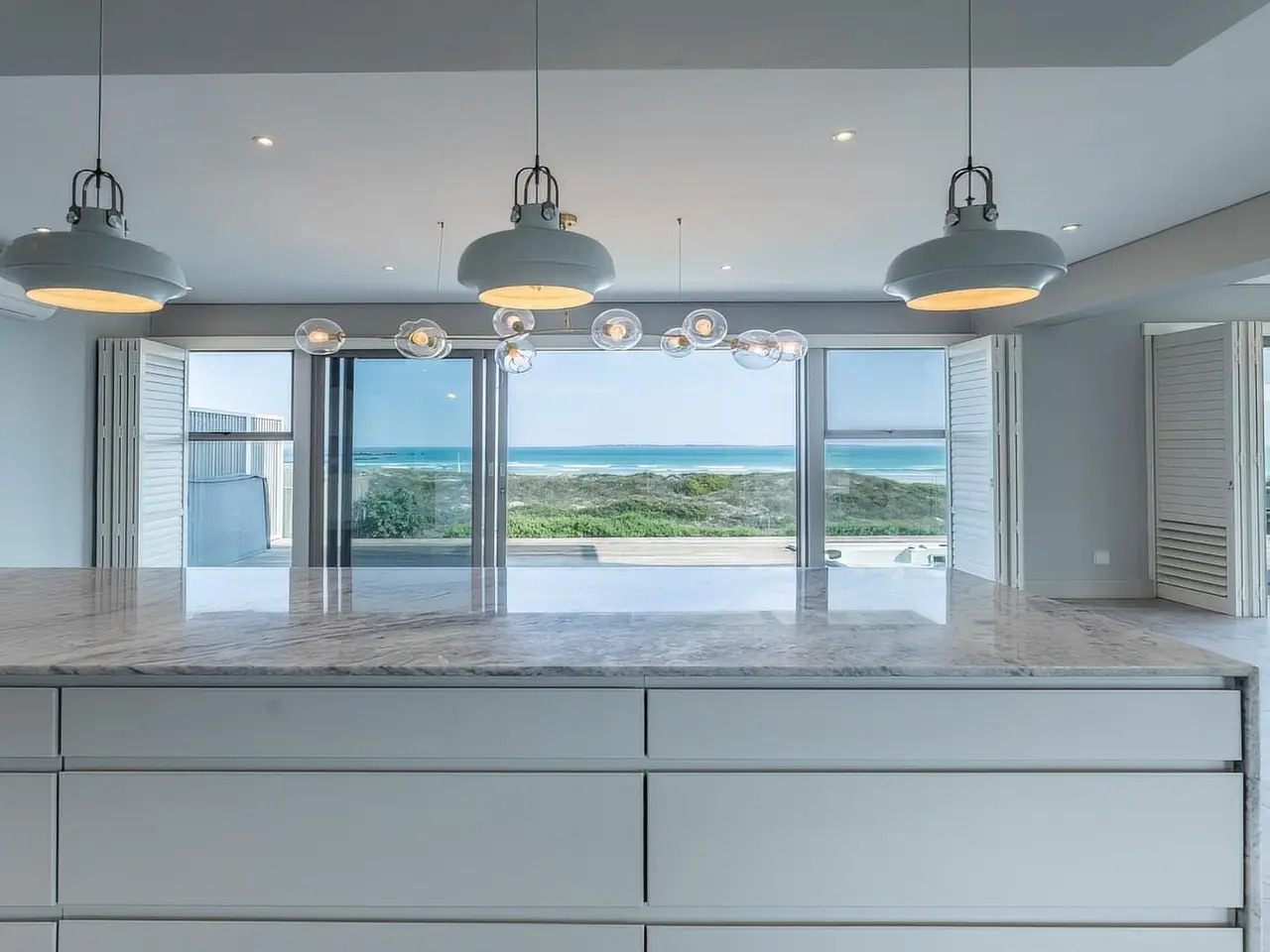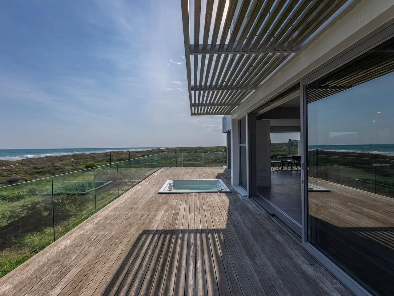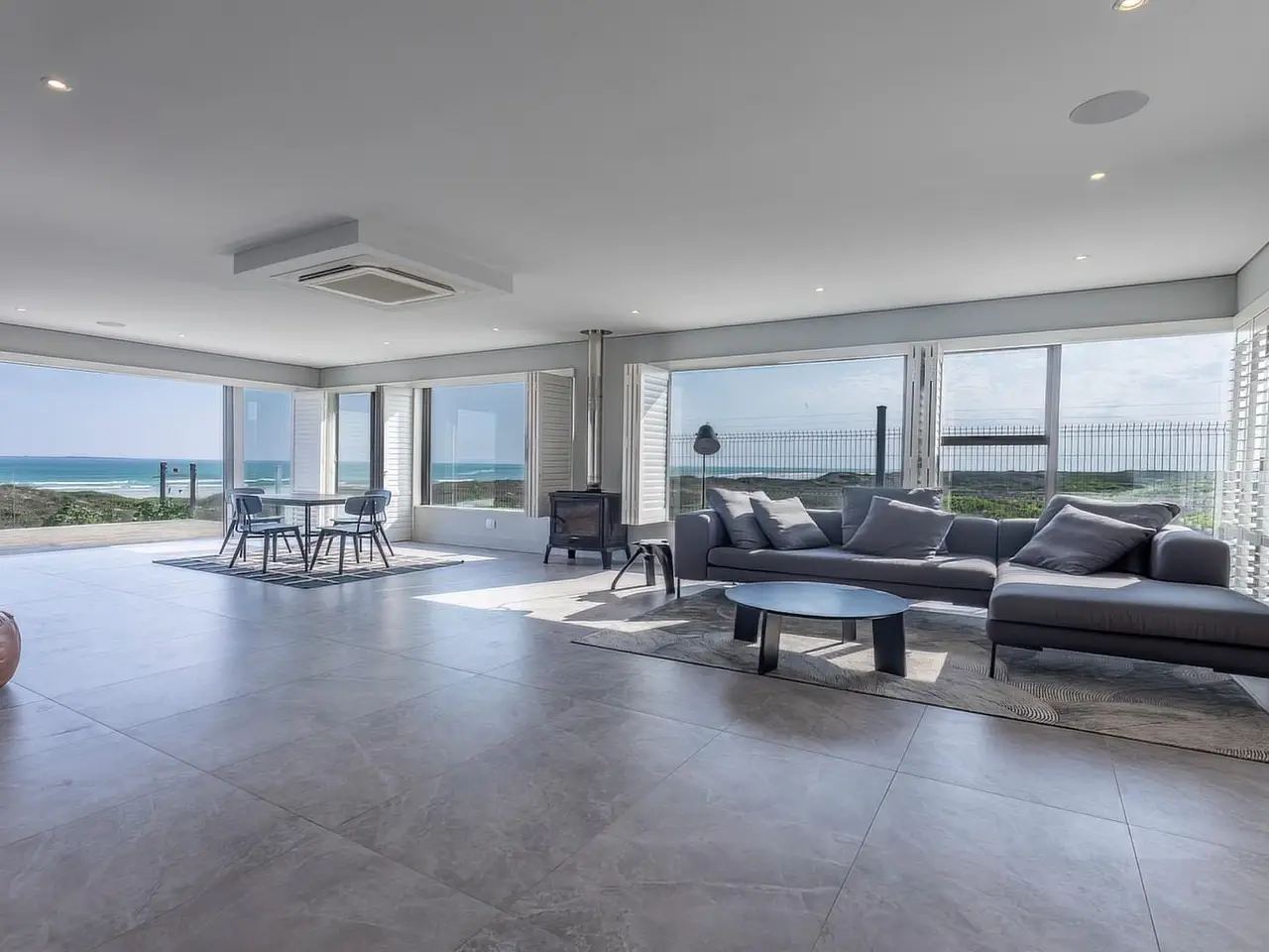 Positioned within the exclusive Water's Edge Beach Estate, this extraordinary 860m² architectural masterpiece offers a lifestyle of unparalleled luxury and space. This is more than a residence; it's a front-row seat to the breathtaking beauty of the Atlantic Ocean, iconic Table Mountain, and historic Robben Island. Spanning three magnificent levels and serviced by a private luxury lift, the home features five palatial en-suite bedrooms, each a sanctuary of comfort and privacy. The home's core is a spectacular open-plan entertainment area, where the living, dining, and a gourmet kitchen merge seamlessly with the natural beauty of the outdoors. The kitchen is a chef's dream, appointed with state-of-the-art appliances and a discreet, separate scullery. For seamless indoor-outdoor living, a dedicated braai room opens to a seaside vista over the protected fynbos greenbelt, perfect for elegant alfresco dining. Lower Level: • Home Gym: A dedicated space for your private fitness routine. • Versatile Rooms: Two expansive, adaptable rooms perfect for a state-of-the-art home cinema, a sophisticated cellar and bar, a games room, or a private home office. • Guest Bathroom: Servicing the lower level with style. • Two Quiet Bedroom Suites: Providing exceptional privacy for guests or family. • Operations Room: A functional space for the home's technical needs. Ground Floor: • Expansive Living Areas: A vast, fluid space designed for grand entertaining and intimate gatherings. • Seamless Transition: Wall-to-wall glass sliding doors open to a sun-drenched seaside deck with a jacuzzi. • Gourmet Kitchen: Featuring a private scullery and pantry, designed for both functionality and elegance. • Indoor Braai Area: An integrated lounge and dining space that blends indoor comfort with outdoor views. • Guest Bedroom Suite: A private, ground-floor suite. • Guest Bathroom: Conveniently located for guests. • Direct Garage Access: A double garage provides secure and easy access. First Floor: • Master Suite: An opulent master retreat with a dressing room, private terrace and sweeping, panoramic ocean and mountain views. • Shared Terrace: A private terrace is shared between the two bedroom suites on this floor, offering a secluded space to enjoy the stillness of nature and beach views. • Second Bedroom Suite: A luxurious suite with access to the terrace overlooking the greenbelt and ocean. Embrace a lifestyle where the untamed beauty of the ocean meets the refined elegance of a world-class residence.