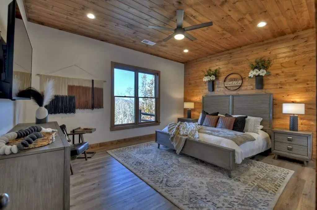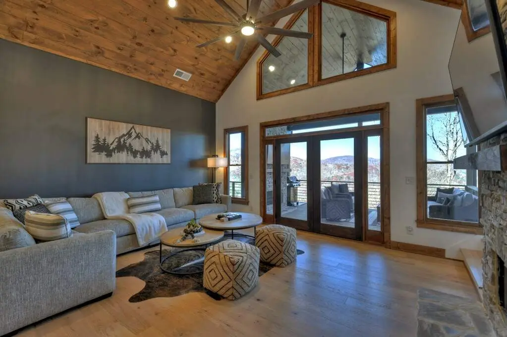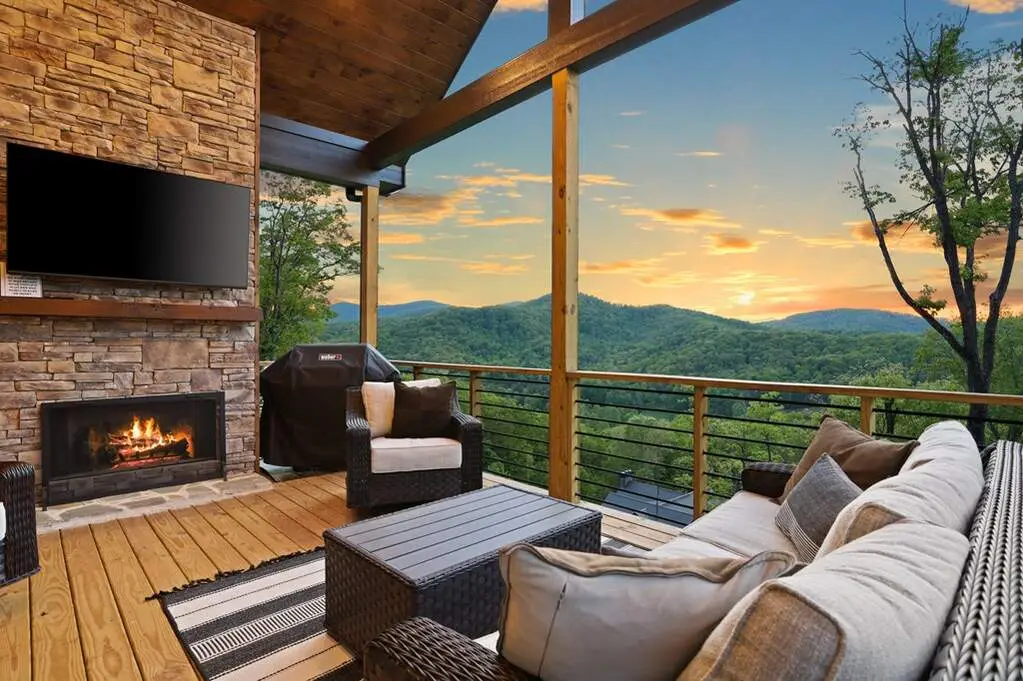 As seen on HGTV - Luxury mountain escape with STUNNING, unobstructed SUNSET VIEWS overlooking the Cohutta Wilderness! Upscale gated community with all paved roads, underground power and high speed internet. Professionally designed with high-end finishes and upgrades throughout, with an open concept floor plan that features vaulted ceilings and floor-to-ceiling windows to take in the incredible long range views. Meticulously maintained 4 bedroom, 3 bath plus additional sleeping loft with wow factor views from every room! Well-appointed chefs kitchen with separate dining area for large family gatherings. Plenty of outdoor entertaining areas including oversized covered porch off great room featuring a must-have outdoor fireplace and dining area overlooking one of the best views in Blue Ridge!. Terrace level features 2 additional guest suites, wet bar, game room and additional covered porch area with hot tub. Whole house water filtration system. Top of the mountain with plenty of parking, perfect for luxury rental program, full time living or much needed mountain getaway. Scenic drive conveniently located to historic downtown Blue Ridge, as well as, hiking, trophy trout fishing, Lake Blue Ridge, horse back riding, shopping, dining and more!
