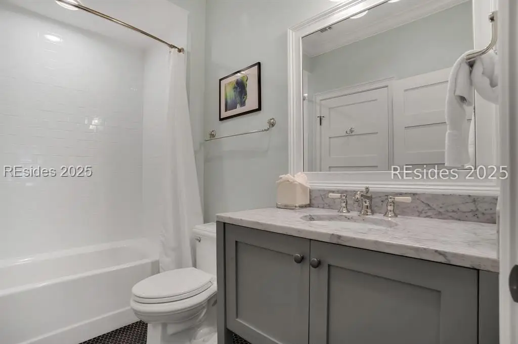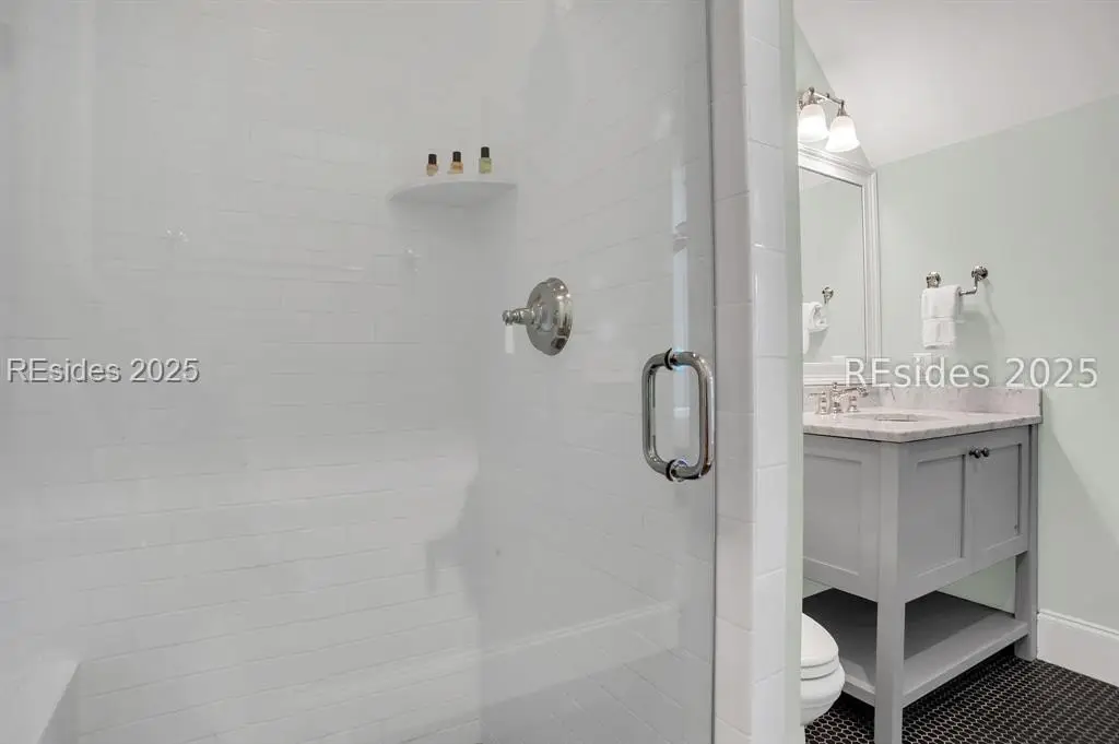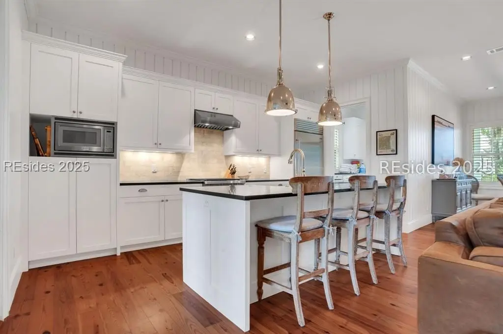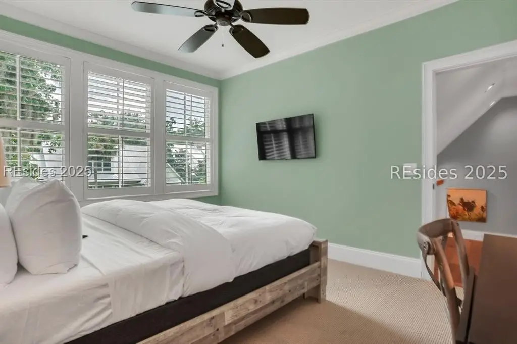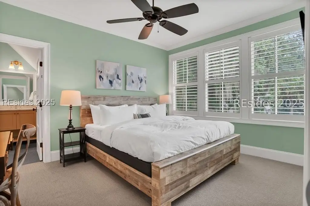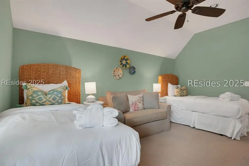 Situated within the heart of Wilson Lawn & Racquet, 5 Rumford Ln presents a Lowcountry-inspired short-term rental cottage comprising four bedrooms, a bonus room, and four bathrooms. The primary living areas exude a cottage-like ambiance, featuring a formal dining area, a brick hearth, and an open kitchen flanked by dual sliding doors. Rich accents of shiplap, Savannah brick, and knotty pine impart a sophisticated visual appeal to these main spaces. The primary suite boasts ample walk-in closets, a private bathroom equipped with a soaking tub and walk-in shower, and a spacious living area. Two full suites are situated on the second floor, along with a third guest or bonus room, and a screened patio provides year-round enjoyment.