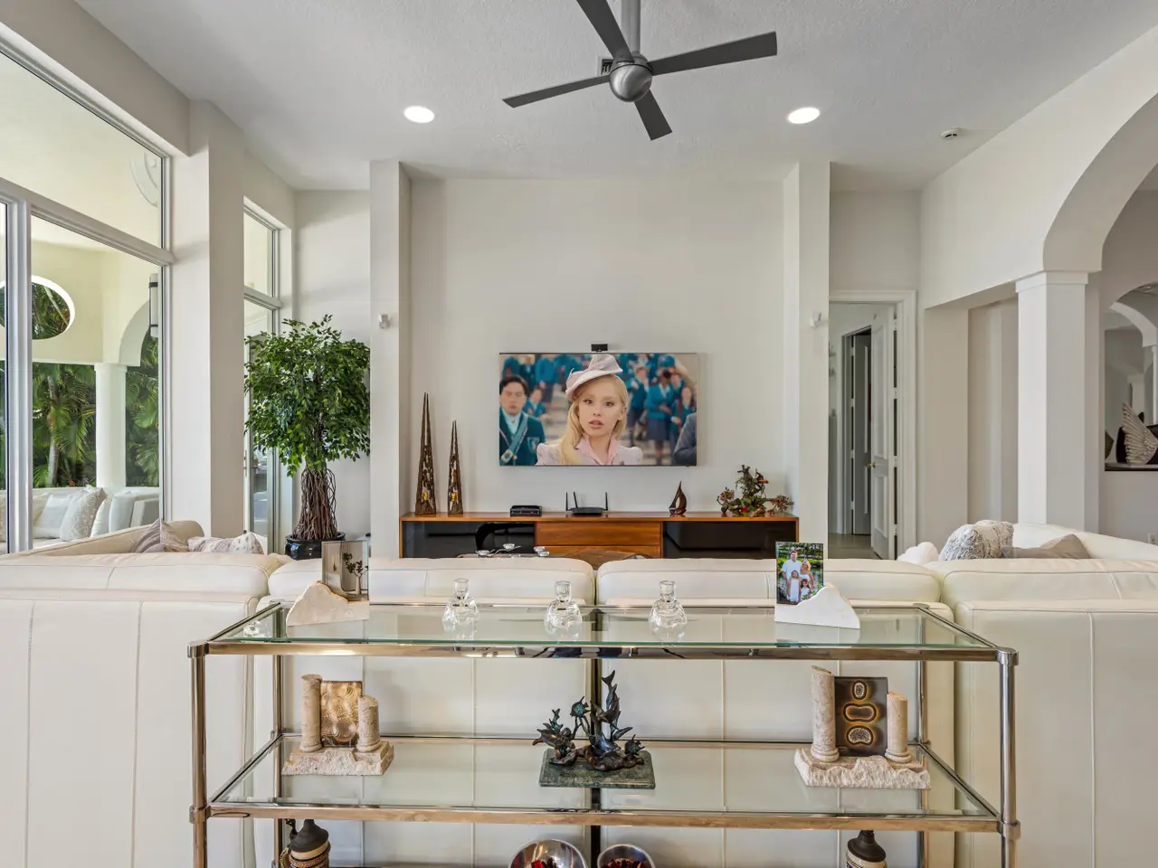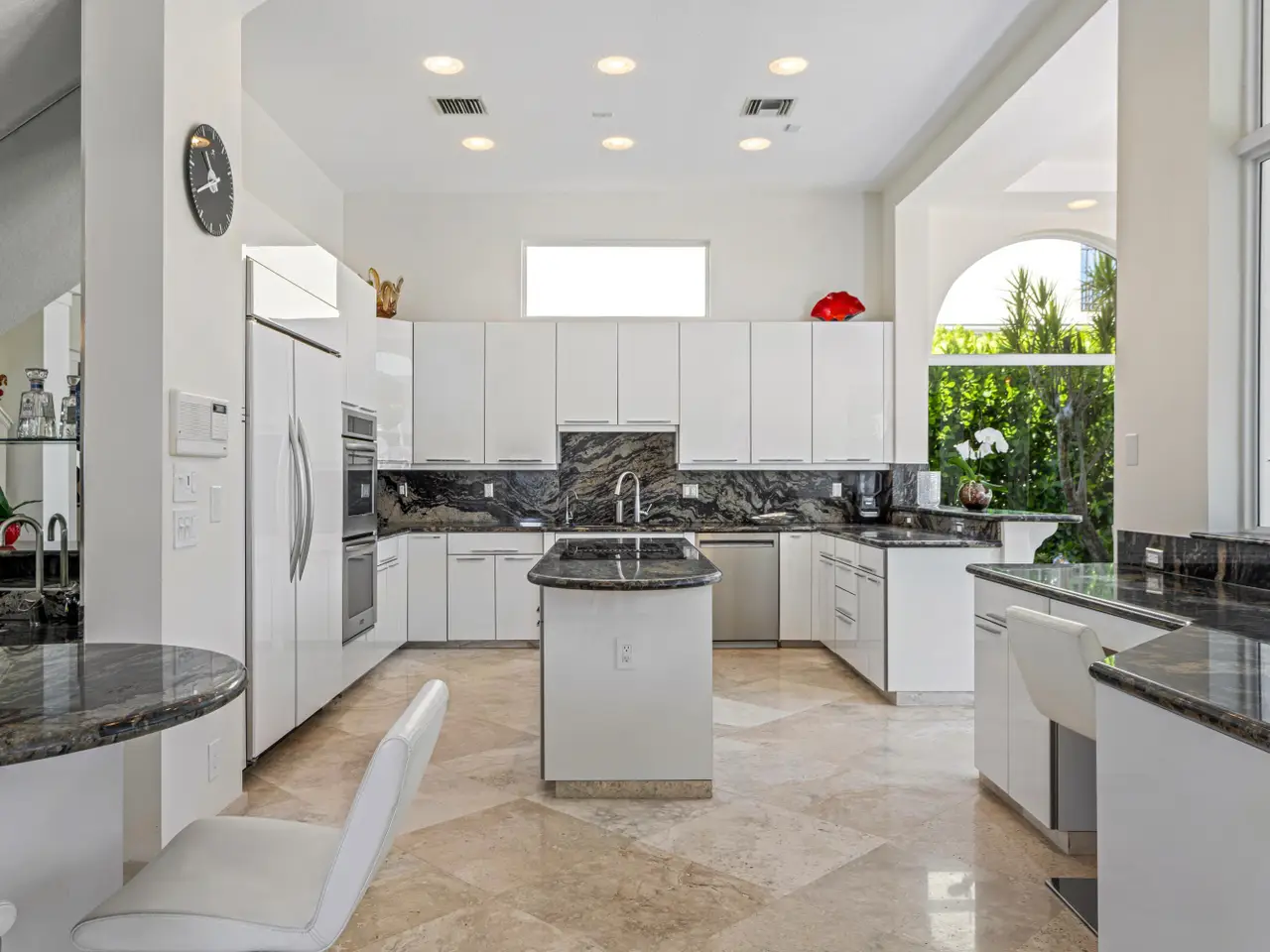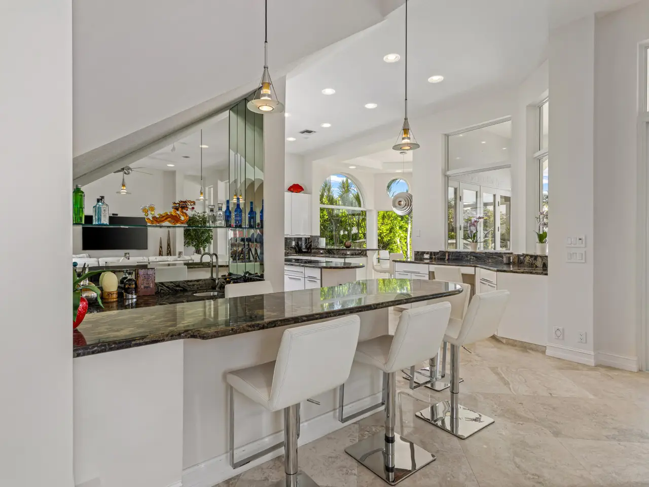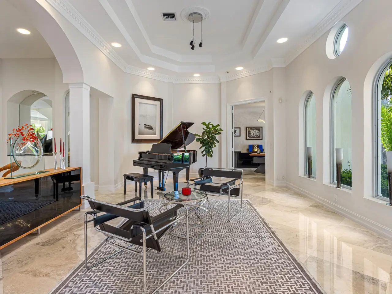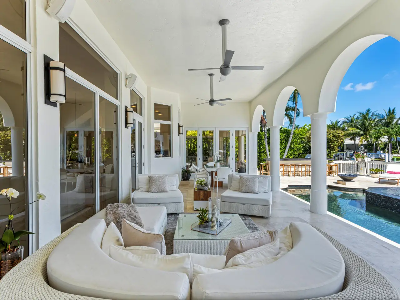 Luxe Boca Raton deepwater estate in the desirable Lake Rogers community fronts 80 feet on a deep-water canal with a dock offering easy ocean access, desirable for boaters. Interiors are peerlessly defined by grand architectural adornments, and the magnificent outdoor entertaining area centers on a sun-splashed pool with a spill-over spa bounded by an expansive patio with a wet bar and barbeque area.