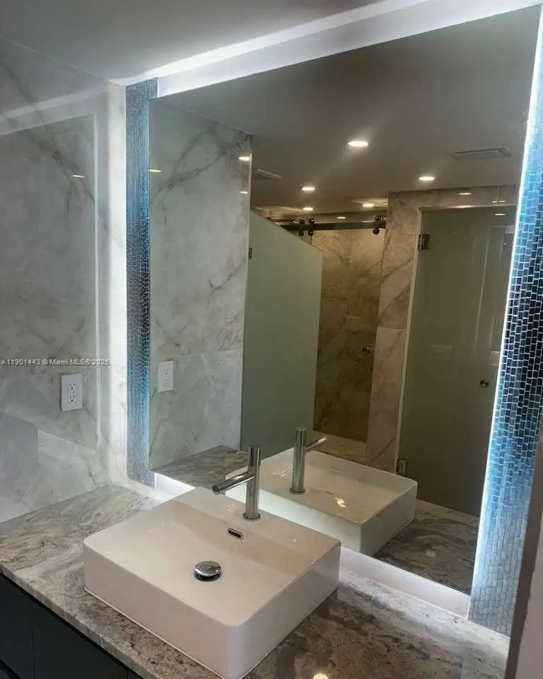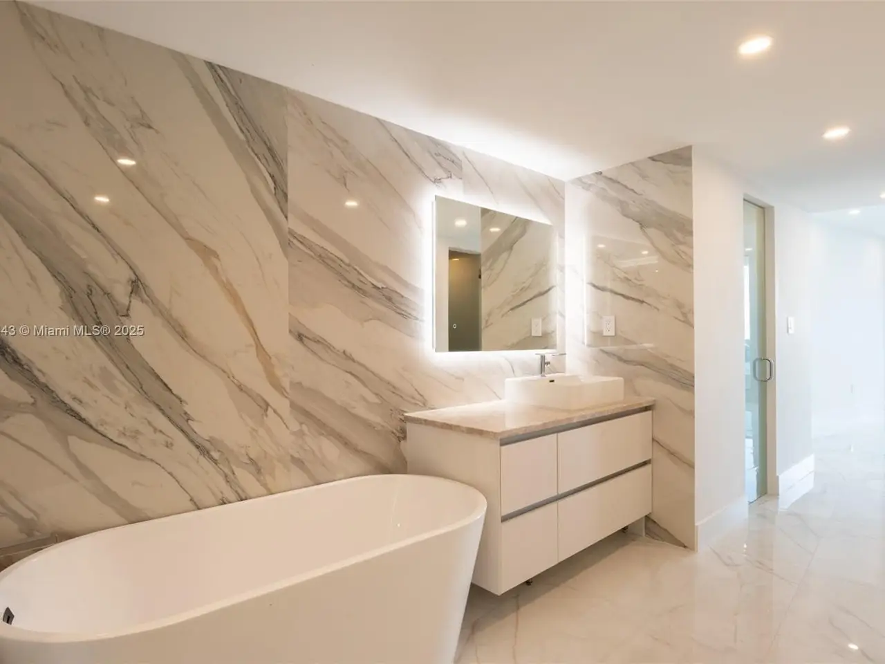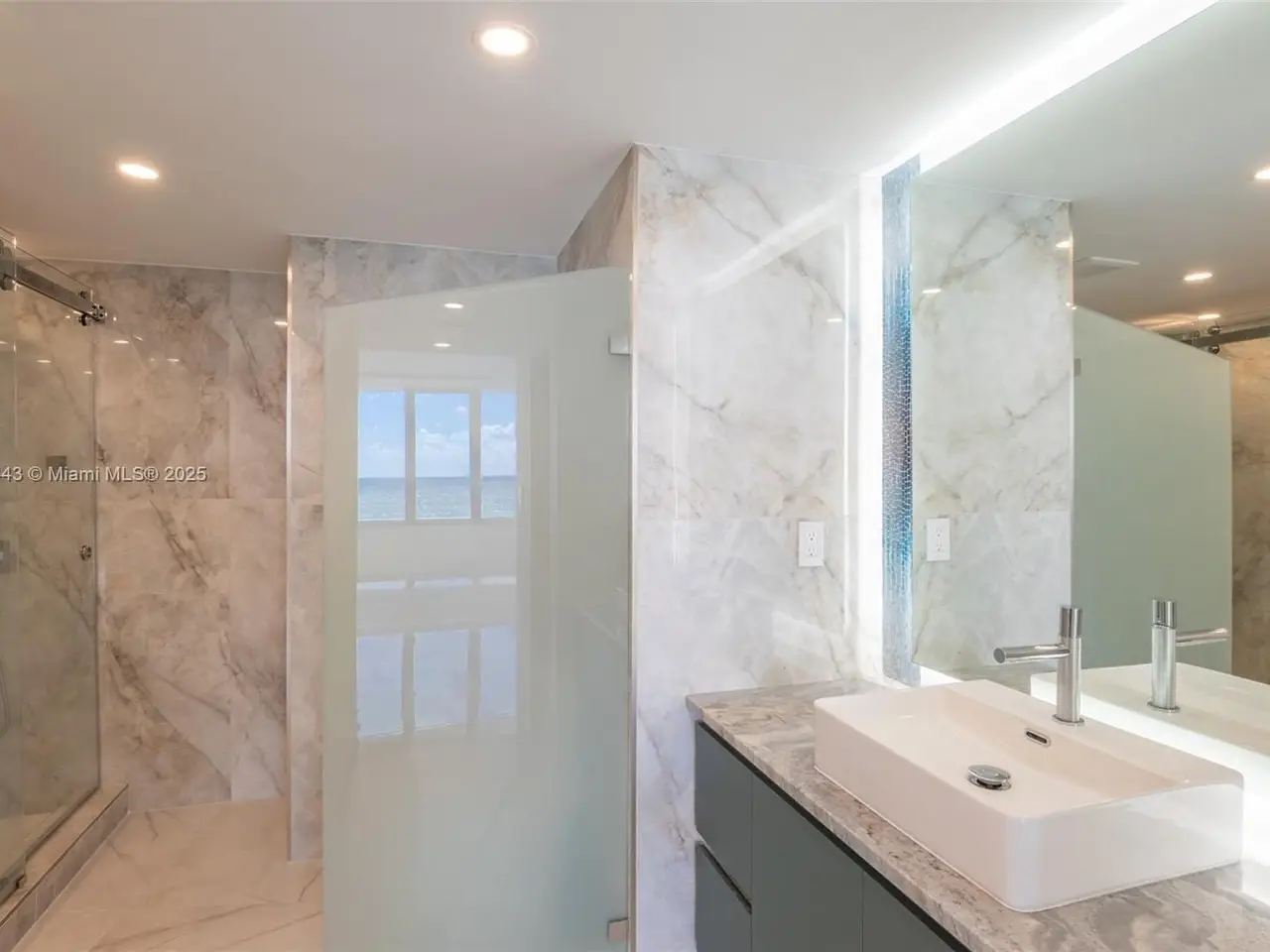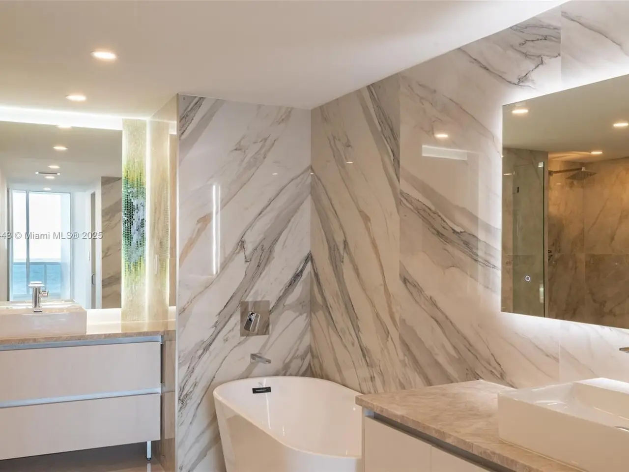 Exquisite oceanfront residence with 2 bedrooms and 2.5 baths, fully renovated and uniquely designed with impeccable detail. Spanning 1,900 sq. ft., this luxurious home is located in Sabal Point, a boutique building of only 70 units featuring a saltwater pool and private beach access. The custom kitchen showcases Thermador appliances, quartzite lit up counter tops , wine cooler, and artistic glass accents. The living and dining areas boast elegant ceiling LED lighting, designer finishes, and a stunning Custom Glass fireplace wall. Both bedrooms feature custom closets, glass doors, and spa-inspired baths with European fixtures. Recent building upgrades include concrete restoration, new roof, glass railings, impact windows, and a chic modern lobby.